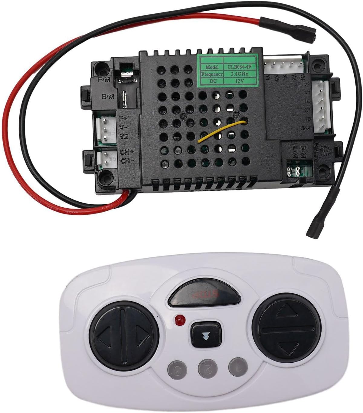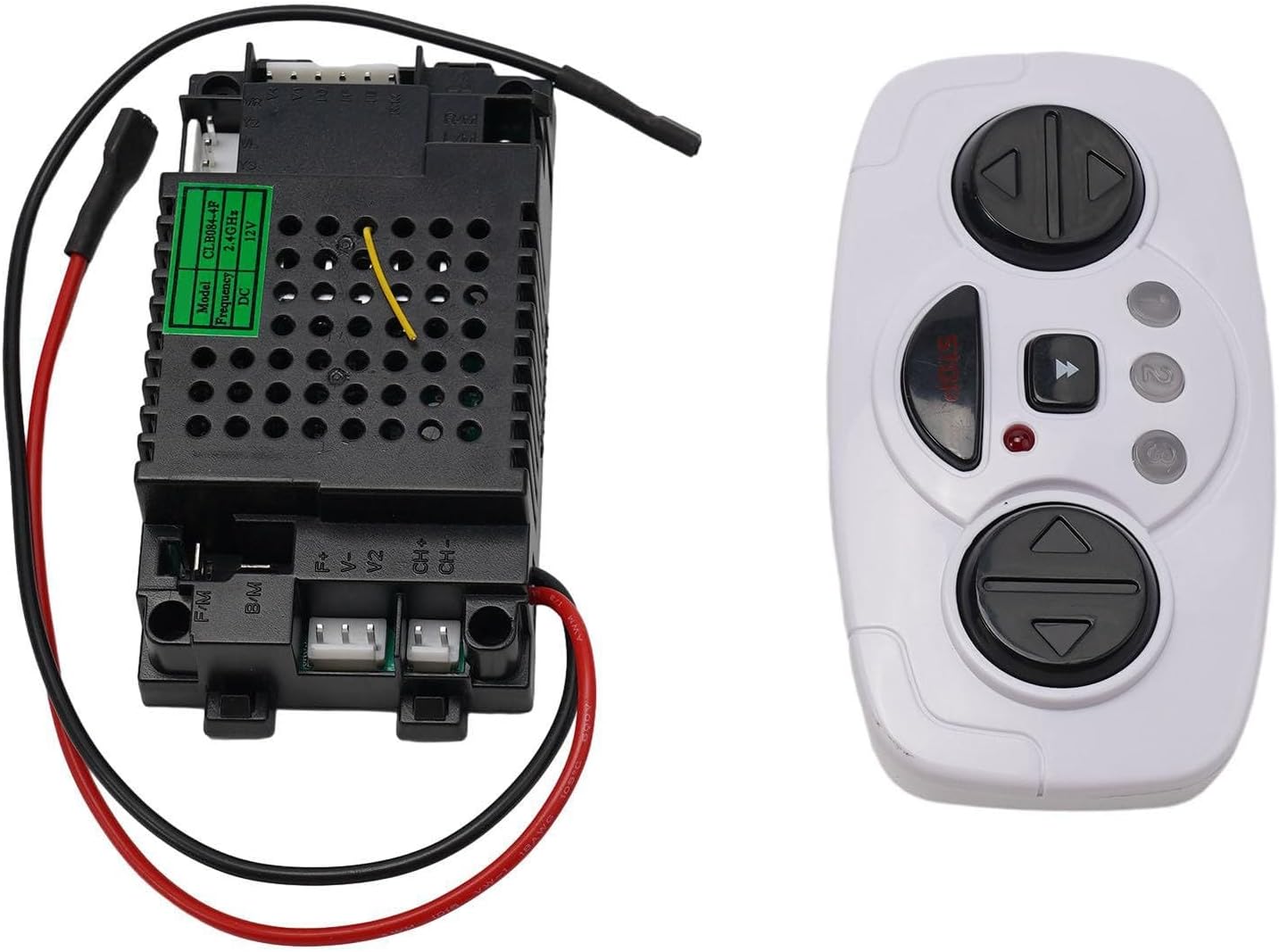 Ricevitore CLB084-4D 12V CLB084-1C 6V per auto elettrica per bambini 【Funzionamento remoto】: premere il pulsante di accensione dell'auto e quindi premere il pulsante "controllo della velocità" e il pulsante "stop" insieme per 5 secondi per abbinare correttamente il segnale. La spia rimane accesa senza lampeggiare. 【Materiale】: realizzato in materiale di lunga durata. 【Opzioni di modello】: scegliere tra CLB084-4D 12V, CLB084-4D 12V set completo, CLB084-1C 6V, CLB084-1C 6V set completo. La confezione include: l'opzione 1 include 1 ricevitore. L'opzione 2 include 1 ricevitore e 1 telecomando.