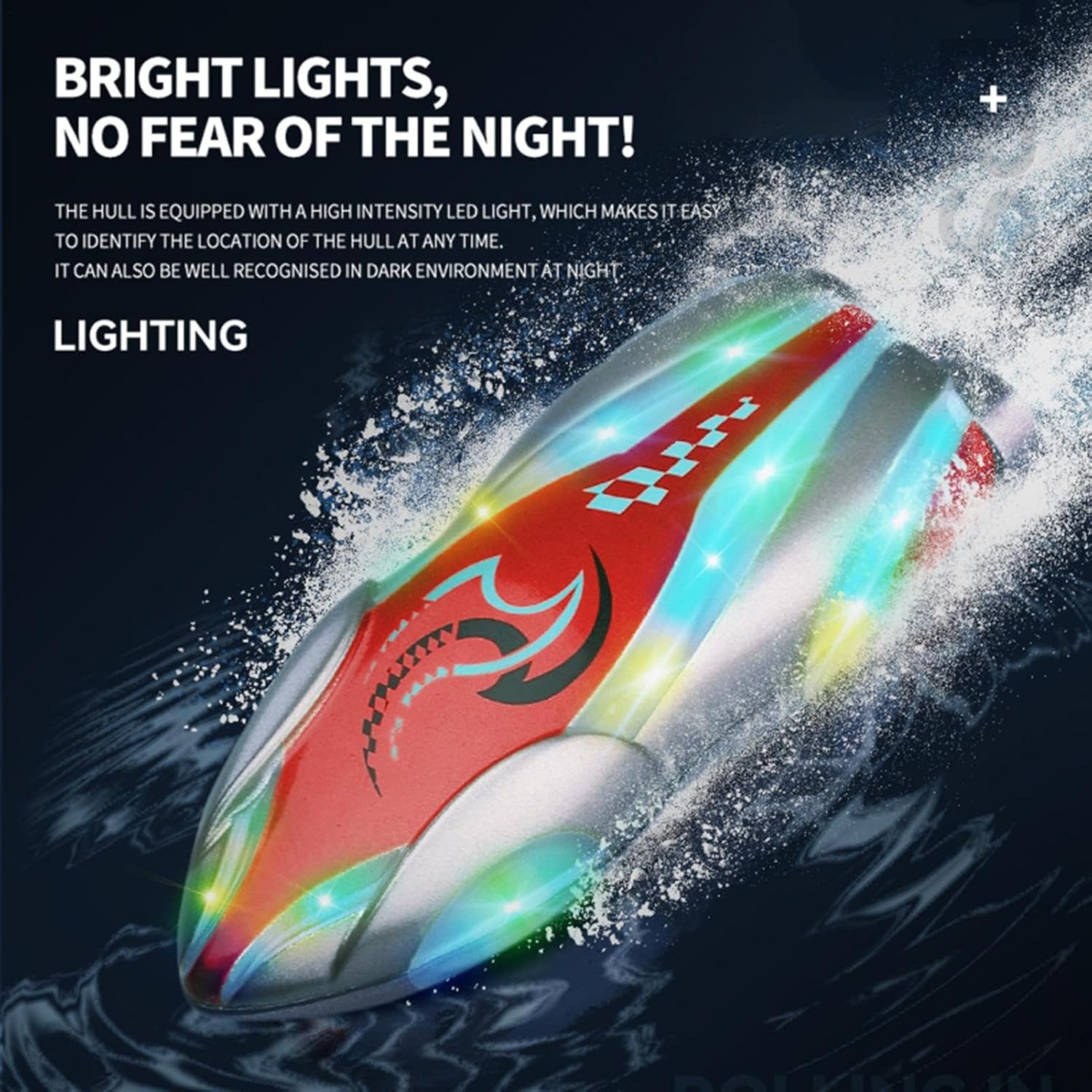 Illuminazione a LED: utilizza vivaci luci a LED su entrambi i lati per la navigazione notturna e visiva, rendendo facile seguire la barca anche in condizioni di scarsa illuminazione e aggiungendo eccitazione al lago serale o alle gare in piscina sicure in fresco e Motore senza spazzole: dotato di un potente motore brushless 2212 che spinge velocità oltre 30 mph (≈50 km/h), offrendo prestazioni emozionanti ad alta velocità e accelerazione fluida su laghi, fiumi o piscine garantendo gare piacevoli e senza preoccupazioni Auto Righting: dispone di 180° e auto-raddrizzamento capsize recupero, mantenendo la barca in posizione verticale dopo un , anche in caso di onde forti - in modo da poter il divertimento, non recuperare uno scafo capovolto rendendo facile monitorare la barca Impermeabilizzazione raffreddata ad acqua: progettato con un corpo impermeabile a doppio portello e un sistema raffreddato ad acqua per proteggere i componenti elettronici, prevenire il surriscaldamento e consentire la sicurezza in ambienti freschi e (con un corretto risciacquo) Batteria scarica e gamma estesa: viene fornito con due batterie ricaricabili che offrono fino a 30 minuti di autonomia; il controller emette un avviso di batteria scarica e dispone di una connessione a lungo raggio (~ 120-390 piedi), garantendo una corsa piacevole e senza preoccupazioni