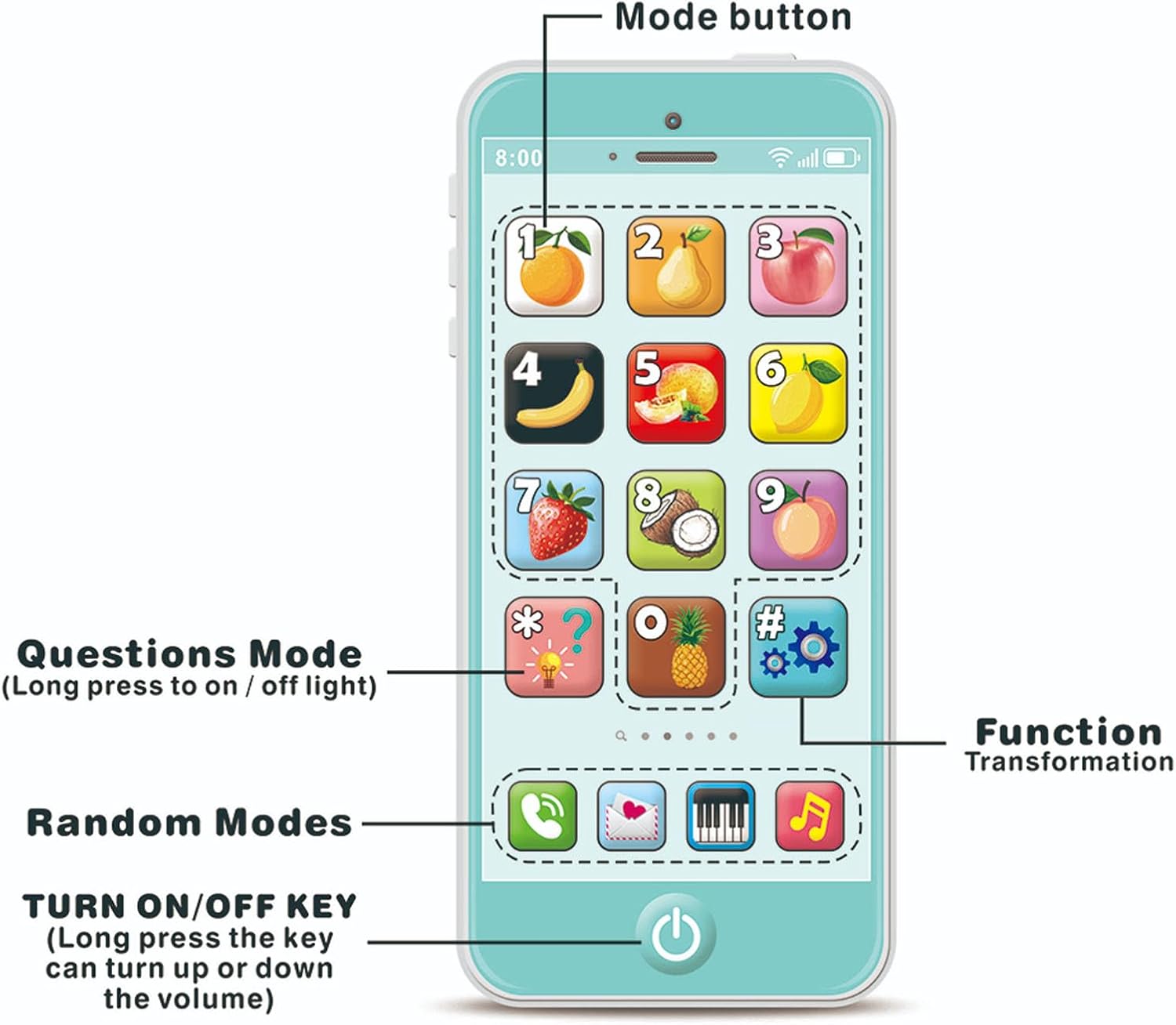 ESERCIZIO DI ESPRESSIONE LINGUISTICA: il giocattolo telefonico per bambini simula veri telefoni cellulari, consentendo ai bambini di imitare le telefonate e coltivare la capacità di espressione linguistica TOUCH SCREEN: il giocattolo modello di telefono per bambini adotta un design touch screen multifunzionale per migliorare la capacità di coordinazione occhio-mano dei bambini CON SUONO: Il modello di telefono per bambini è dotato di musica ed effetti sonori per ispirare la percezione uditiva dei bambini, adatto per la prima educazione COLORATO E ATTRAENTE: il telefono giocattolo touch screen per bambini ha colori vivaci per attirare l'attenzione dei bambini e migliorare efficacemente la loro concentrazione SICURO E SALUTE: il giocattolo modello educativo per bambini è realizzato in materiale plastico sicuro e non ha odori irritanti, fornendo una per la crescita sana dei bambini
