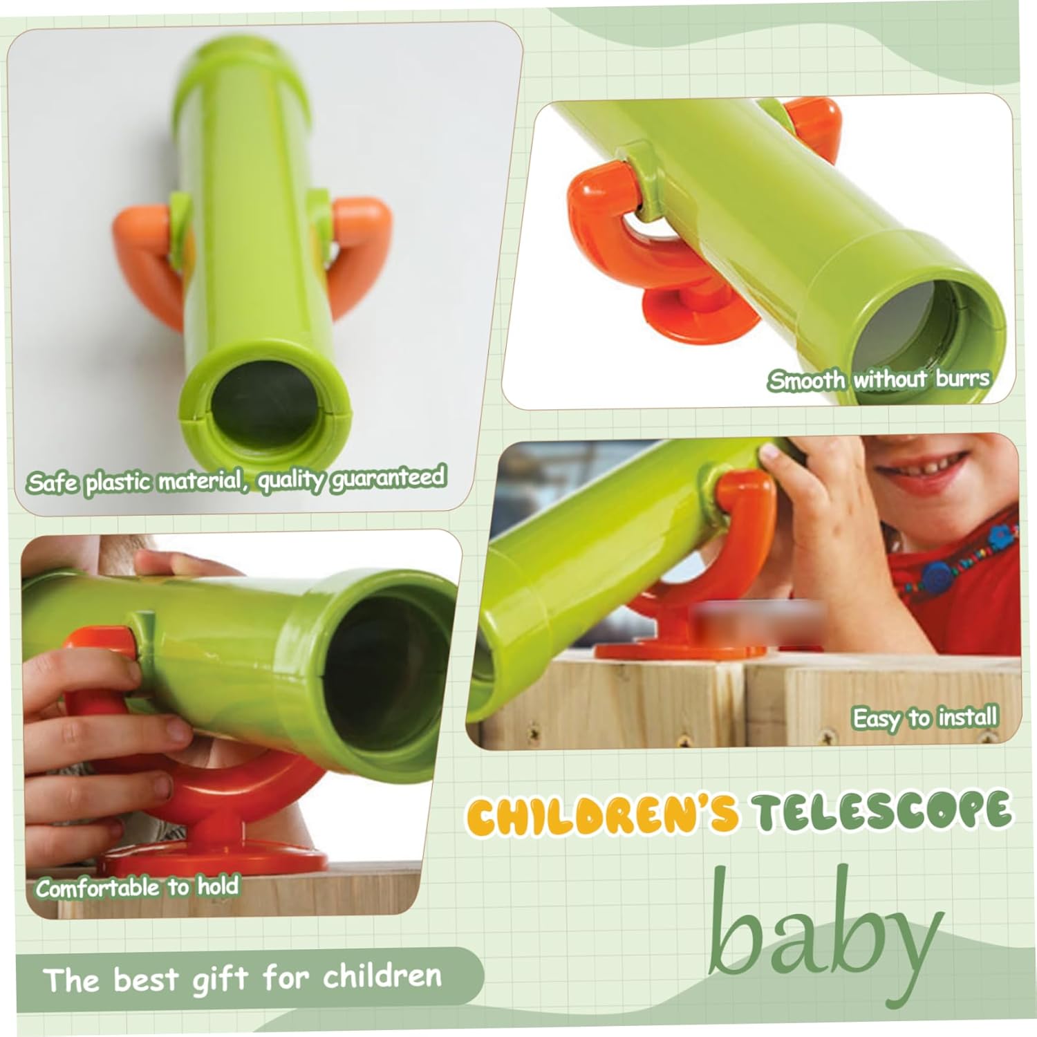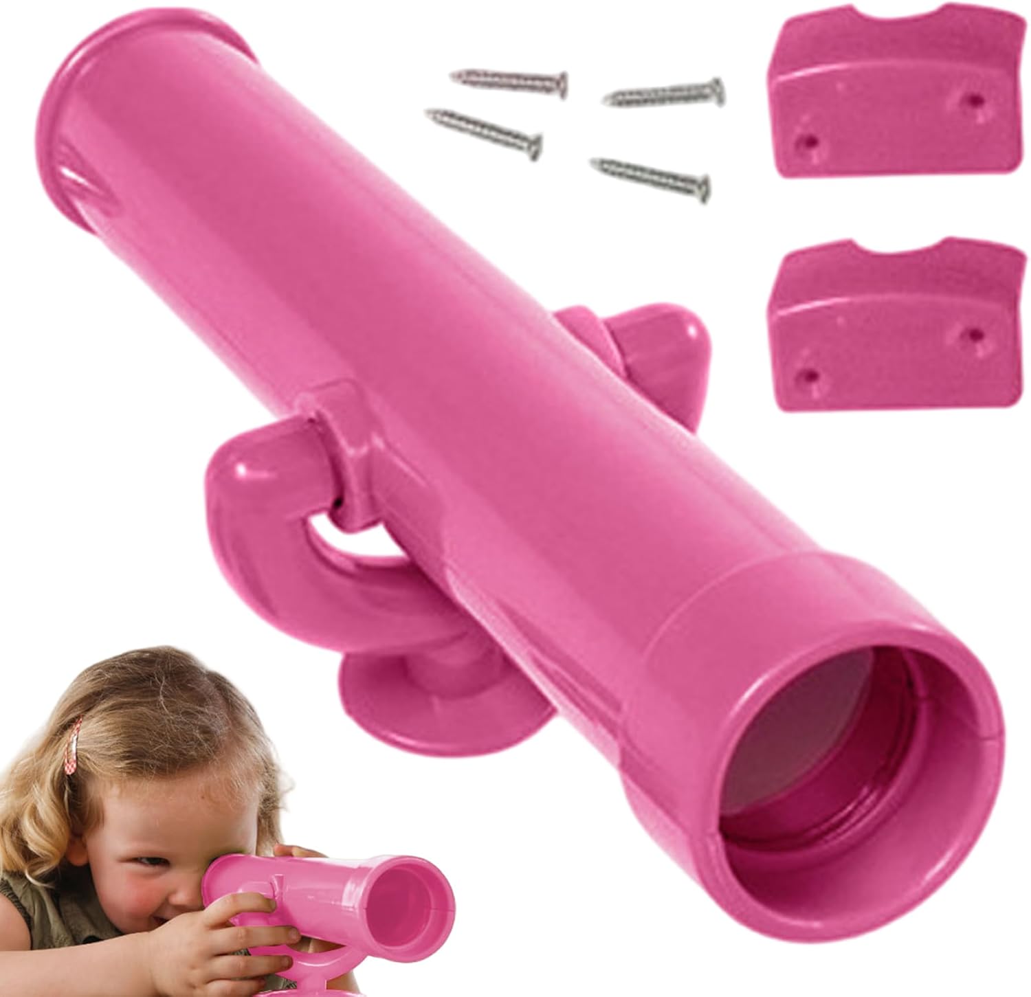 Costruzione per esterni: realizzato in plastica di alta qualità resistente agli agenti atmosferici, questo telescopio da gioco da 12 pollici è costruito per resistere al sole, alla pioggia e all'uso quotidiano all'aperto senza sbiadire, rompersi o deformarsi nel tempo. Ottimo per il gioco fantasioso: incoraggia la creatività, il gioco di ruolo e il divertimento all'aria aperta mentre i bambini assumono il ruolo di esploratori o capitani di nave, regalando ore di intrattenimento senza schermo e gioco sociale con gli amici. Processo di installazione semplice: viene fornito con tutto l'hardware di montaggio necessario per un fissaggio rapido e sicuro ai set da gioco in legno..installa facilmente su case sugli alberi, altalene o fortini per divertimento ed esplorazione istantanei. Divertente tema di avventure pirata: progettato con un classico look in stile pirata, questo telescopio aggiunge un tocco fantasioso ed emozionante a qualsiasi set da gioco in giardino, trasformando le case sugli alberi o le altalene in emozionanti punti di osservazione. Design sicuro e liscio: caratterizzato da bordi arrotondati e una superficie liscia, questo telescopio è sicuro da maneggiare per i bambini durante il gioco attivo..Il materiale è adatto ai bambini e privo di angoli ruvidi.