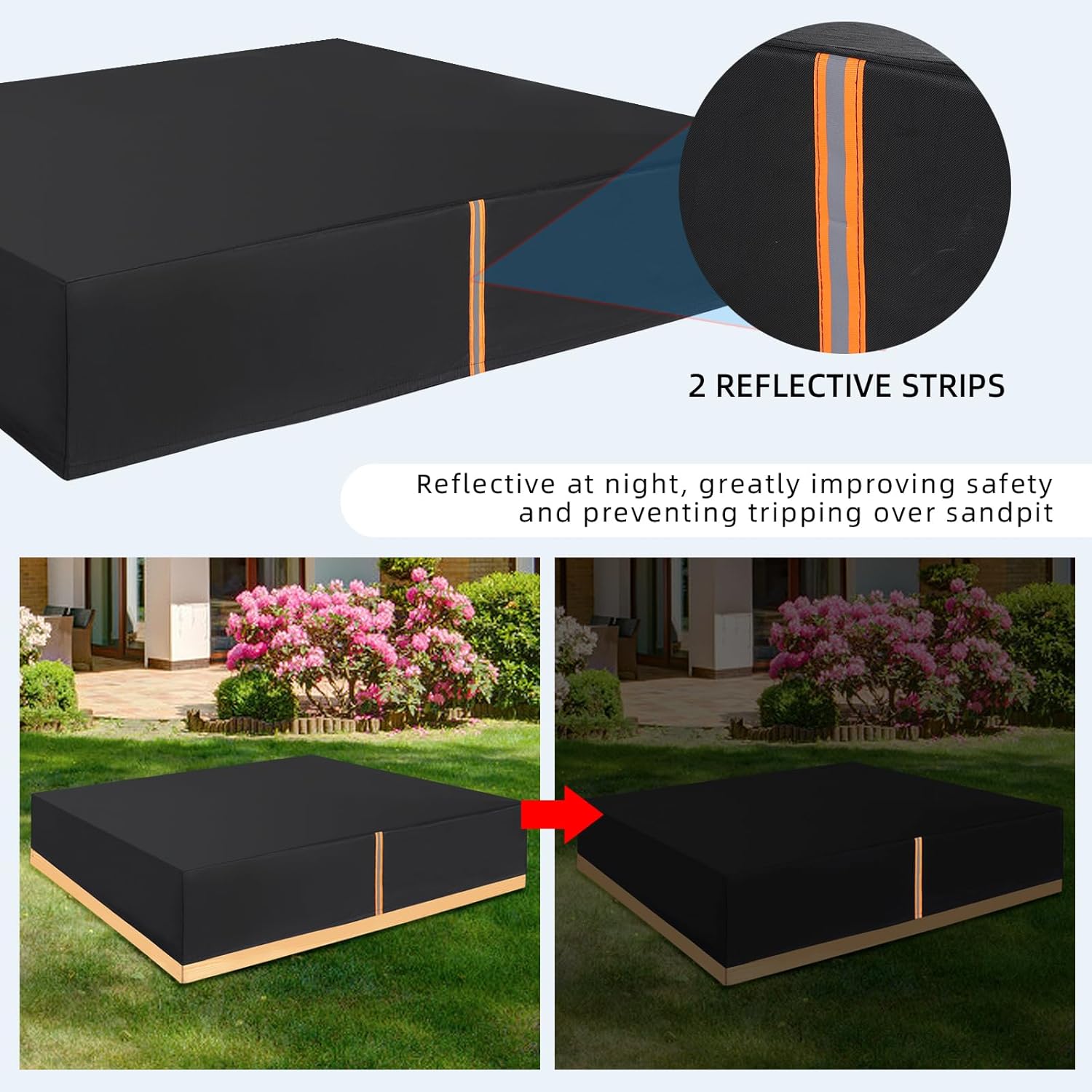 Dimensioni: 155 x 155 x 20 cm. La copertura per sabbiera, robusta e durevole, non è facile da danneggiare, ha una buona impermeabilità e può impedire che la sabbia diventi troppo calda a causa dell'esposizione a lungo termine al sole. (Si prega di confermare le dimensioni prima dell'acquisto). 【Fissaggio sicuro】 La nostra copertura per sabbiera è dotata di elastici sul fondo per fissare saldamente il bunker ed evitare che venga spazzato via dal vento. Strisce riflettenti sono cucite su ciascun lato della copertura della sabbiera per evitare di inciamparvi. 【Migliore resistenza agli agenti atmosferici e allo strappo】 La copertura della sabbiera ha doppie cuciture per migliorare la robustezza e la resistenza allo strappo. Una speciale striscia impermeabile per evitare la fuoriuscita dell'acqua dalle cuciture. 【Tessuto Oxford impermeabile e resistente agli strappi 420D】 Le coperture della sabbiera sono realizzate in tessuto Oxford pesante con spesso rivestimento in PU che è impermeabile, resistente agli agenti atmosferici, alla polvere, ai raggi UV e agli strappi. Il PU ha prestazioni migliori del PVC, poiché è più durevole, più resistente al calore e agli strappi, più morbido e confortevole. Ampia applicazione: si adatta molto bene a mobili da interni ed esterni o coperture per piscine utilizzate per picnic, terrazze, balconi, piscine, campeggi, rifugi e giochi per bambini, coperture per piscine da giardino e persino coperture antipolvere per mobili. Inoltre, aiuta a impedire agli animali domestici di entrare nella sabbiera.
