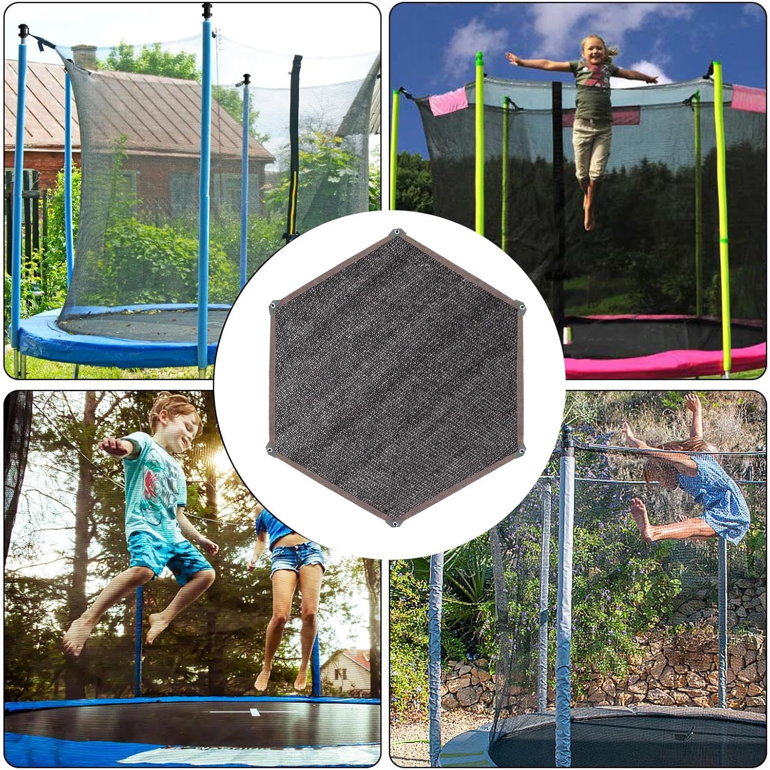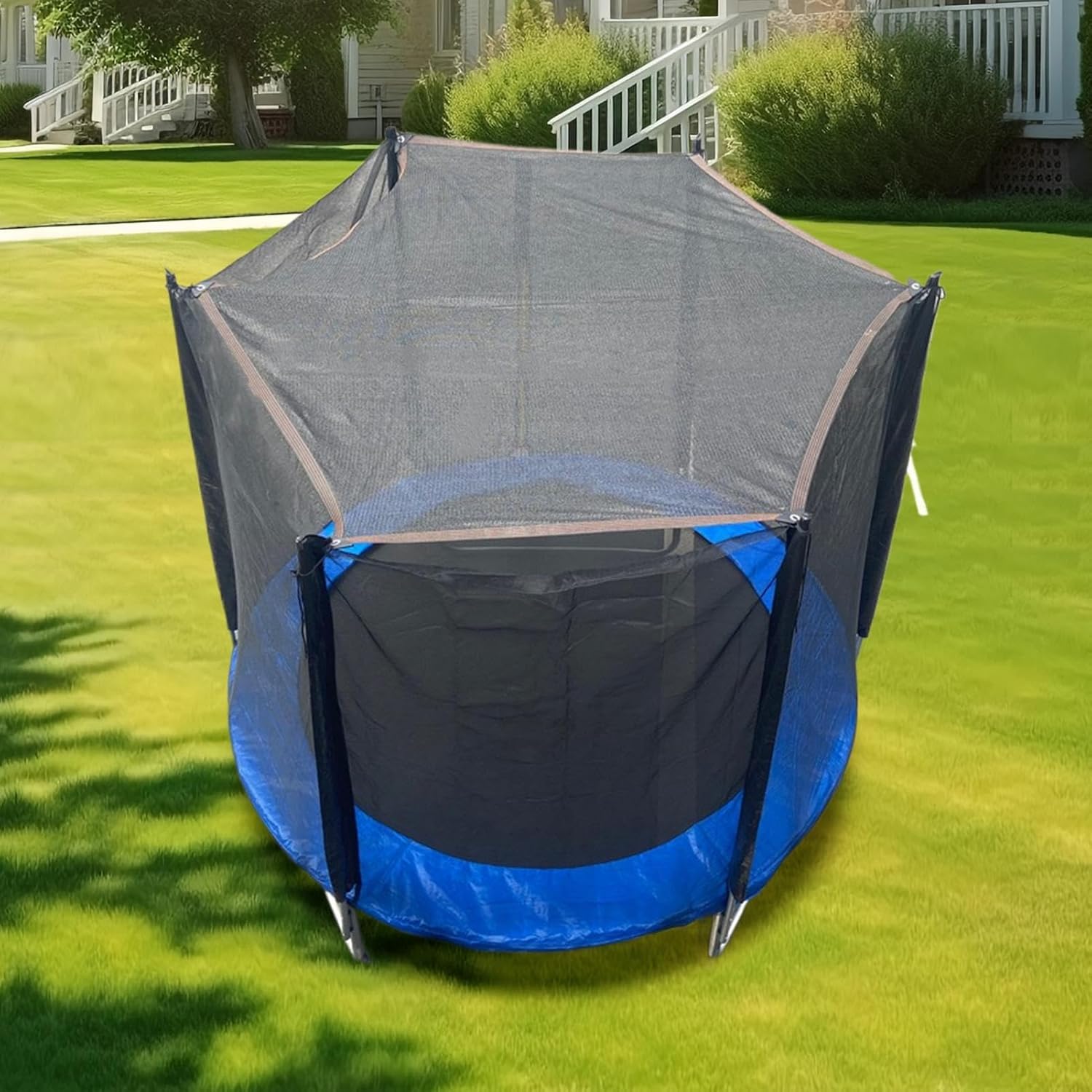 Qualità resistente ai raggi UV: previene efficacemente le scottature solari grazie alla protezione solare di alta qualità, protegge dalle radiazioni nocive e garantisce una piacevole esperienza di gioco all'ombra rinfrescante Montaggio rapido, sicurezza: pratico design pieghevole per riporre il trampolino ombreggiato salvaspazio. Rimane posizionato in modo affidabile e consente una facile installazione/rimozione con sede fissa per ombreggiature resistenti. Protezione per trampolino tutto l'anno: protezione affidabile da pioggia e sole per trampolini con 6/8 aste. Migliora la durata, consente l'uso all'aperto tutto l'anno e si adatta ai modelli di trampolino comuni. Il comfort incontra il divertimento: fornisce un'ombra affidabile sul trampolino, riduce il carico di calore e promuove un'esperienza di salto rinfrescante, ideale per il sole o il caldo Resistente alle intemperie: realizzato in rete resistente, questo telo è resistente a tutte le condizioni atmosferiche e rimane resistente all'usura, allo sbiadimento e alle crepe durante un uso prolungato