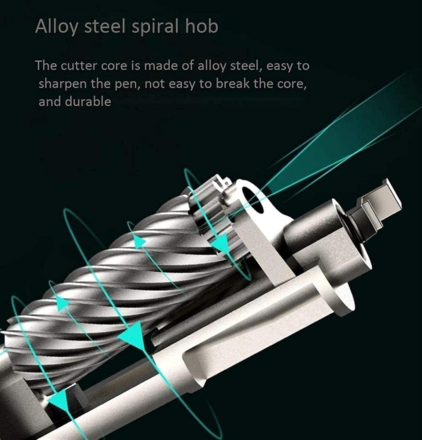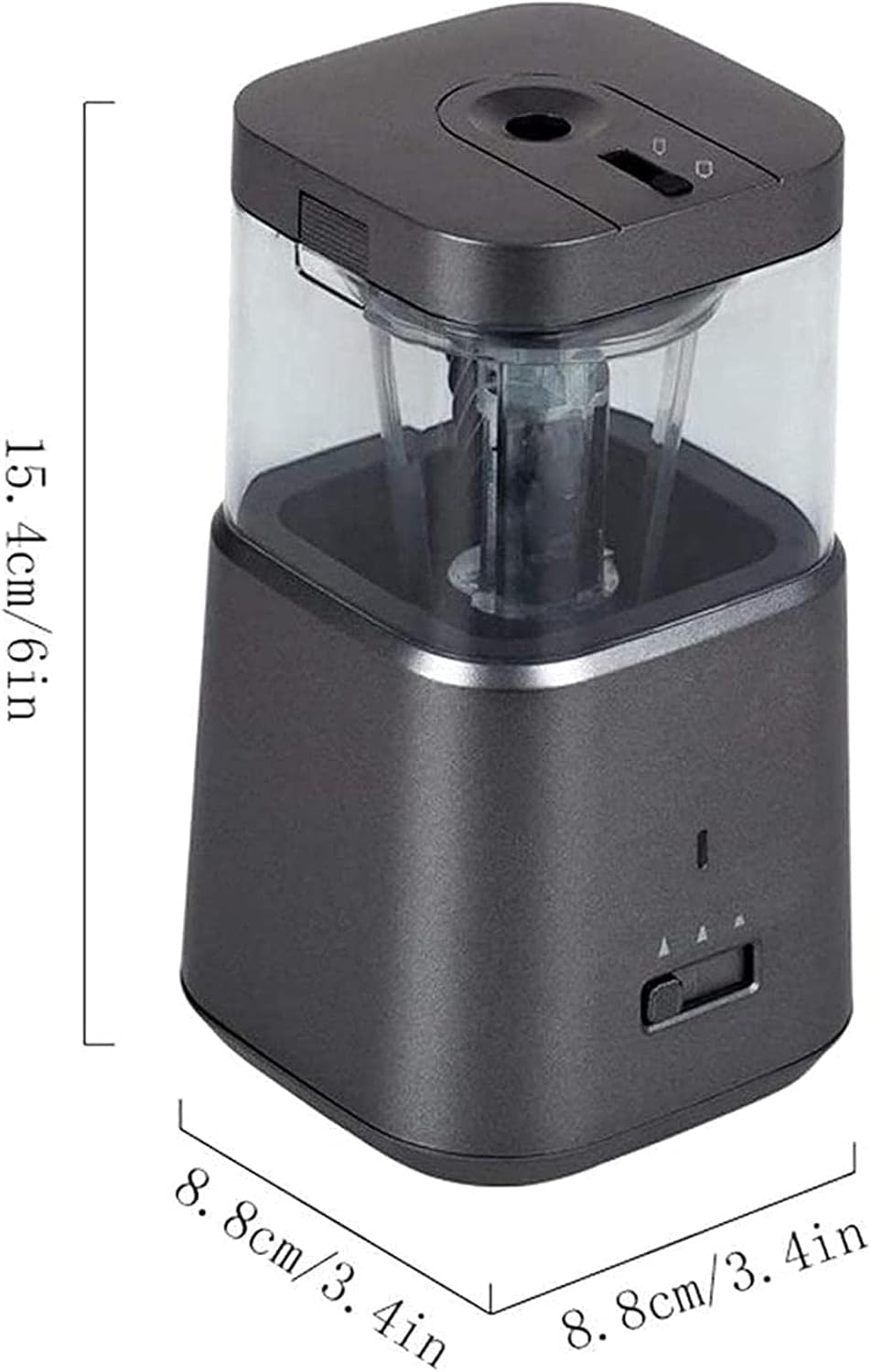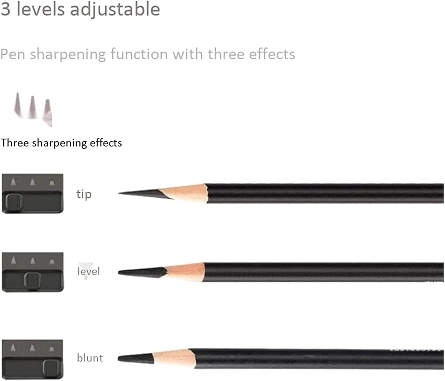 3 modalità di punta della matita: il temperamatite nero ha tre impostazioni di affilatura, basta regolare l'interruttore scorrevole della superficie inferiore per selezionare il tipo di punta desiderato. Adatto per affilare matite n. 2, matite colorate, matite di carboncino, ecc. Facile da pulire: facile da pulire, può contenere molti ritagli di penna. Il temperamatite è alimentato dall'adattatore CA