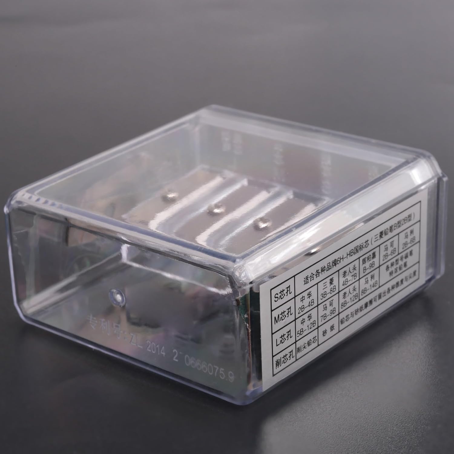 Design pratico: il temperamatite portatile è progettato con 4 fori, foro L per matite carboncino e spesse, foro M per matita media, foro S per matita piccola, mini foro per affilare le matite fino a un punto, 4 in 1 il temperamatite manuale può soddisfare le tue esigenze e affilare l'intera matita fino alla fine Il pacchetto include: riceverai 2 pezzi di temperamatite professionale 4 in 1, il temperamatite manuale può soddisfare le tue esigenze quotidiane, puoi anche condividere con i tuoi friend Coperchio e scatola: il temperamatite dotato di coperchio in plastica e scatola per proteggere le lame e conservare i trucioli di matita, mantenere l' pulito durante l'uso Ampie applicazioni: il temperamatite manuale può essere applicato per schizzi, carboncino, matite colorate, adatto per adulti, bambini, studenti e altre attività artistiche di apprendimento o pittura Dimensioni e materiale: il temperamatite manuale misura ca. 6 x 6 x 3 cm/ 2,36 x 2,36 x 1,18 pollici, realizzato in plastica trasparente di qualità, resistente e non facile da danneggiare, può essere applicato a lungo, la dimensione corretta è facile da trasportare