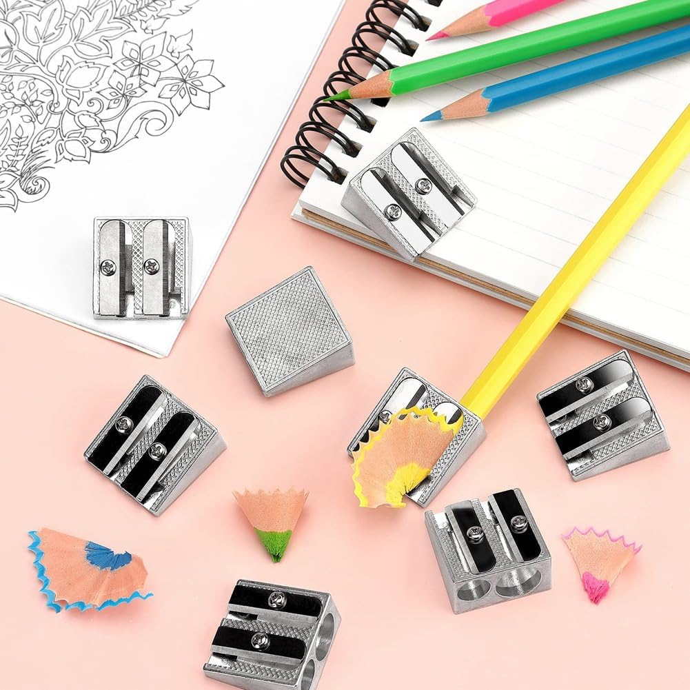 Pratico temperamatite a 2 fori, per affilare matite standard e jumbo. in acciaio affilata e di lunga durata per un taglio uniforme. Il temperamatite è realizzato in metallo e acciaio di alta qualità, resistente, leggero e facile da trasportare. Temperamatite in metallo di alta qualità. Perfetto per l'uso in scuole, uffici, case, progetti artistici, ecc. per matite normali o colorate.