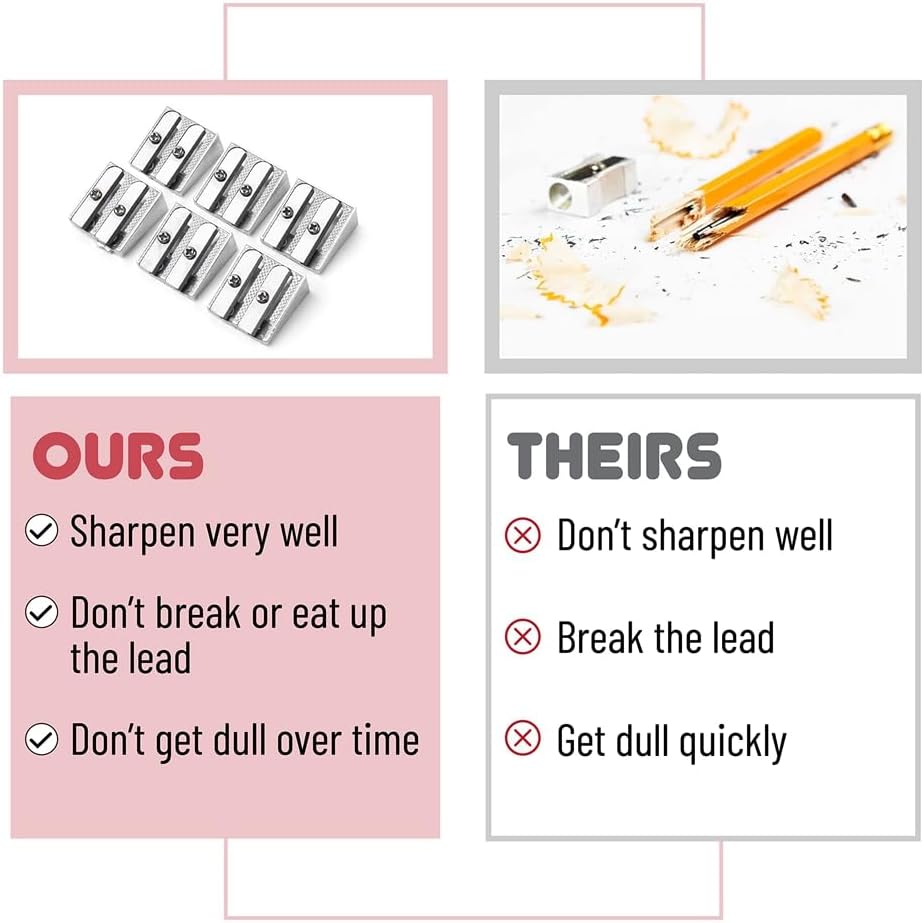 Perfetto per l'uso in scuole, uffici, case, progetti artistici, ecc. Per matite normali o colorate Il metallo affilato di alta qualità affila delicatamente matite, pastelli, evidenziatori biblici, ecc. Pratico temperamatite a 2 fori, per affilare matite standard e jumbo Temperamatite in metallo di alta qualità in acciaio affilata e di lunga durata