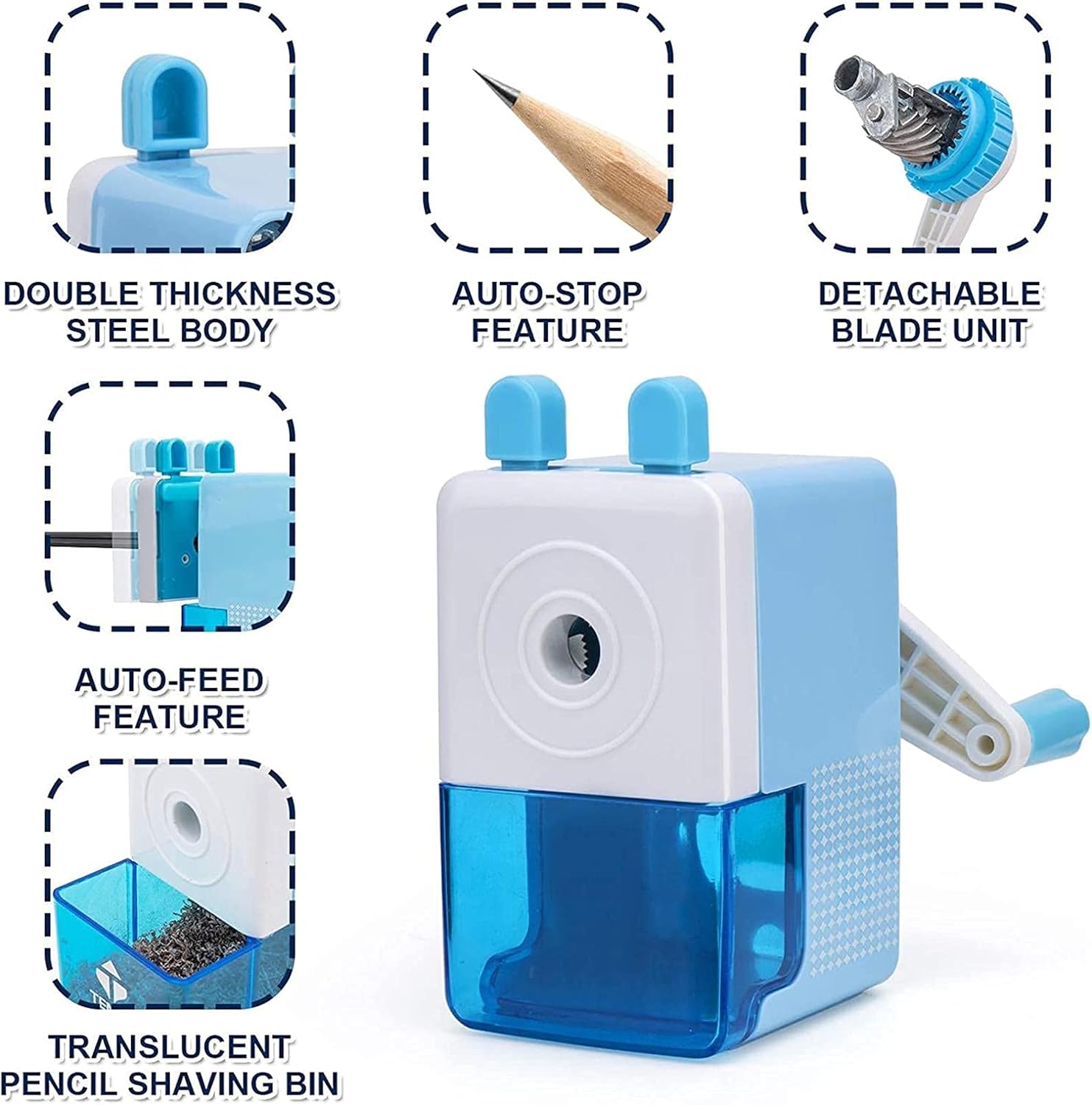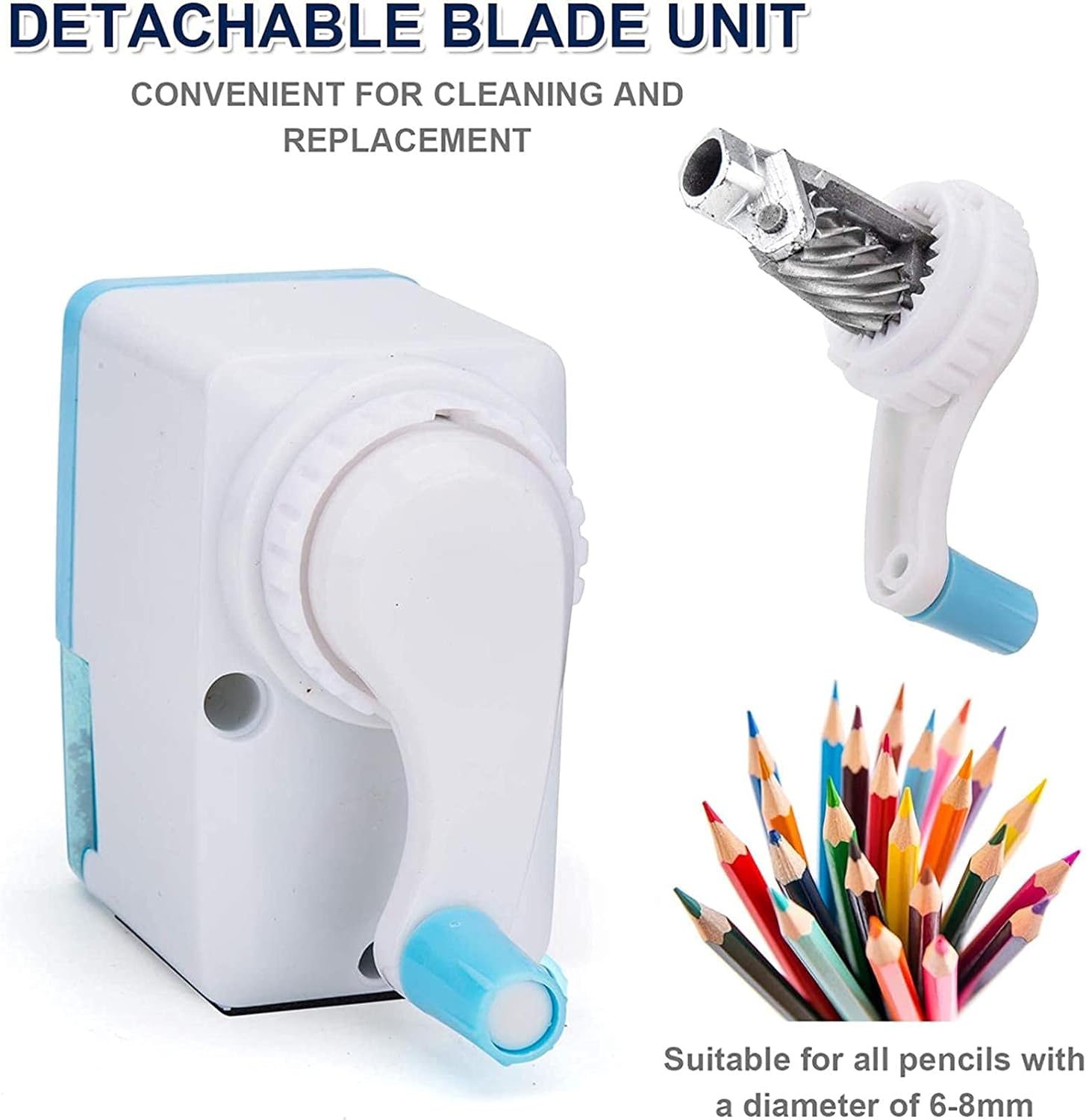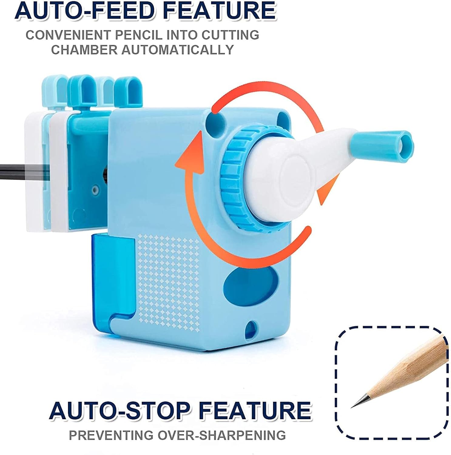 Clip per penna specificamente progettata per fissare la matita in modo stabile, semplice, efficiente, sicuro e affidabile. Temperamatite Con una lama in acciaio elicoidale resistente, può affilare fino a 6000 volte. La lama rotante ha una struttura in lega, che è più durevole. Temperamatite con funzionamento manuale fluido. Silenzioso e adatto all'aula. Funziona silenziosamente