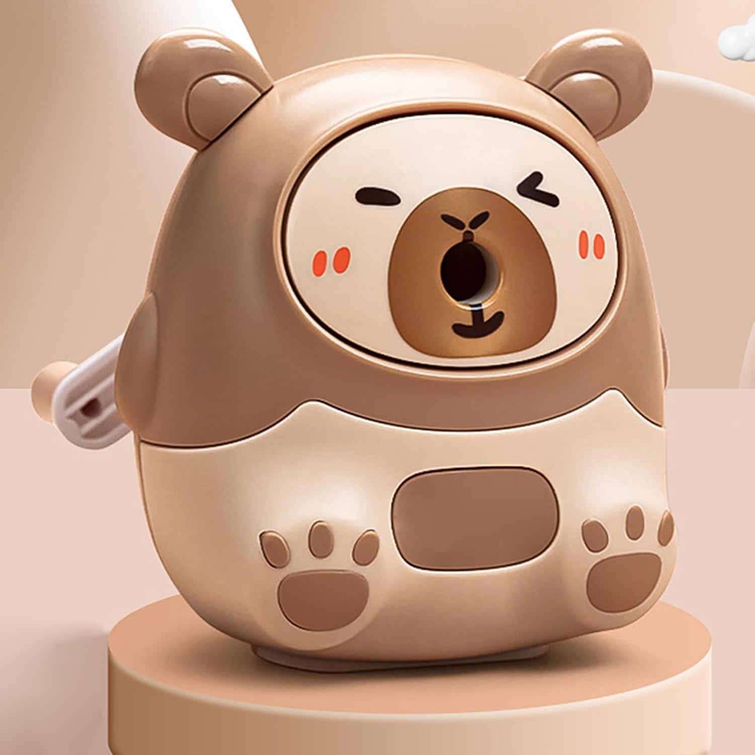 5. Meccanismo Solido: Garantisce un funzionamento fluido con il di caricamento automatico studiato per giovani utenti, adatto a matite da 6-8mm. Dotato di un robusto tagliente in lega rimovibile, offre un'affilatura affidabile e comoda senza aggiuntivi. Utilizzo Sicuro: La base antiscivolo con gommini soffici previene movimenti improvvisi, creando una superficie stabile che permette ai bambini di affilare matite efficacemente senza scivolamenti Pulizia facile: Dotato di un meccanismo antiversamento sicuro e un ampio cassetto per i trucioli, questo temperamatite semplifica la pulizia, aiutando i bambini a mantenere un ambiente ordinato con minimo impegno Progettato per durare: Utilizzando materiale ABS, questo temperamatite è ideato per un uso prolungato, con struttura robusta e resistente agli urti per soddisfare le esigenze di temperatura frequente Design coinvolgente per studenti: La forma giocosa a carpincho di questo affilamatite lo rende per chi vuole unire praticità e creatività, aggiungendo un tocco di allegria alla routine di studio