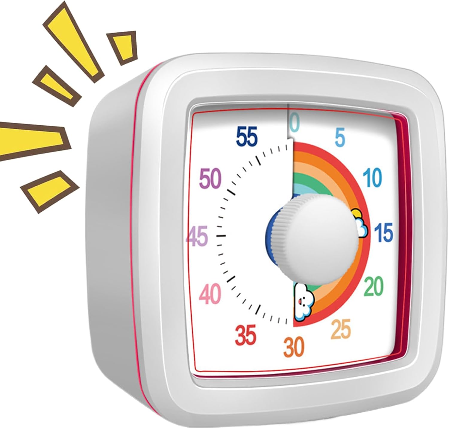 Apprendimento attraverso la visibilità: l'anello colorato intuitivo e lo schermo digitale evidenziano efficacemente il passare del tempo, supportano l'apprendimento autoguidato e migliorano la capacità di concentrazione per la comprensione pratica del tempo nella vita di tutti i giorni. Design adatto ai bambini: affascinanti figure di animali suscitano l'interesse dei più piccoli, incoraggiano la partecipazione attiva e insegnano i primi concetti in modo giocoso. Timer silenzioso: funziona in modo completamente silenzioso senza ticchettii a 0 decibel, supporta l'apprendimento concentrato e favorisce la concentrazione dei bambini senza sforzo mentre lavorano o studiano. Promuove la concentrazione: segnali sonori motivanti aumentano l'attenzione durante i compiti e la lettura. Rafforza la gestione del tempo attraverso un efficiente controllo del tempo di gioco con conto alla rovescia e allarme. Comodo controllo: la grande manopola con pulsanti simbolici consente l'accesso diretto a tutte le funzioni per il cambio dell'ora e l'accensione/spegnimento in pochi secondi senza istruzioni o supporto da parte di adulti