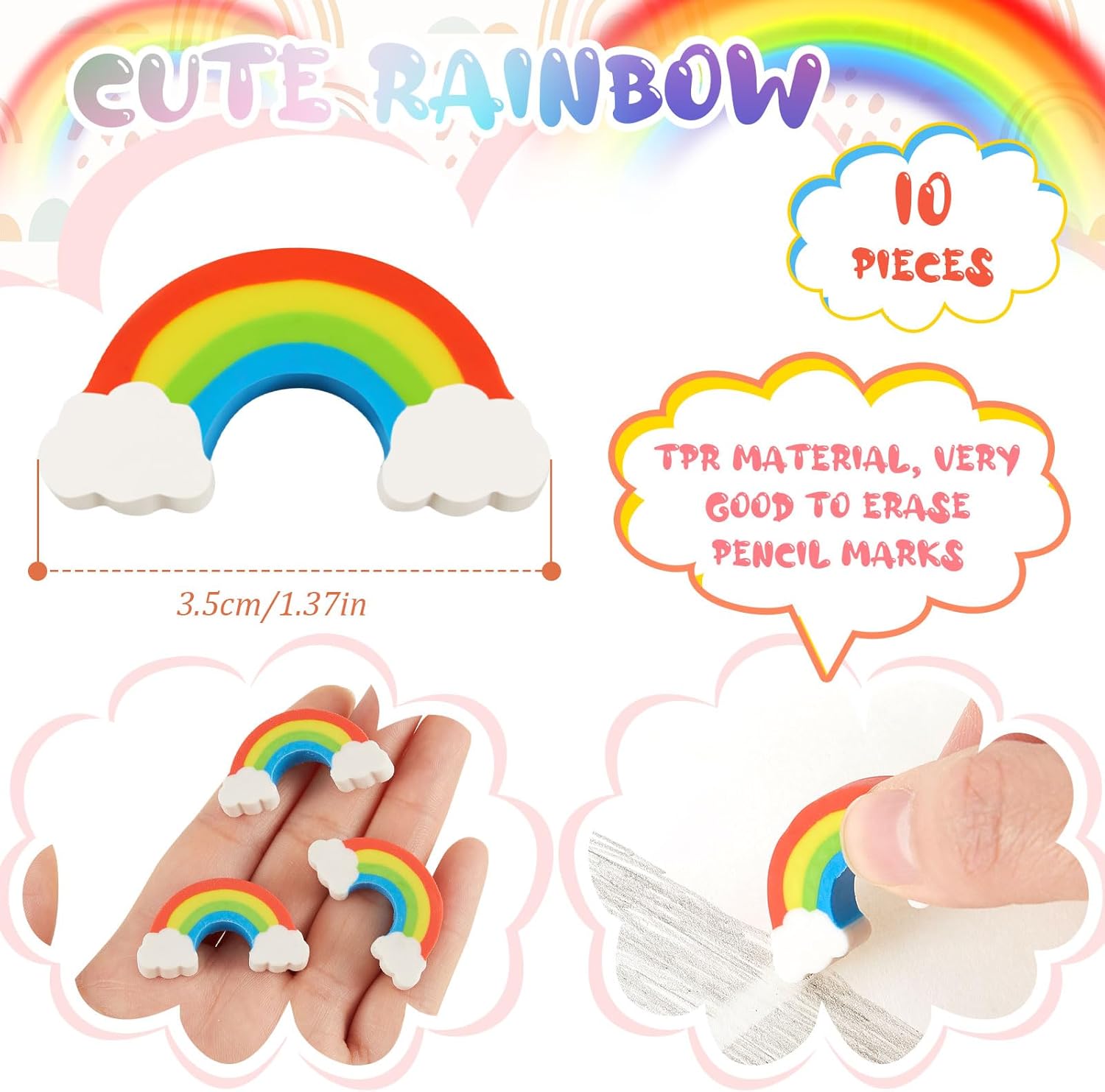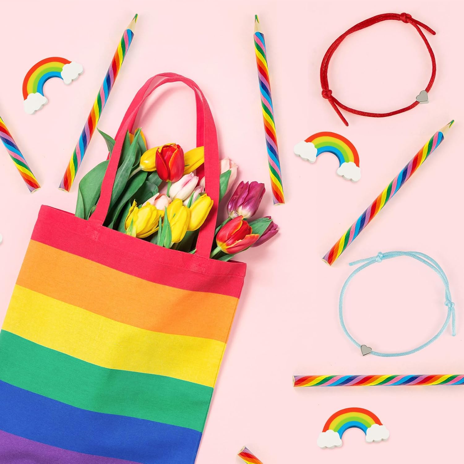 Materiale di qualità: questo pacchetto contiene articoli realizzati con vari materiali di qualità; Le penne arcobaleno sono realizzate principalmente in legno e offrono un'esperienza di scrittura confortevole; Le gomme arcobaleno sono realizzate in TPR, un materiale sicuro ed efficiente per cancellare i segni della matita; Gli affascinanti braccialetti a cuore sono realizzati in lega, garantendo resistenza e longevità. Colori brillanti e belli: la combinazione di colori di questo set di cancelleria arcobaleno per , come mostrato nelle immagini, è vibrante e accattivante; Le matite e le gomme arcobaleno sono colorate, allegre e adatte alle attività artistiche di; I braccialetti con cordino a cuore da donna aggiungono un tocco alla moda e carino. Taglia adatta: la dimensione di ciascun articolo è stata determinata attentamente per una praticità ottimale; I pennarelli arcobaleno sono lunghi circa 6,89 pollici/ 17,5 cm, una dimensione comoda per gli adulti; Le simpatiche gomme arcobaleno misurano circa 1,38 x 0,87 x 0,28 pollici o 3,5 x 2,2 x 0,7 cm, una dimensione ideale per una cancellazione efficiente e una facile conservazione. Multicolore: la matita arcobaleno ha uno speciale nucleo multicolore; Ogni matita combina 4 colori diversi, offrendo un'esperienza di scrittura o disegno nuova e divertente che non può essere ottenuta con le matite tradizionali. Braccialetti a cuore regolabili e versatili: i braccialetti dell'amicizia a cuore in lega da donna possono essere regolati nelle dimensioni per renderli adatti agli adulti. Costituiscono un'aggiunta chic a questo set, offrendo accessori moda adattabili per abbinarsi a qualsiasi outfit
