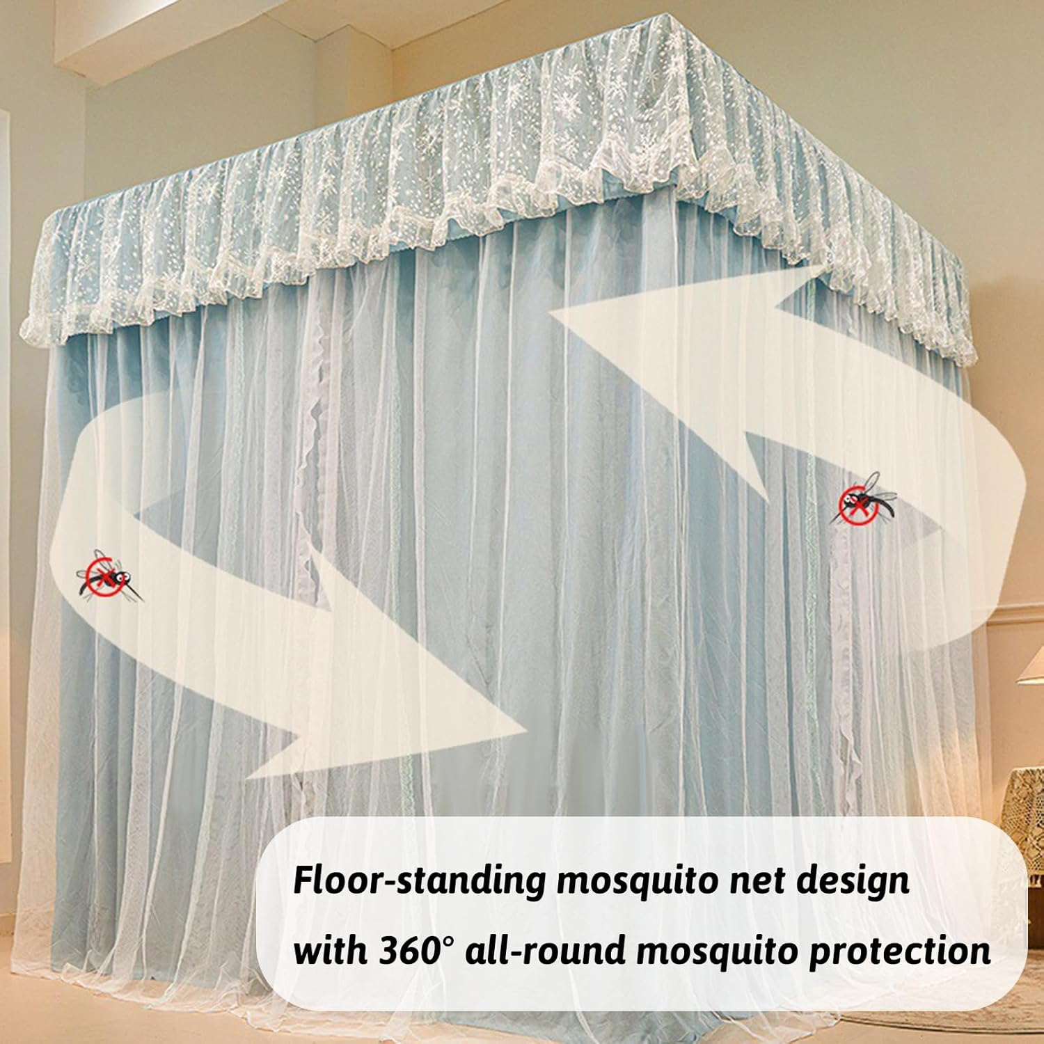 Protezione antizanzare a 360°: tenda a baldacchino con 4 angoli. Il design dal pavimento al soffitto avvolge il letto, bloccando completamente zanzare e insetti. Non c'è bisogno di respingere le zanzare prima di andare a letto, garantendo un sonno ristoratore. La doppia schermatura blocca i riflessi: filtra efficacemente i riflessi, creando un ambiente di sonno tetro anche durante il giorno, perfetto per chi ha il sonno leggero e per i riposini. Spazio ampio e confortevole: tende da letto per decorare la camera da letto Il design ampio e rialzato consente movimenti senza restrizioni quando ci si alza o ci si gira nel letto matrimoniale. Staffa in ferro verniciato: tende per letto a baldacchino a quattro angoli. La staffa è resistente e indeformabile, garantendo un'installazione sicura e stabile per un uso prolungato. Combinabile e adattabile: può essere utilizzato come zanzariera o tenda da letto, adattandosi a diverse stagioni e occasioni, offrendo soluzioni flessibili per la tua casa.