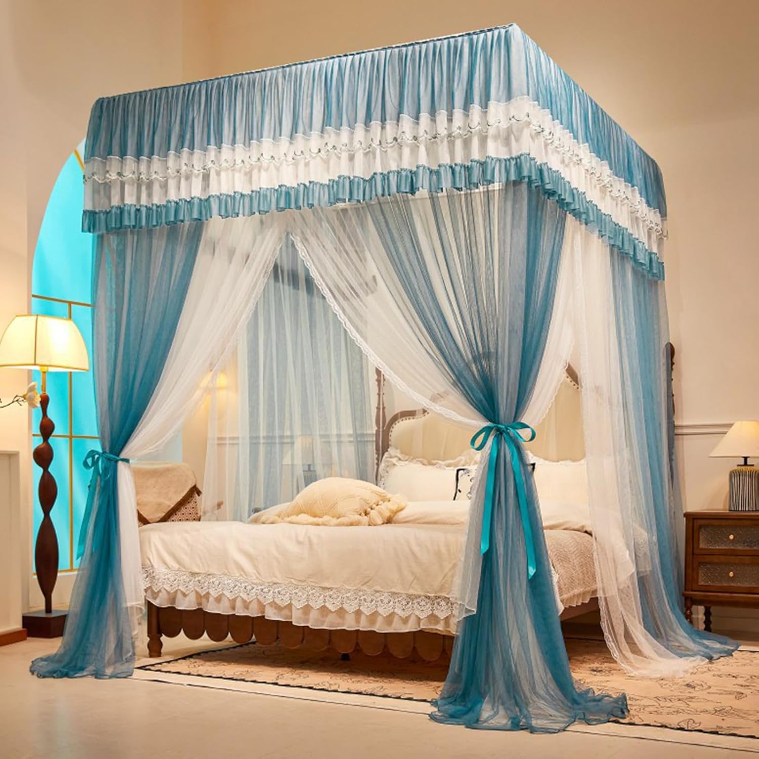 La rete della tenda avvolge strettamente la zona notte, tenendo fuori efficacemente le zanzare e garantendo un riposo notturno tranquillo. - Grazie al design a tripla porta, la tenda consente di entrare e uscire facilmente, offrendo ampio spazio per muoversi ed evitando qualsiasi sensazione di costrizione. - Le staffe della tenda sono verniciate, il che le rende resistenti all'usura e sufficientemente robuste da fornire un supporto sicuro e impedire ribaltamenti o deformazioni. - La tenda è caratterizzata da un design lungo fino al pavimento, con la rete che arriva fino a terra, garantendo una protezione completa contro le zanzare. - Le ampie porte pieghevoli della tenda sono progettate per un'apertura e una chiusura fluide, con una struttura sovrapposta che garantisce una tenuta sicura quando sono chiuse.