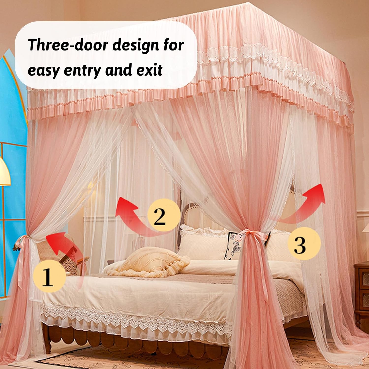 Completa: la struttura a quattro lati, lunga fino al pavimento, offre una protezione completa a 360° contro le zanzare. La rete fitta, flessibile e robusta impedisce efficacemente l'ingresso delle zanzare. - Sistema di ingresso a tre ante: il poster Bed Anti-Insect 4 Corner consente un facile accesso al letto, consentendo di entrare e uscire senza la difficoltà di manovrare la rete, per un'esperienza senza intoppi. - Dimensioni generose: la tenda a baldacchino con 4 angoli offre ampio spazio per muoversi, leggere o rilassarsi a letto senza sentirsi limitati. - Robusti supporti in ferro verniciato: le tende del letto a baldacchino a quattro angoli sono dotate di staffe in ferro verniciato rinforzate che garantiscono durata e resistono a deformazioni e oscillazioni. - Struttura a rete a doppio strato: l'elegante design a rete a doppio strato, abbinato a una meticolosa lavorazione artigianale, rende questa zanzariera non solo funzionale, ma migliora anche l'aspetto estetico del tuo spazio.