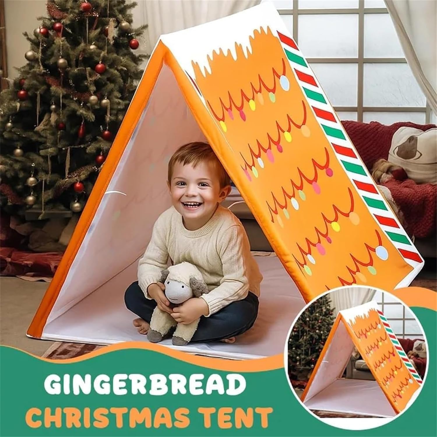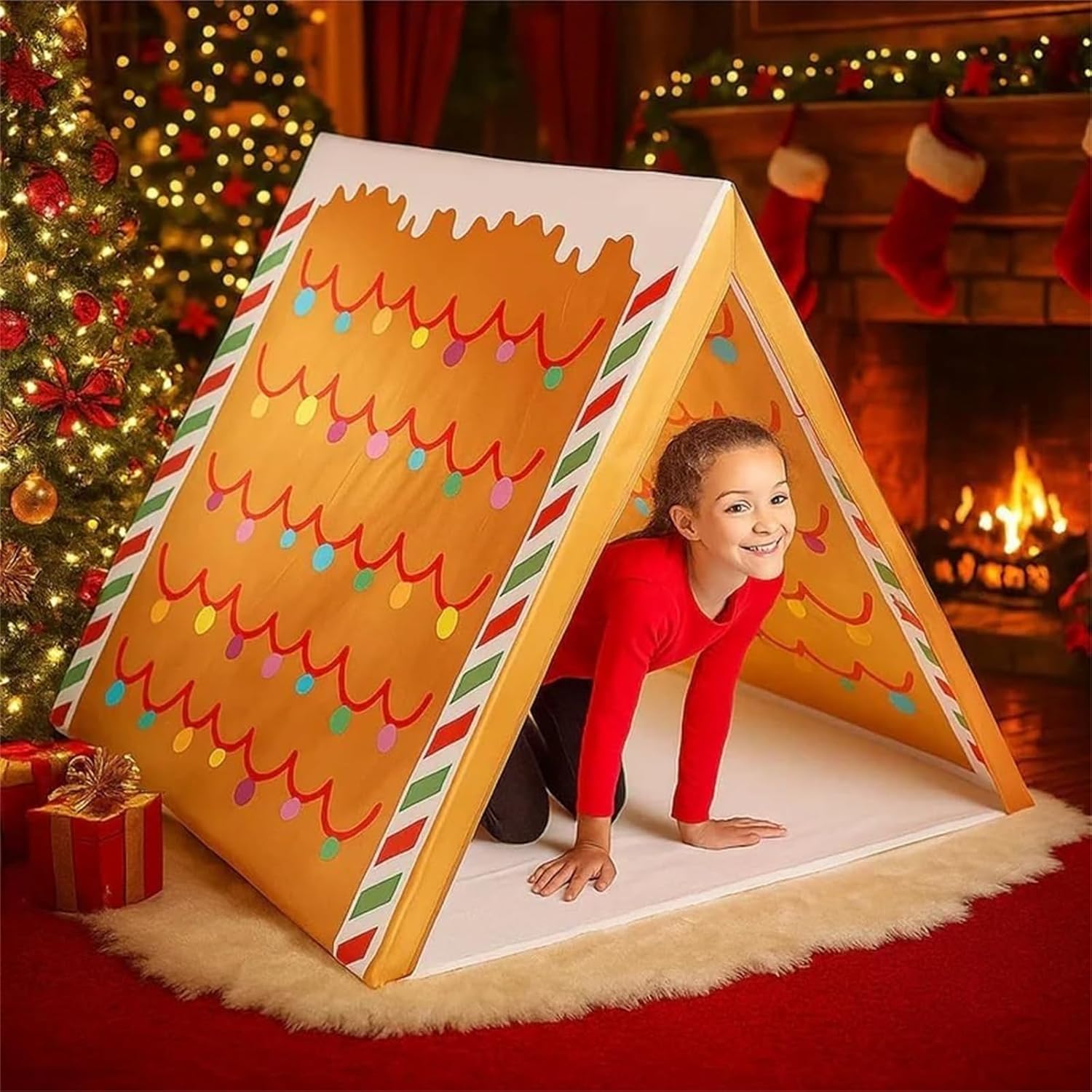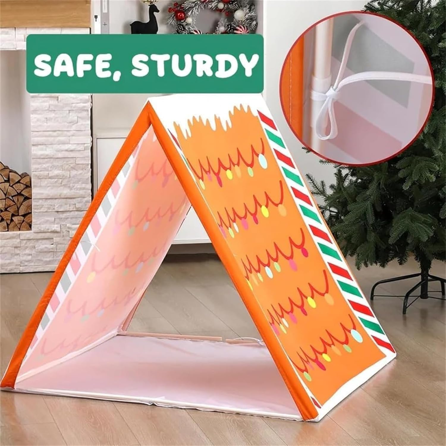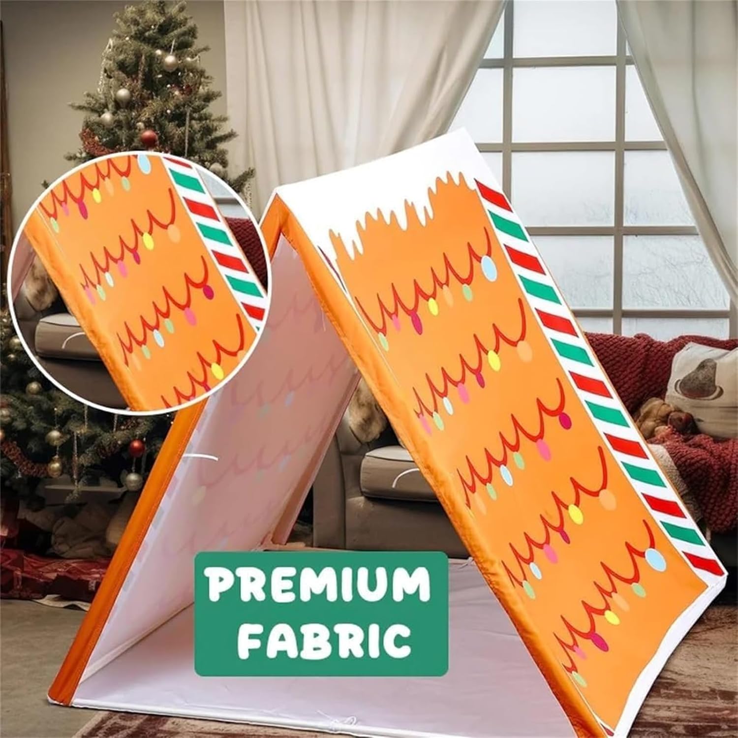 Decorazione natalizia a forma di pan di zenzero: strisce di caramelle e decorazioni natalizie trasformano qualsiasi angolo in un allegro spazio di gioco natalizio per storie, finti dolci e comodi pisolini. Dimensioni per uso domestico: le dimensioni compatte di 114 x 84 cm si adattano a camere da letto, sale giochi o vicino all'albero, perfette per angoli lettura e sfondi fotografici. Montaggio rapido, pieghevole – La struttura leggera e staccabile si monta in pochi minuti e si ripone facilmente tra una festa e l'altra o un pigiama party. Tessuto adatto al gioco – Morbido poliestere con bordi lisci per un gioco confortevole in casa; abbastanza resistente per un uso stagionale anno dopo anno. Ottimo per feste e regali – Un grazioso centrotavola per pigiama party, attività di conto alla rovescia e sorprese mattutine per le feste; disponibile in confezioni da 1/2/3 pezzi.
