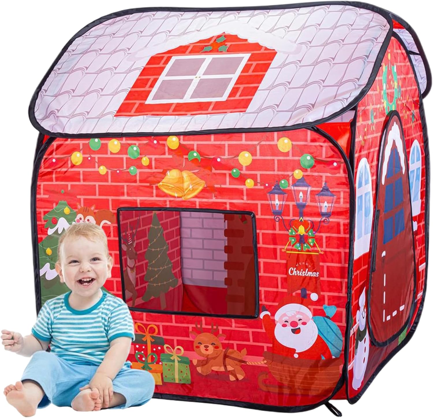 Casetta da gioco spaziosa e portatile: progettata con ampio spazio interno per più bambini, include anche una comoda custodia per un facile trasporto e stoccaggio, rendendola ideale sia per l'uso domestico che per i viaggi di vacanza Design natalizio festivo: caratterizzata da un affascinante motivo a tema natalizio con un cappello e una calza giocosi, questa tenda da casa per bambini crea un'atmosfera gioiosa e vacanziera, perfetta per feste di Natale al chiuso e giochi festivi Caratteristiche interattive per le vacanze: la tenda incorpora elementi accattivanti come la calza e il cappello decorativo per migliorare il divertimento durante le vacanze e stimolare la creatività, fornendo un'esperienza di gioco coinvolgente che incoraggia l'interazione sociale e la gioia festosa Facile installazione e pulizia: il montaggio rapido con un semplice design pop-up consente a genitori e bambini di installare la tenda da gioco senza sforzo, mentre i materiali leggeri facilitano la pulizia e lo stoccaggio senza problemi dopo le celebrazioni festive Materiali stabili e sicuri: realizzata in tessuto poliestere atossico di qualità con struttura robusta del telaio, la tenda garantisce un uso duraturo e un ambiente sicuro in cui i bambini possono godersi ore di gioco fantasioso