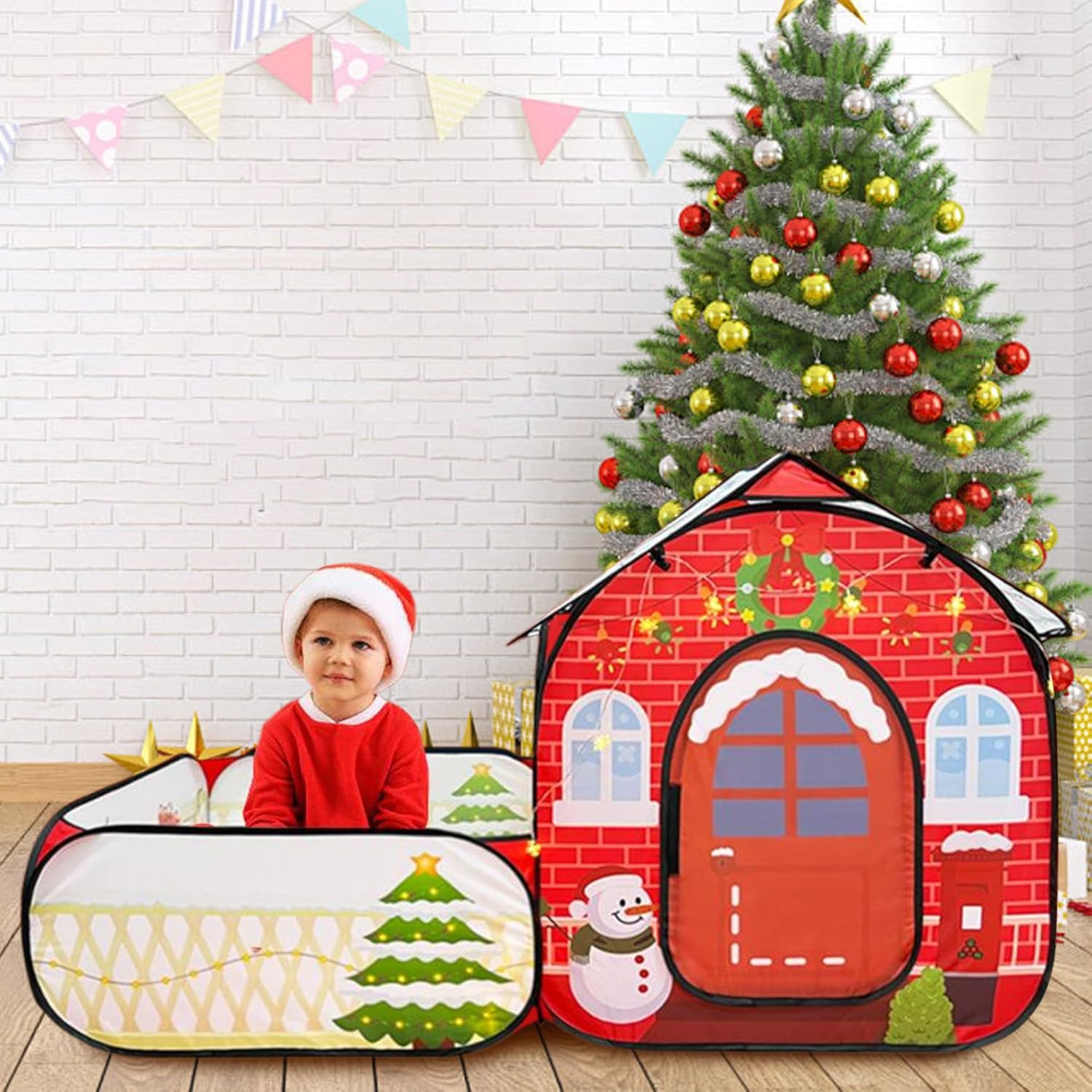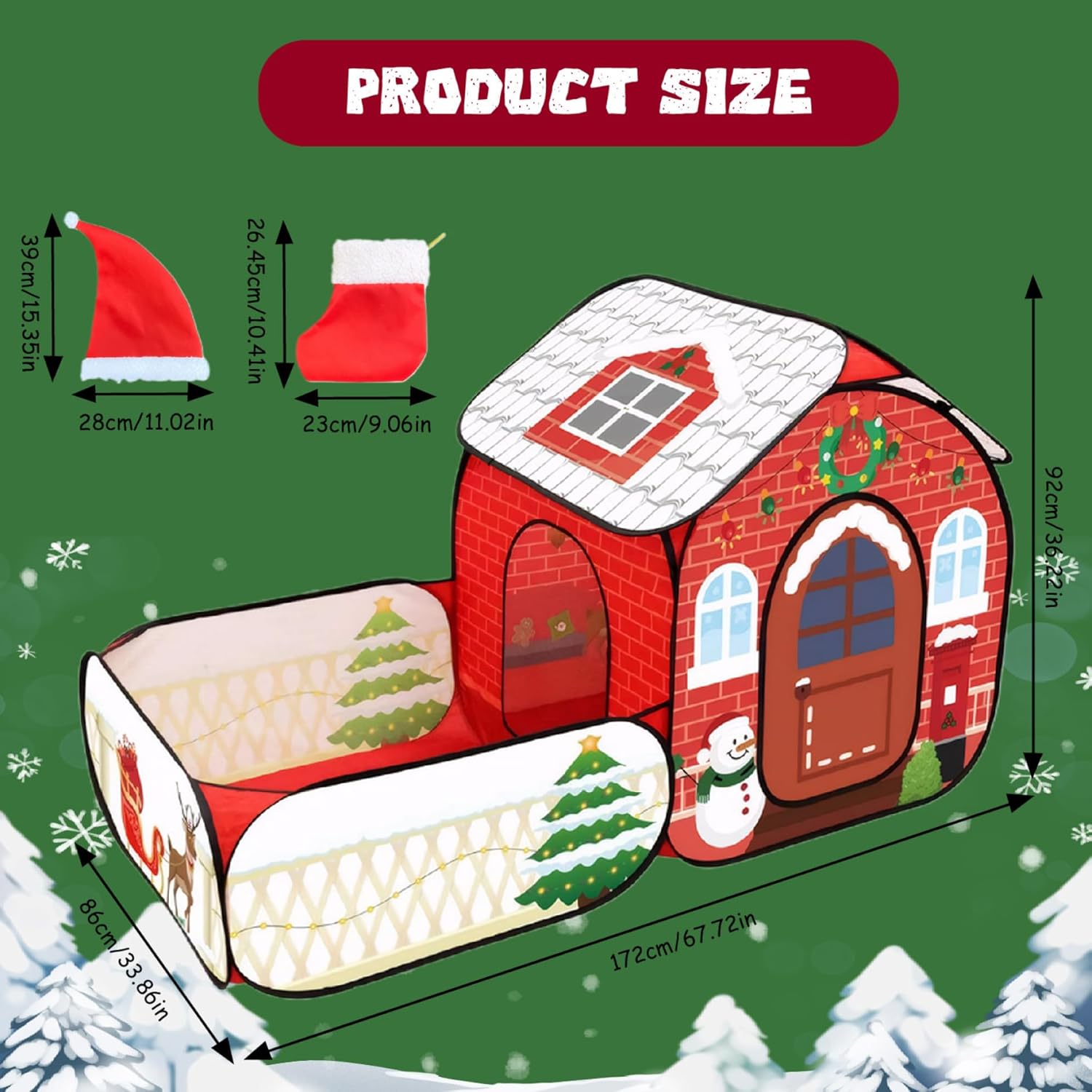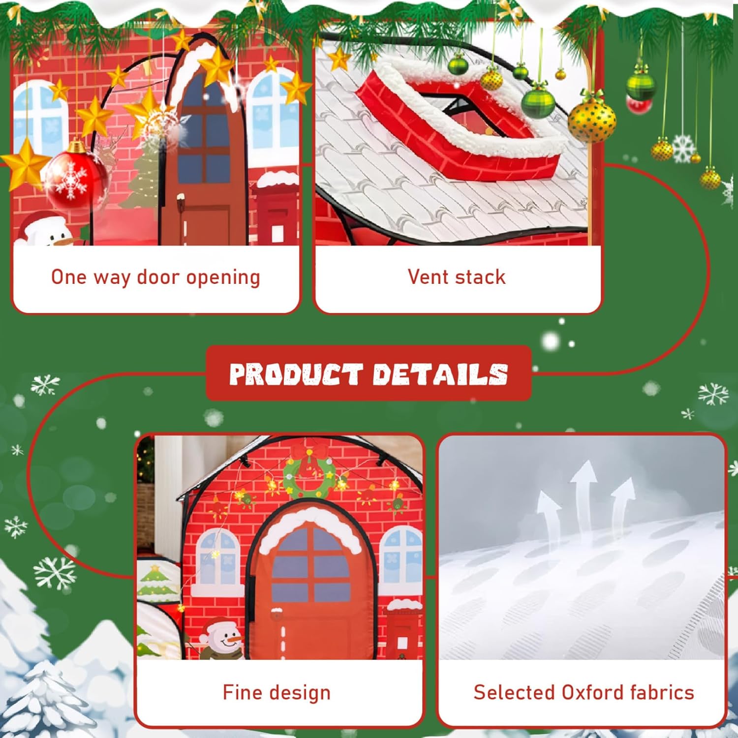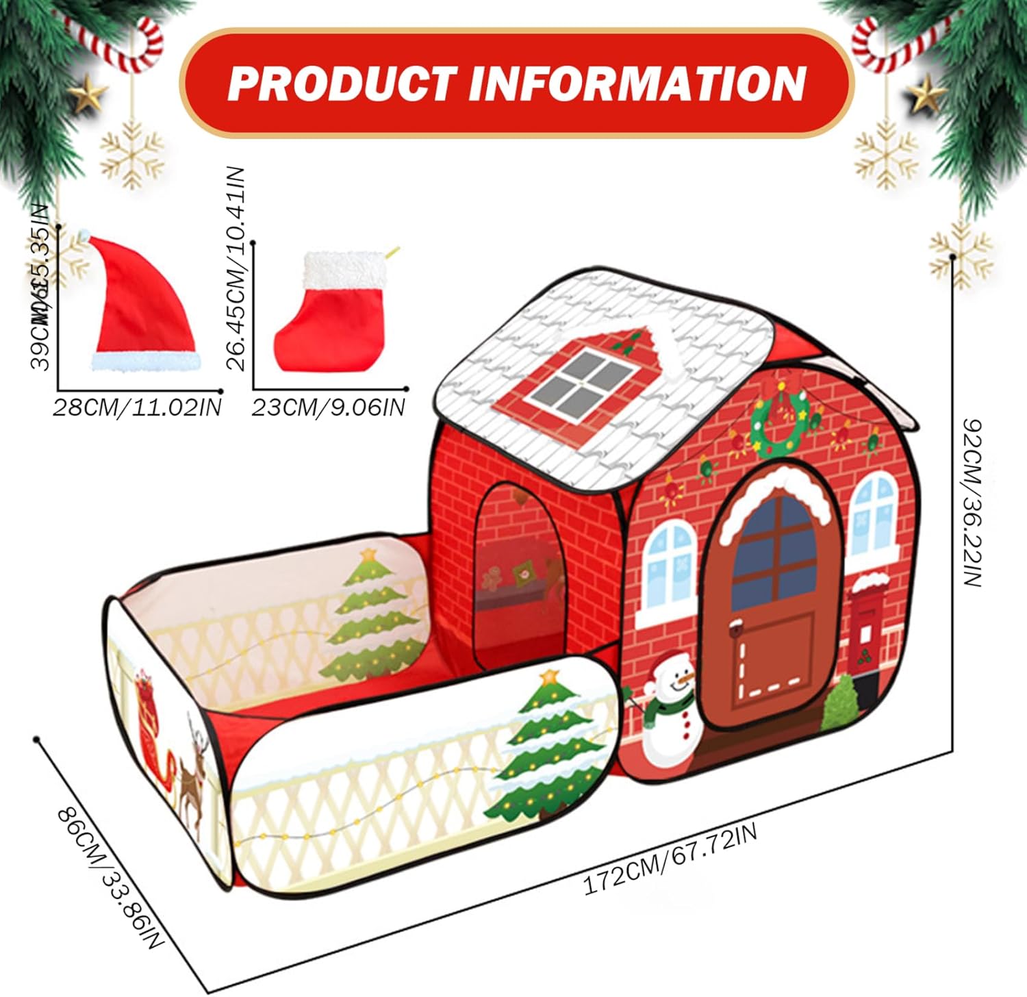 Educativo e coinvolgente: questa casetta per bambini promuove le capacità di sviluppo migliorando la capacità di gattonare, stimolando l'immaginazione e favorendo la creatività..Fornisce uno spazio in cui i bambini possono giocare con i fratelli o i genitori, rendendolo una scelta eccellente per i premi educativi. Gioco interattivo: il suo set di tende da gioco per bambini include tutto per una celebrazione festiva: 1 giocattolo per tenda di Natale, 1 cappello di Natale per bambini e 1 calza di Natale..Dotata di un tunnel cingolato, la tenda per bambini incoraggia il gioco attivo e l'esplorazione..Il design interattivo aggiunge un ulteriore livello di divertimento, consentendo ai bambini di godersi ore di attività coinvolgenti all'interno della tenda. Divertimento versatile: la tenda da gioco per bambini è perfetta per varie occasioni, tra cui feste di compleanno, picnic, barbecue in giardino, parchi, campi da gioco, asili nido, scuole e carnevali..Il suo design adattabile lo rende un successo in ogni evento. Dimensioni ideali e costruzione di qualità: con dimensioni di 68x34x36 pollici, questa casetta per bambini offre ampio spazio per far giocare ed esplorare comodamente i più piccoli..Realizzata in tessuto Oxford 210D, la tenda per bambini è costruita per resistere al gioco attivo fornendo allo stesso tempo uno spazio accogliente e invitante per i bambini. Comodo stoccaggio e installazione: la tenda da gioco per bambini è progettata per una facile installazione e stoccaggio pieghevole, semplificando il montaggio e lo smontaggio..Il suo design compatto consente di riporlo senza problemi quando non in uso, rendendolo ideale per le case con spazio limitato.