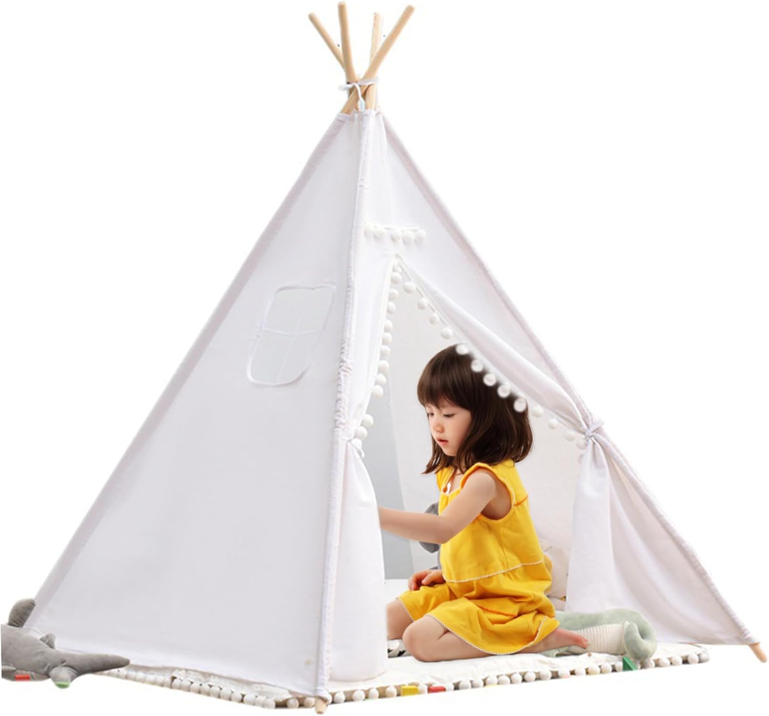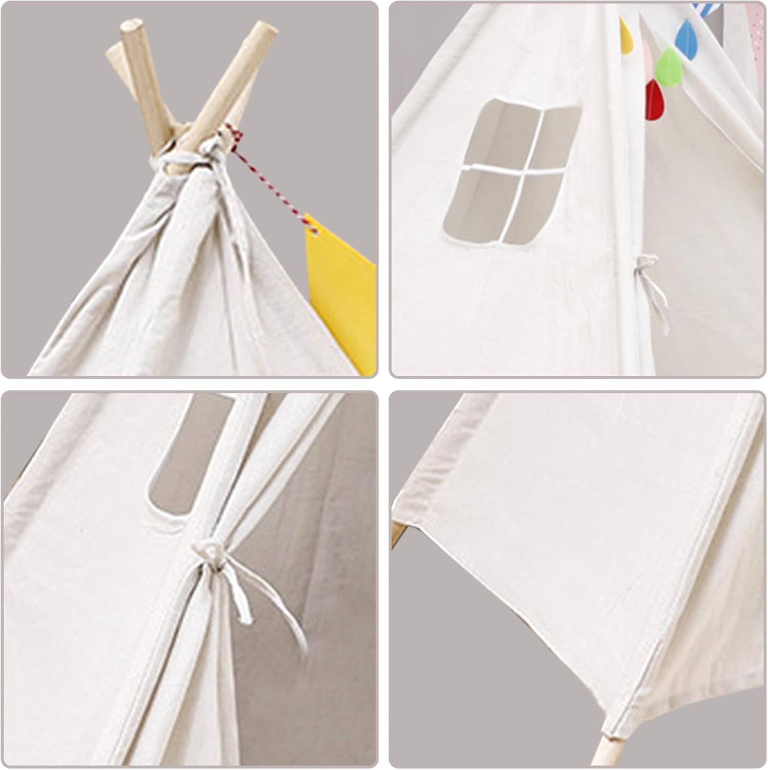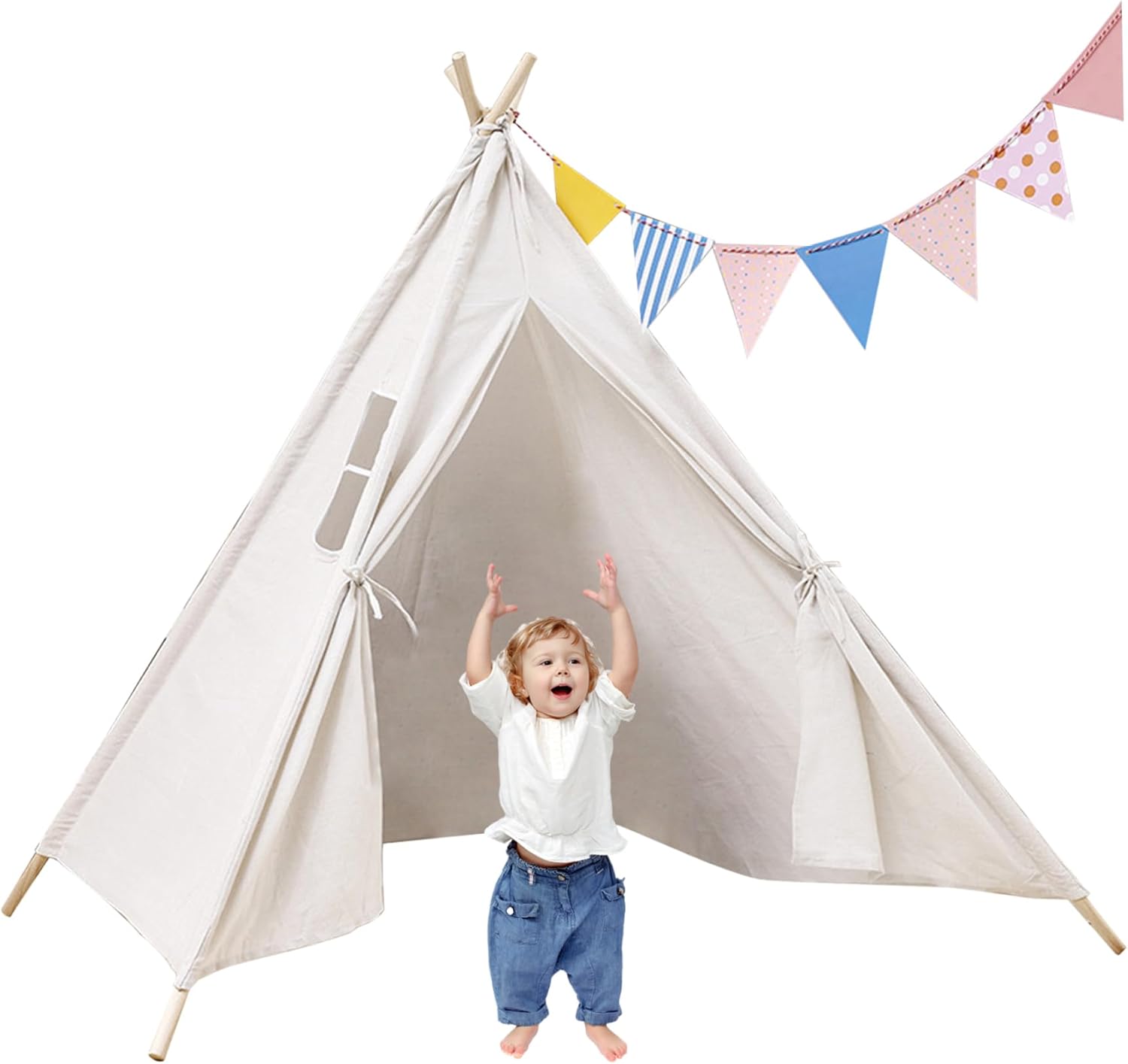 Ampio spazio e divertimento con i graffiti: la tenda da gioco con base 120x120 cm/47,24x47,24 pollici e altezza 130 cm/51,18 pollici..Può ospitare fino a 3 bambini, tuo figlio può anche leggere e fare cosplay con i suoi amici all'interno. Tenda bianca, i bambini possono fare graffiti a piacimento e usare la loro immaginazione per creare la loro tenda preferita. Finestra traspirante e lavabile: dotata di una finestra traspirante, questa tenda da gioco favorisce la circolazione dell'aria fornendo allo stesso tempo una vista dell'ambiente circostante, garantendo un'area giochi confortevole e ventilata per i bambini mentre impegnano in ore di gioco fantasioso. Ideale per i bambini: realizzata su misura per un ideale, questa tenda da gioco stimola la creatività e incoraggia il gioco di ruolo, offrendo ai bambini uno spazio speciale per liberare la loro immaginazione, ospitare amici o creare le proprie avventure narrative in un vivace e coinvolgente ambiente da teatro in stile indiano. Facilità di montaggio e portabilità: installa facilmente questa casetta da gioco all'interno o all'esterno in pochi minuti e, quando il tempo di gioco è finito, smontala facilmente e riponila nella borsa inclusa..La sua leggera e portatile lo rende perfetto per appuntamenti di gioco o avventure spontanee. Sicuro da giocare: le nostre tende per bambini sono realizzate in lino di cotone naturale traspirante e i pali della tenda sono realizzati in legno robusto (diametro del telaio: 2 cm/0,79 pollici), delicato sulla pelle e morbido, non sbiadisce e stabile..Queste case da gioco in stile indiano creano uno spazio divertente in cui i bambini possono giocare e rilassarsi. Inoltre, uno stendardo decorativo aggiunge stile e carattere al fascino estetico della tenda.