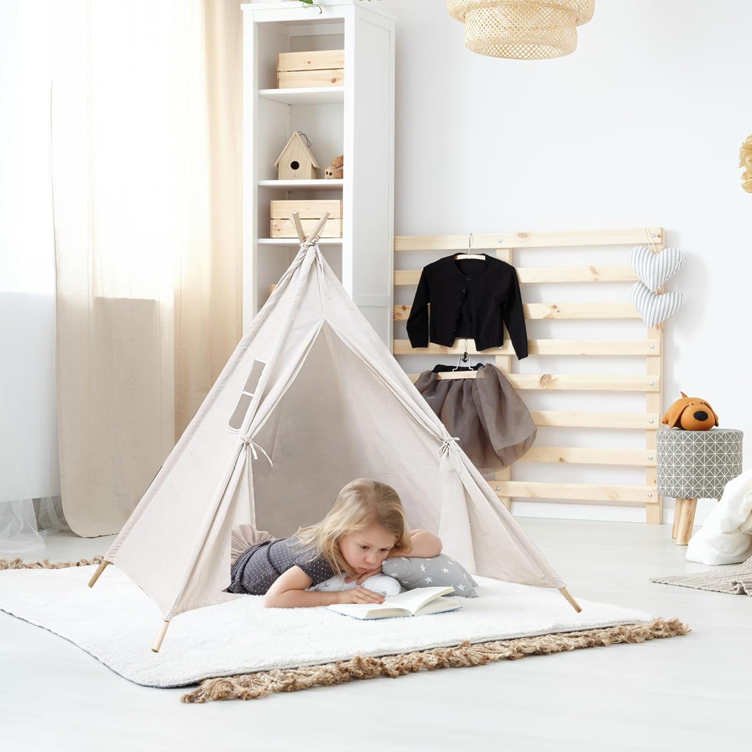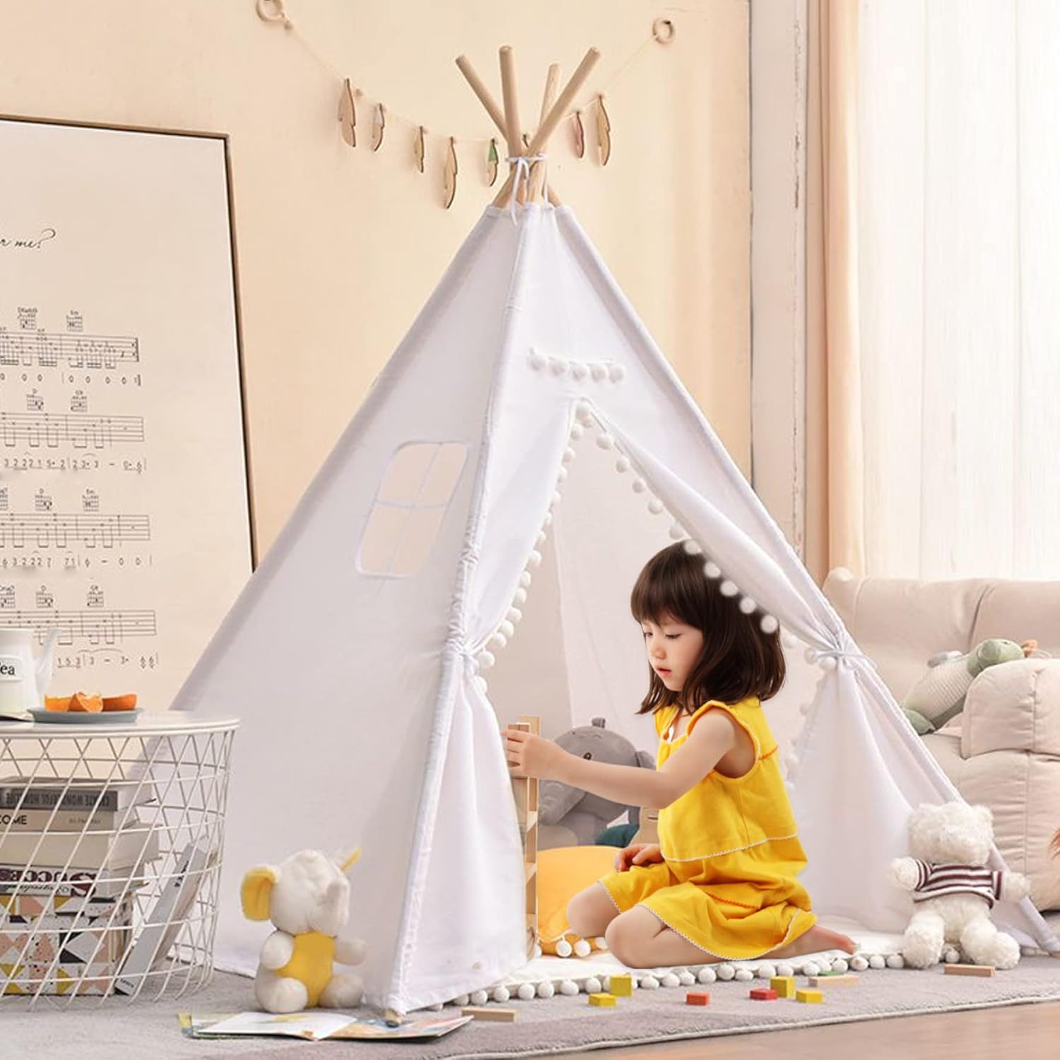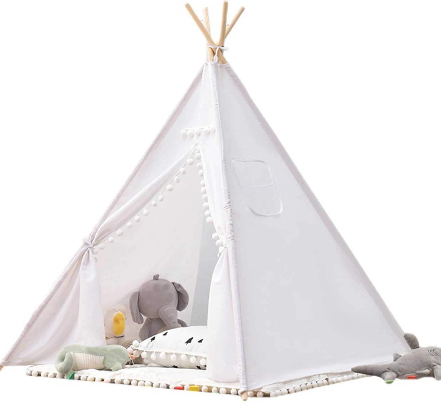 Ampio spazio e divertimento con i graffiti: la tenda da gioco con base 120x120 cm/47,24x47,24 pollici e altezza 130 cm/51,18 pollici..Può ospitare fino a 3 bambini, tuo figlio può anche leggere e fare cosplay con i suoi amici all'interno. Tenda bianca, i bambini possono fare graffiti a piacimento e usare la loro immaginazione per creare la loro tenda preferita. Finestra traspirante e lavabile: dotata di una finestra traspirante, questa tenda da gioco favorisce la circolazione dell'aria fornendo allo stesso tempo una vista dell'ambiente circostante, garantendo un'area giochi confortevole e ventilata per i bambini mentre impegnano in ore di gioco fantasioso. Ideale per i bambini: realizzata su misura per un ideale, questa tenda da gioco stimola la creatività e incoraggia il gioco di ruolo, offrendo ai bambini uno spazio speciale per liberare la loro immaginazione, ospitare amici o creare le proprie avventure narrative in un vivace e coinvolgente ambiente da teatro in stile indiano. Facilità di montaggio e portabilità: installa facilmente questa casetta da gioco all'interno o all'esterno in pochi minuti e, quando il tempo di gioco è finito, smontala facilmente e riponila nella borsa inclusa..La sua leggera e portatile lo rende perfetto per appuntamenti di gioco o avventure spontanee. Sicuro da giocare: le nostre tende per bambini sono realizzate in lino di cotone naturale traspirante e i pali della tenda sono realizzati in legno robusto (diametro del telaio: 2 cm/0,79 pollici), delicato sulla pelle e morbido, non sbiadisce e stabile..Queste case da gioco in stile indiano creano uno spazio divertente in cui i bambini possono giocare e rilassarsi. Inoltre, uno stendardo decorativo aggiunge stile e carattere al fascino estetico della tenda.
