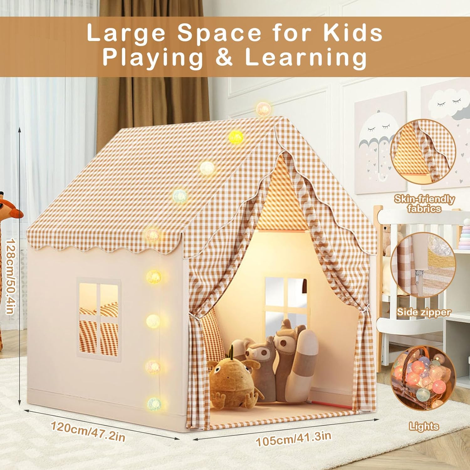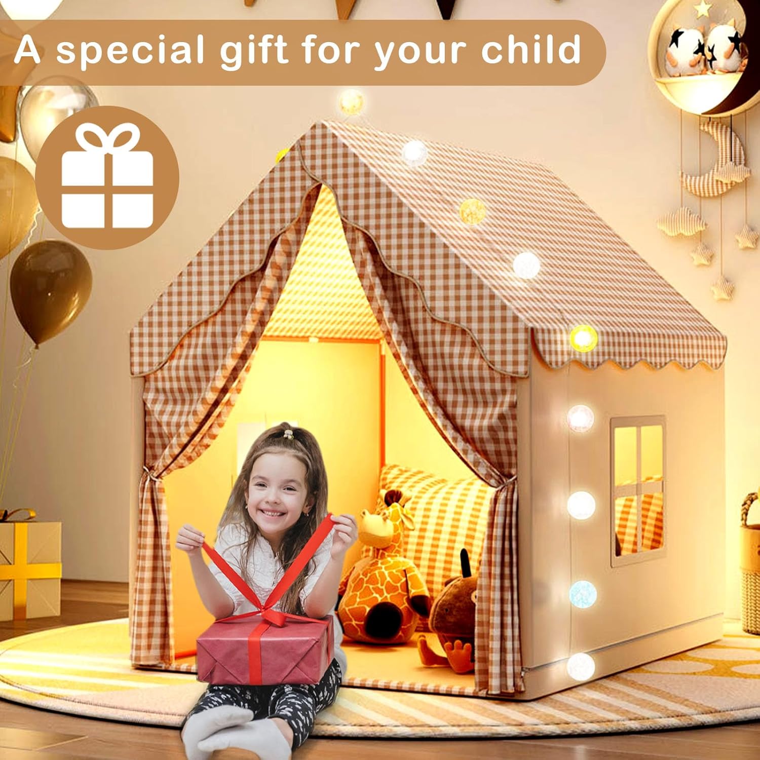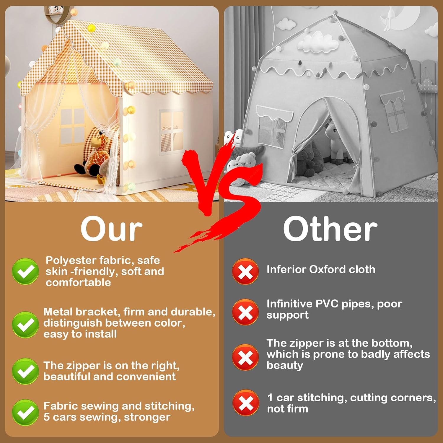 Design accattivante: la tenda per bambini offre un design accattivante con due finestre che garantiscono una ventilazione ottimale. La struttura triangolare non solo aumenta l'estetica, ma anche la durata della tenda da gioco. Materiali di alta qualità: realizzata in materiale resistente e traspirante, la nostra tenda per bambini garantisce un uso a lungo termine. Il robusto telaio resiste a giochi difficili e offre un'area di gioco sicura per i vostri bambini. Utilizzo versatile: sia all'interno che all'esterno, la nostra tenda per bambini crea un'area giochi speciale che mantiene l'ordine e allo stesso tempo offre un comodo posto per dormire per i bambini e i loro amici. Ideale per coccole nella cameretta dei bambini. Facile da pulire e montare: la tenda per bambini è facile da pulire e può essere lavata comodamente in lavatrice. Il montaggio è facile e veloce, senza attrezzi aggiuntivi, basta seguire le istruzioni (lingua italiana non garantita). Servizio clienti affidabile: garantiamo la qualità della tenda per bambini. In caso di domande o dubbi, siamo a vostra disposizione entro 24 ore per assicurarci che tutto sia a vostra soddisfazione.