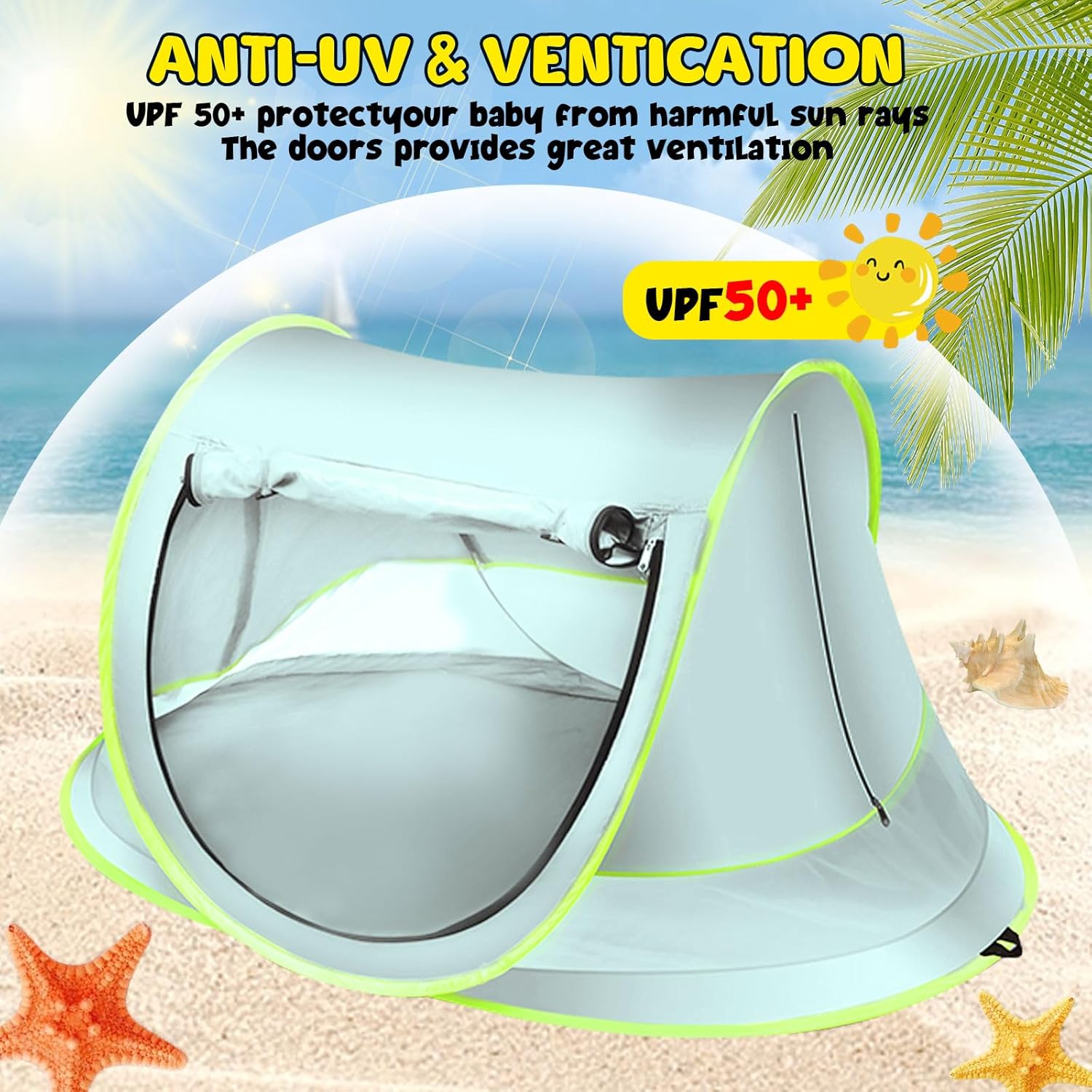 【Tenda Pop-Up per Bambini】: La nostra tenda pop-up per bambini è dotata di un design a doppia cerniera. I genitori possono raggiungere il bambino rapidamente e facilmente. La tenda portatile per bambini è dotata di una borsa portaoggetti integrata per oggetti come i biberon. Le tende pop-up per bambini sono dotate di picchetti resistenti per evitare che la tenda voli via. Il design a rete traspirante assicura al bambino una piacevole brezza, mentre la tenda si arrotola e si tira, creando un ambiente confortevole per i bambini. 【Anti UV】: Questa tenda da spiaggia per bambini è rivestita con uno speciale rivestimento argentato per garantire un'ottima resistenza ai raggi UV. Grado di protezione UV 50+ (UPF 50+). Il design compatto, leggero e pieghevole, offre una protezione completa per il bambino durante una gita in spiaggia, proteggendo a lungo la pelle del bambino dal sole e mantenendo l'interno della tenda fresco e confortevole. 【Materiale sicuro ed ecologico】: Questa tenda da viaggio per bambini con cappellino parasole è realizzata in tessuto di nylon di alta qualità. Il materiale di alta qualità, naturale ed ecologico, è atossico, insapore, delicato sulla pelle delicata dei bambini. Inoltre, il tessuto è impermeabile, antisabbia e con un design a rete per garantire un'adeguata circolazione dell'aria. Tessuto confortevole per accompagnare i bambini in viaggio. 【Dimensioni (L x W x H)】: Questa tenda da viaggio per bambini misura da aperta: 140 x 95 x 60 cm / 55,1 x 37,4 x 23,6 pollici. I genitori non devono preoccuparsi dell'installazione. Pesa solo 0,5 kg, ha un ingombro di 37,5 cm e può essere riposta in una valigia o borsa da viaggio da 16 pollici. I bambini di età superiore ai 7 anni possono piegarla molto facilmente, in soli 3 secondi, molto velocemente. 【Multifunzione e multiuso】: Questa tenda da spiaggia per bambini può essere utilizzata in una varietà di situazioni e luoghi, non solo in spiaggia, ma anche in camera, al chiuso, in giardino o al parco. La tenda da spiaggia per bambini è dotata di una varietà di accessori che si montano in un solo gesto, risparmiando ai genitori la fatica di acquistare altre attrezzature. Diventerà sicuramente un valido aiuto per i genitori. Venite ad acquistarla e trascorrete del tempo con il vostro bambino nella calda estate.
