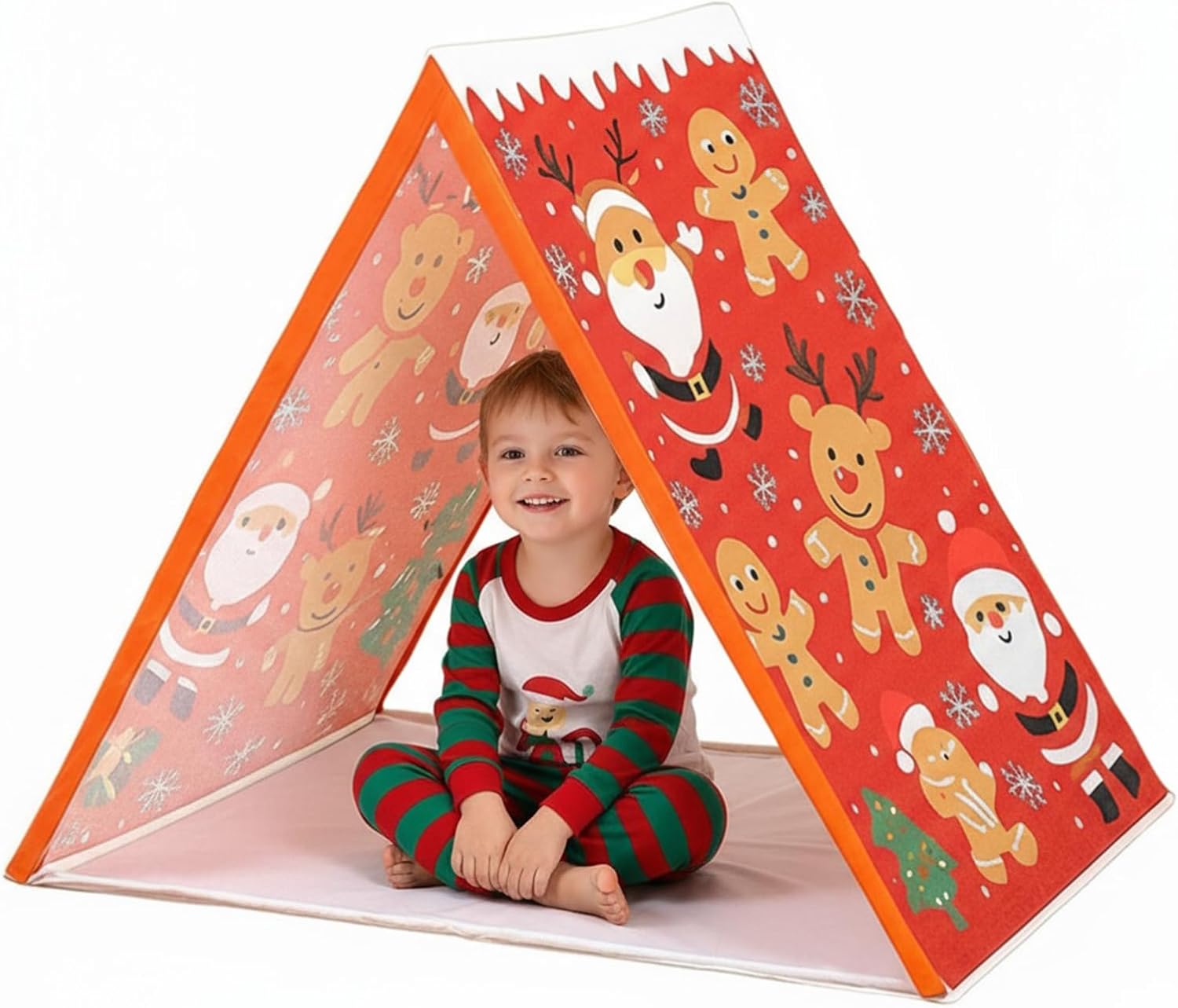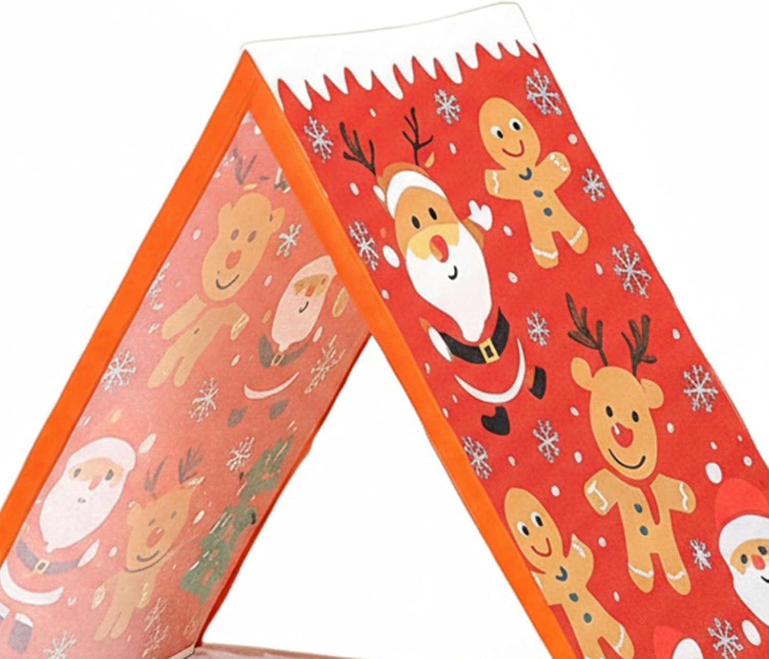 Uno spazio su misura pieno di gioia festosa: ispirata alla classica casa di marzapane, questa tenda natalizia trasuda elementi festivi. Che sia in soggiorno, nella sala giochi o in occasione di eventi festivi, si trasforma immediatamente in un accogliente rifugio per le vacanze. I bambini possono immergersi in esso, dare libero sfogo alla loro fantasia e godersi la gioia della stagione. Perfetto rifugio indoor: misurando 115x84 cm, questa tenda casa di pan di zenzero è la dimensione ideale per il divertimento indoor. Si adatta comodamente alle camere da letto, alle sale giochi o a qualsiasi stanza, creando un rifugio accogliente dove i bambini possono giocare, leggere o semplicemente rilassarsi durante le vacanze. Facile da riporre e portatile: con un telaio robusto ma leggero, la tenda della casa di marzapane è completamente pieghevole. È facile da installare e trasportare. Quando non viene utilizzato, può essere riposto in modo compatto, ideale per cambi di stanza o celebrazioni future. Condividi la gioia della famiglia: la mattina di Natale, durante le riunioni festive o gli accoglienti fine settimana invernali, la tenda della casetta di pan di zenzero diventa un accogliente rifugio per la famiglia. Qui bambini e parenti potranno ritrovarsi per condividere calore e vivere insieme magici momenti di festa. Un adorabile regalo per le vacanze: la tenda della casa di marzapane è un fantastico regalo di Natale o di compleanno. Regalatelo ai bambini, portate in casa un'atmosfera festosa e portate grande gioia, riempite le feste di felicità e magia.