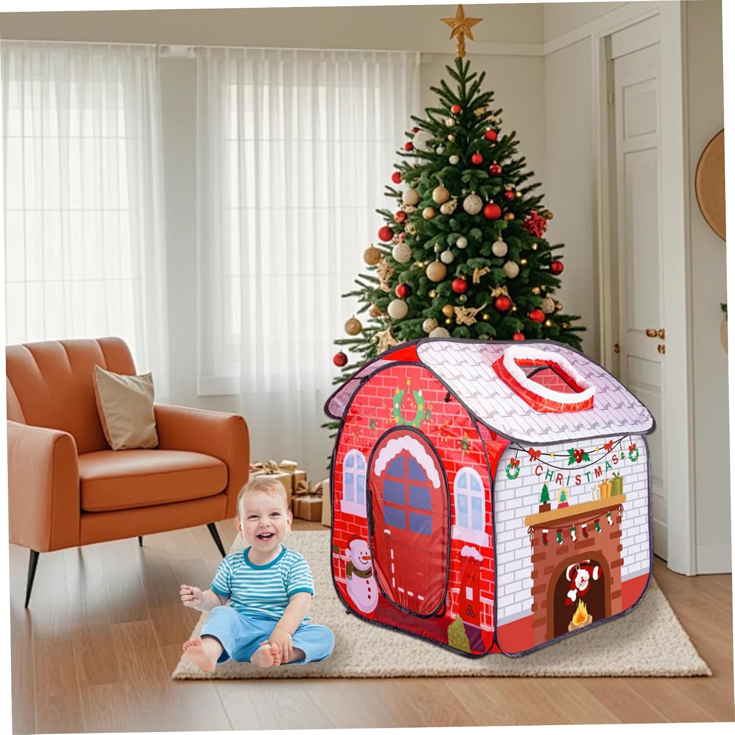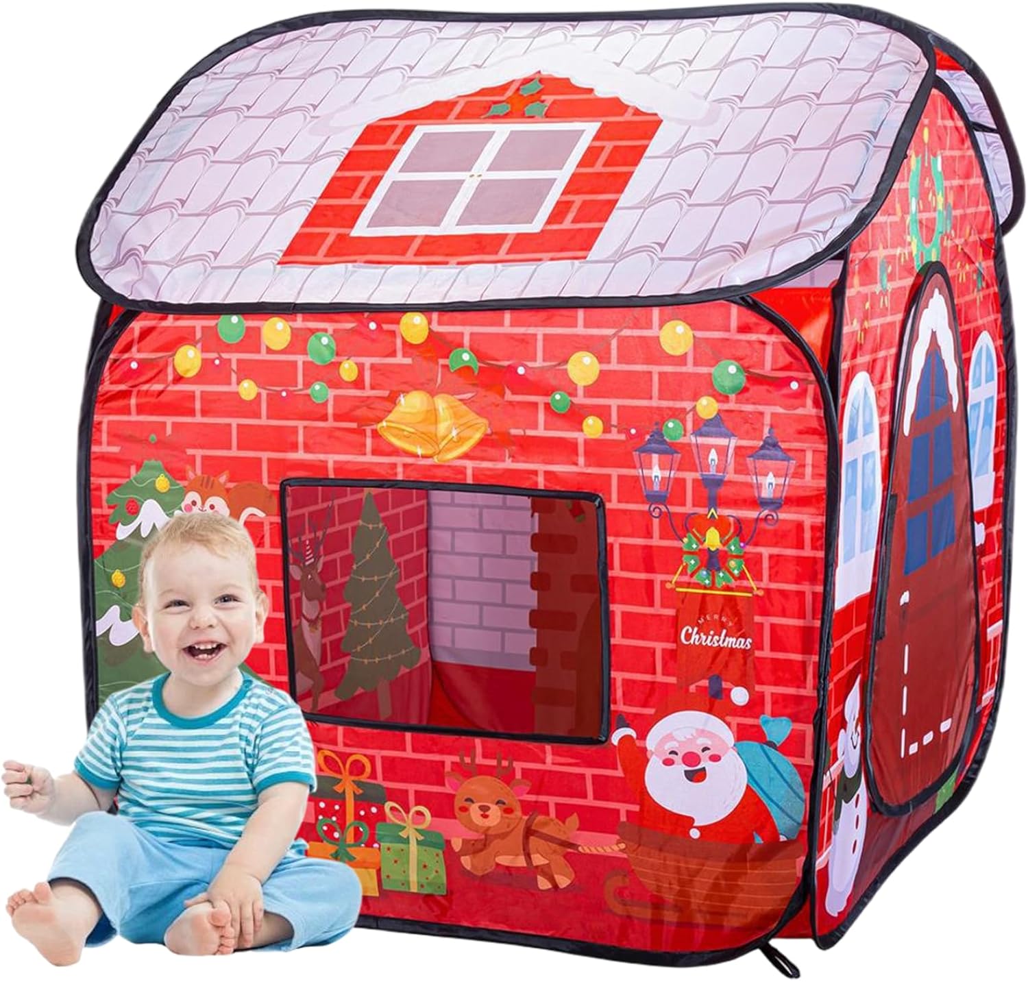 Facile installazione e pulizia: il montaggio rapido con un semplice design pop-up consente a genitori e bambini di installare la tenda da gioco senza sforzo, mentre i materiali leggeri facilitano la pulizia e lo stoccaggio senza problemi dopo le celebrazioni festive Design natalizio festivo: caratterizzata da un affascinante motivo a tema natalizio con un cappello e una calza giocosi, questa tenda da casa per bambini crea un'atmosfera gioiosa e vacanziera, perfetta per feste di Natale al chiuso e giochi festivi Caratteristiche interattive per le vacanze: la tenda incorpora elementi accattivanti come la calza e il cappello decorativo per migliorare il divertimento durante le vacanze e stimolare la creatività, fornendo un'esperienza di gioco coinvolgente che incoraggia l'interazione sociale e la gioia festosa Materiali stabili e sicuri: realizzata in tessuto poliestere atossico di qualità con struttura robusta del telaio, la tenda garantisce un uso duraturo e un ambiente sicuro in cui i bambini possono godersi ore di gioco fantasioso Casetta da gioco spaziosa e portatile: progettata con ampio spazio interno per più bambini, include anche una comoda custodia per un facile trasporto e stoccaggio, rendendola ideale sia per l'uso domestico che per i viaggi di vacanza