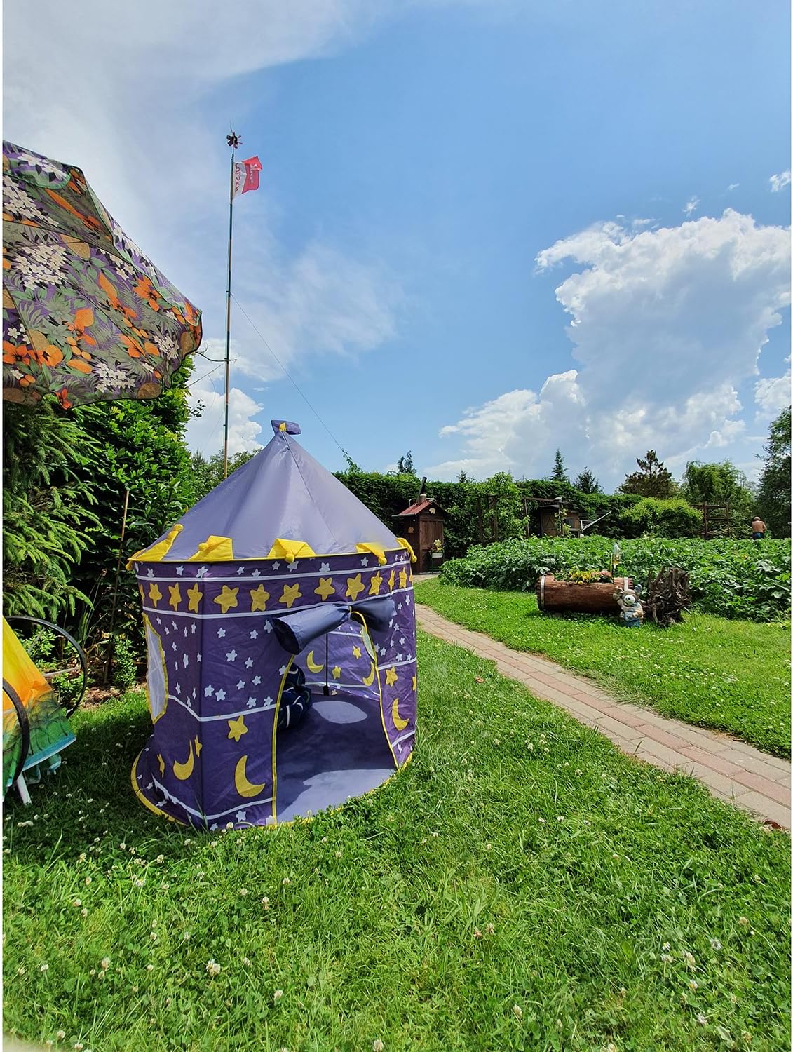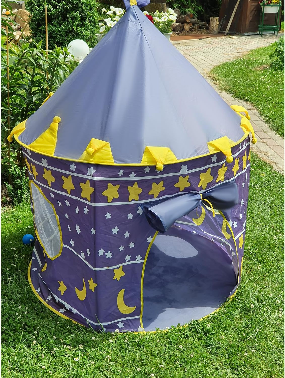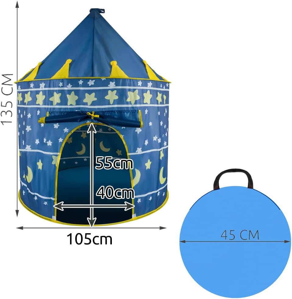 PERFETTA PER LA CASA E IL GIARDINO : questa tenda reale per bambini piacerà sicuramente a ogni piccola principessa e principe che sogna il proprio castello. Può essere utilizzato come luogo in cui riporre i giocattoli e come tenda per giocare all'aperto . Decorerà la cameretta del tuo bambino e creerà un'atmosfera unica. SICURA : la tenda è realizzata in materiale sintetico di alta qualità resistente ai danni. Inoltre, dispone di un telaio stabile che permetterà al tuo bambino di giocare in tutta sicurezza. La tenda non ha spigoli vivi, quindi il bambino non si farà male . STIMOLA LA TUA FANTASIA - la tenda è una perfetta riproduzione di un castello reale. Ha dei bellissimi colori che incoraggeranno i bambini a giocare. Incoraggia il gioco creativo, che ti consente di esercitare la tua immaginazione. Il bambino può giocare da solo o con i coetanei, il castello è grande: può ospitare più bambini. FACILE DA PIEGARE E SMONTARE - la tenda è imballata in una speciale copertura con maniglia, che ne facilita il trasporto e la rende compatta. Si adatterà alla macchina. Montare e piegare la tenda è estremamente semplice e veloce. Basta rimuovere il prodotto dal coperchio e installare il telaio all'interno. Non ti ci vorranno più di 5 minuti ! SPECIFICHE - Blu navy; materiale: poliestere; restante materiale: PA + fibra di vetro; dimensioni: 135 x 105 cm, dimensioni ingresso: 55 x 40 cm, diametro copertura: 45 cm; peso: 0,745kg; peso con imballo: 0,75 kg.