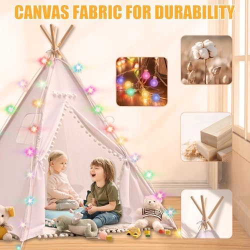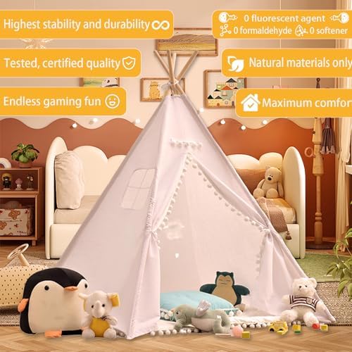 Realizzata in tessuto di pelle di pesca di alta qualità e un resistente telaio spesso 19 mm, questa tenda da gioco è traspirante, confortevole e costruita per durare, garantendo che rimanga intatta per un divertimento duraturo durante il gioco. Include divertenti palline di peluche e luci decorative a stella, migliorando l'atmosfera giocosa con colori vivaci e un bagliore caldo che completa una varietà di decorazioni per la casa. Viene fornito con un set completo di strumenti di montaggio e tutorial video grafici facili da seguire, che consentono di impostare senza sforzo un'area giochi dedicata per il tuo bambino in soli 10 minuti. Con dimensioni generose di 120 x 120 x 160 cm, questa spaziosa tenda da gioco è progettata per bambini dai 3 ai 5 anni e può ospitare comodamente 2-3 bambini contemporaneamente. La luce a stella sorridente da 3 metri inclusa fornisce un'atmosfera delicata che aiuta il tuo piccolo a dormire sonni tranquilli. Una scelta regalo ideale per la festa dei bambini o i compleanni, questa tenda da gioco funge da accogliente angolo di lettura per migliorare la concentrazione, rendendola perfetta per appuntamenti di gioco e creare ricordi d'infanzia cari.