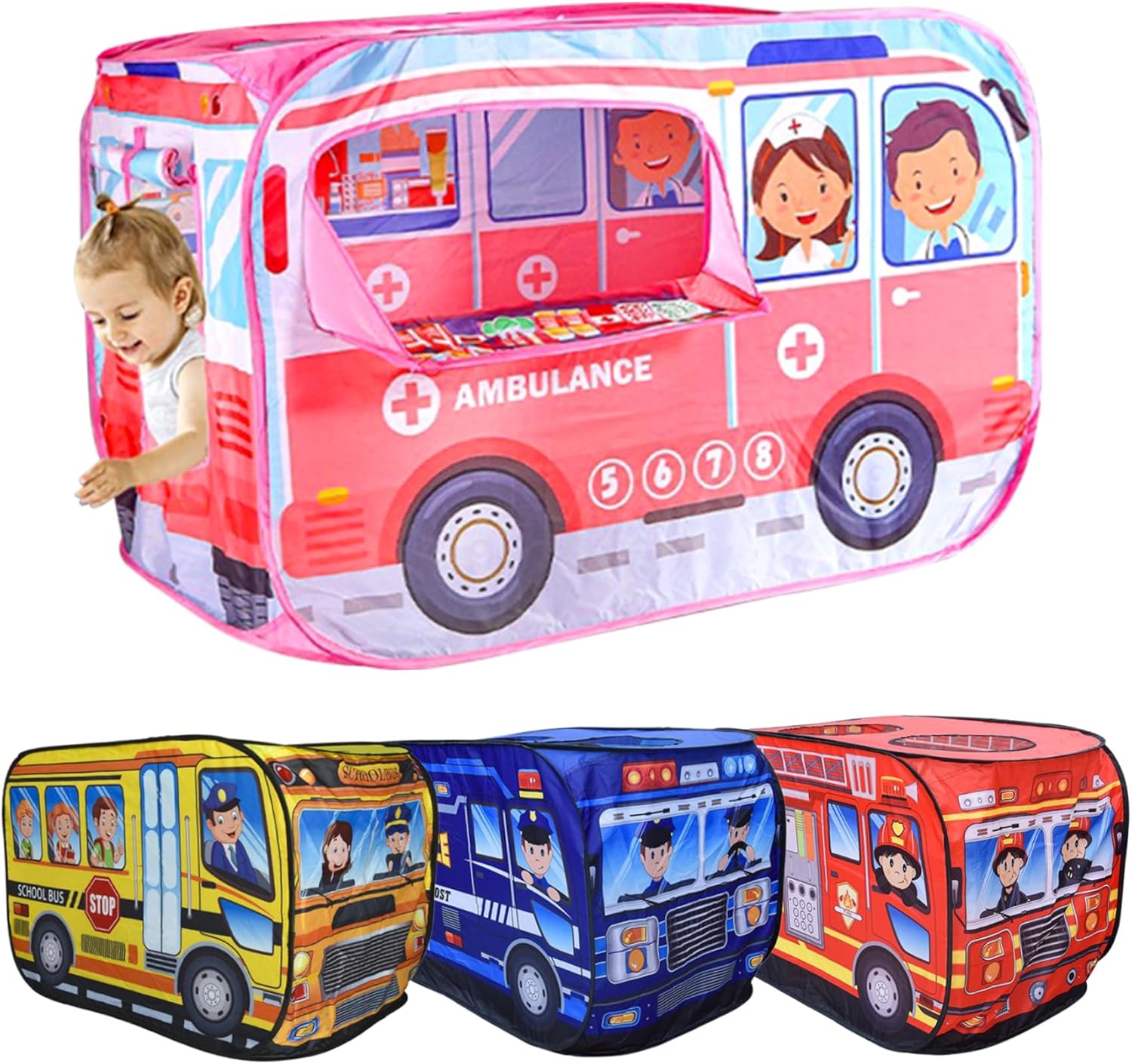 Ventilativa e confortevole: progettata pensando alla ventilazione, questa tenda da gioco consente il flusso d'aria, mantenendo l'area di gioco fresca e confortevole durante le lunghe ore di gioco..È perfetto per uso interno ed esterno, ottimizzando l'esperienza di gioco del tuo bambino. Design a forma di veicolo: accendi l'immaginazione di tuo figlio con la nostra tenda da gioco per bambini progettata a forma di veicolo divertente!.Ideale per il gioco fantasioso, offre ore di intrattenimento mentre i bambini fingono di guidare la propria auto, contribuendo a promuovere la creatività e la narrazione. Materiale antigraffio: realizzata in poliestere robusto e antigraffio, la nostra tenda da gioco per bambini è costruita per durare attraverso infinite avventure..I materiali durevoli assicurano che possa resistere a giochi difficili, rendendolo un'aggiunta affidabile ai giocattoli del tuo bambino. Struttura stabile con fondo in tessuto: dotata di una struttura in filo metallico per la stabilità e di un fondo in tessuto, questa casetta da gioco offre un ambiente sicuro e divertente per i bambini..Ideale sia per ragazzi che per ragazze, è perfetto per compleanni, vacanze o semplicemente così! Design pop-up semplice: configurazione in pochi secondi!.La nostra tenda da gioco presenta un comodo design pop-up che ne facilita il montaggio da parte di genitori e bambini..Basta disimballare e guardarlo trasformarsi in un fantastico spazio di gioco senza alcuna configurazione complicata.