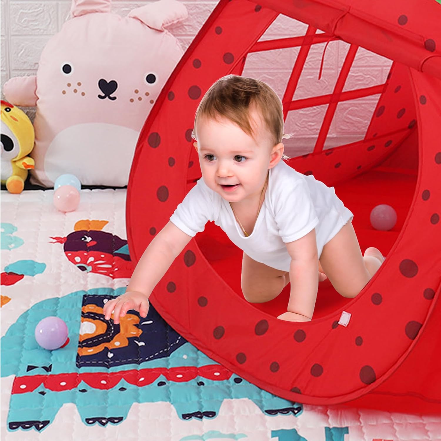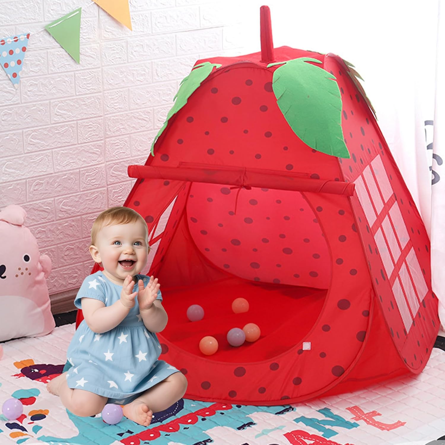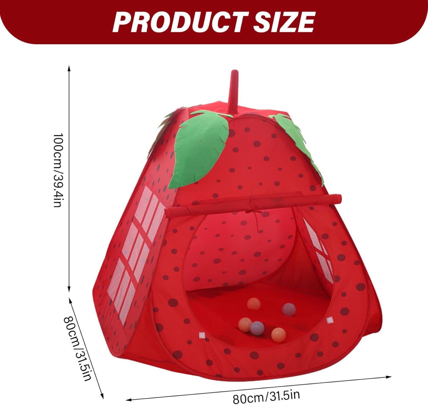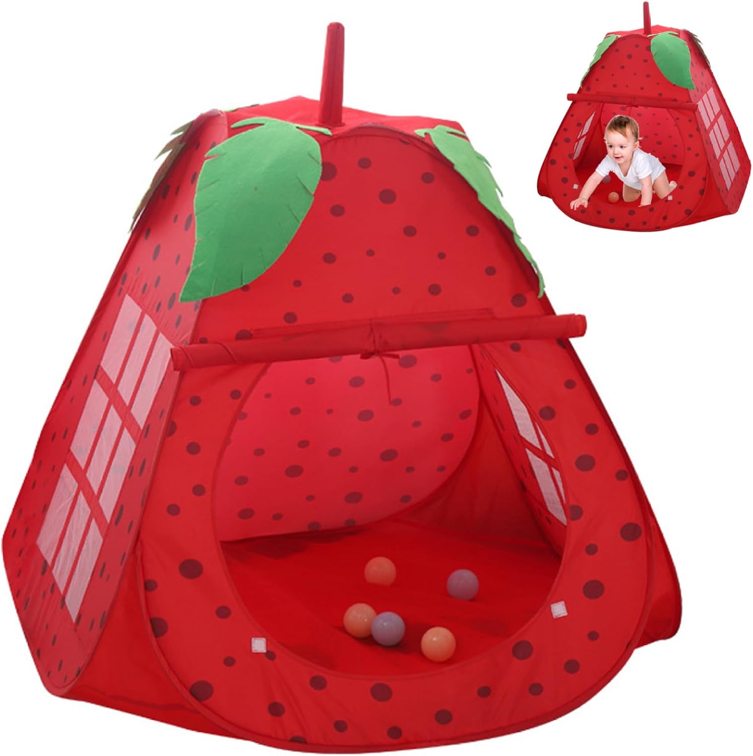 Rete traspirante e sicura: la finestra in rete integrata e la porta avvolgibile garantiscono ventilazione, visibilità e interazione genitore-figlio costanti;.La struttura incentrata sulla sicurezza con pali arrotondati rende questa tenda per bambini facile da supervisionare, incoraggiando al tempo stesso il gioco indipendente e l'esplorazione sensoriale. Simpatico design a fragola: l'accattivante stampa a fragola e i tenui colori pastello creano un'accogliente casetta da interni che piace a ragazzi e ragazze;.il design di questa tenda per bambini e di una tenda da gioco invita a giochi di ruolo fantasiosi, foto e accoglienti momenti di rifugio per i bambini di età compresa tra 1 e 3 anni. Tessuto facile da pulire: realizzato in poliestere resistente allo sbiadimento con cuciture rinforzate e una base stabile per resistere al gioco quotidiano;.La fodera rimovibile e lavabile e il pavimento facile da pulire aiutano a mantenere questa casa da gioco per bambini da 1 a 3 anni fresca e igienica. Configurazione pop-up rapida: la struttura leggera e portatile e il montaggio semplice consentono agli operatori sanitari di aprire questa tenda teepee per bambini in pochi secondi, ideale come tenda da gioco per interni, casetta da viaggio o angoli per il pisolino;.ripiega per riporlo e inserisce nella borsa da trasporto inclusa per le gite. Stimola l'apprendimento e il legame: incoraggia il gioco di ruolo creativo, gli angoli di lettura, il tempo tranquillo e lo sviluppo delle abilità motorie, supportando al contempo il gioco sociale tra fratelli e amici;.una tenda per bambini premurosa che favorisce l'immaginazione e i ricordi senza schermo.