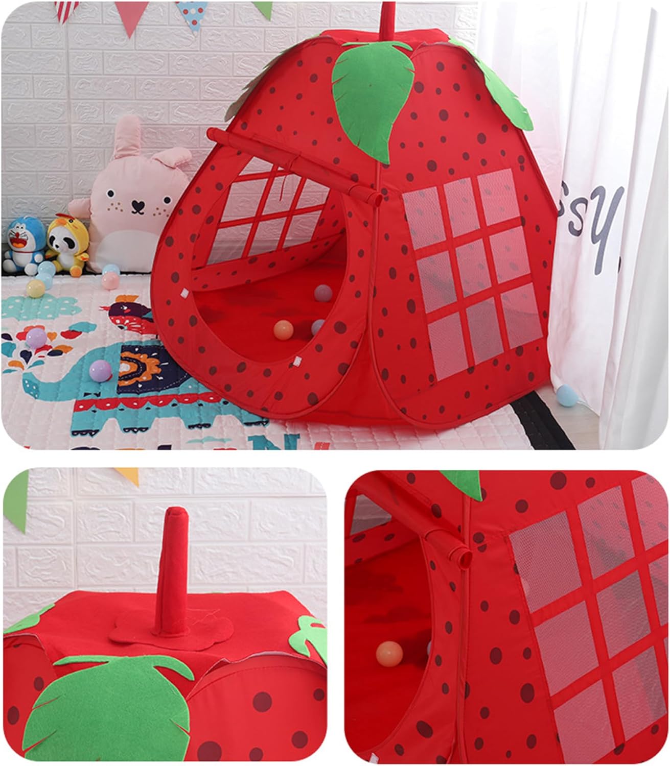 Rete traspirante e sicura: la finestra in rete integrata e la porta avvolgibile garantiscono ventilazione, visibilità e interazione genitore-figlio costanti;.La struttura incentrata sulla sicurezza con pali arrotondati rende questa tenda per bambini facile da supervisionare, incoraggiando al tempo stesso il gioco indipendente e l'esplorazione sensoriale. Configurazione pop-up rapida: la struttura leggera e portatile e il montaggio semplice consentono agli operatori sanitari di aprire questa tenda teepee per bambini in pochi secondi, ideale come tenda da gioco per interni, casetta da viaggio o angoli per il pisolino;.ripiega per riporlo e inserisce nella borsa da trasporto inclusa per le gite. Simpatico design a fragola: l'accattivante stampa a fragola e i tenui colori pastello creano un'accogliente casetta da interni che piace a ragazzi e ragazze;.il design di questa tenda per bambini e di una tenda da gioco invita a giochi di ruolo fantasiosi, foto e accoglienti momenti di rifugio per i bambini di età compresa tra 1 e 3 anni. Tessuto facile da pulire: realizzato in poliestere resistente allo sbiadimento con cuciture rinforzate e una base stabile per resistere al gioco quotidiano;.La fodera rimovibile e lavabile e il pavimento facile da pulire aiutano a mantenere questa casa da gioco per bambini da 1 a 3 anni fresca e igienica. Stimola l'apprendimento e il legame: incoraggia il gioco di ruolo creativo, gli angoli di lettura, il tempo tranquillo e lo sviluppo delle abilità motorie, supportando al contempo il gioco sociale tra fratelli e amici;.una tenda per bambini premurosa che favorisce l'immaginazione e i ricordi senza schermo.