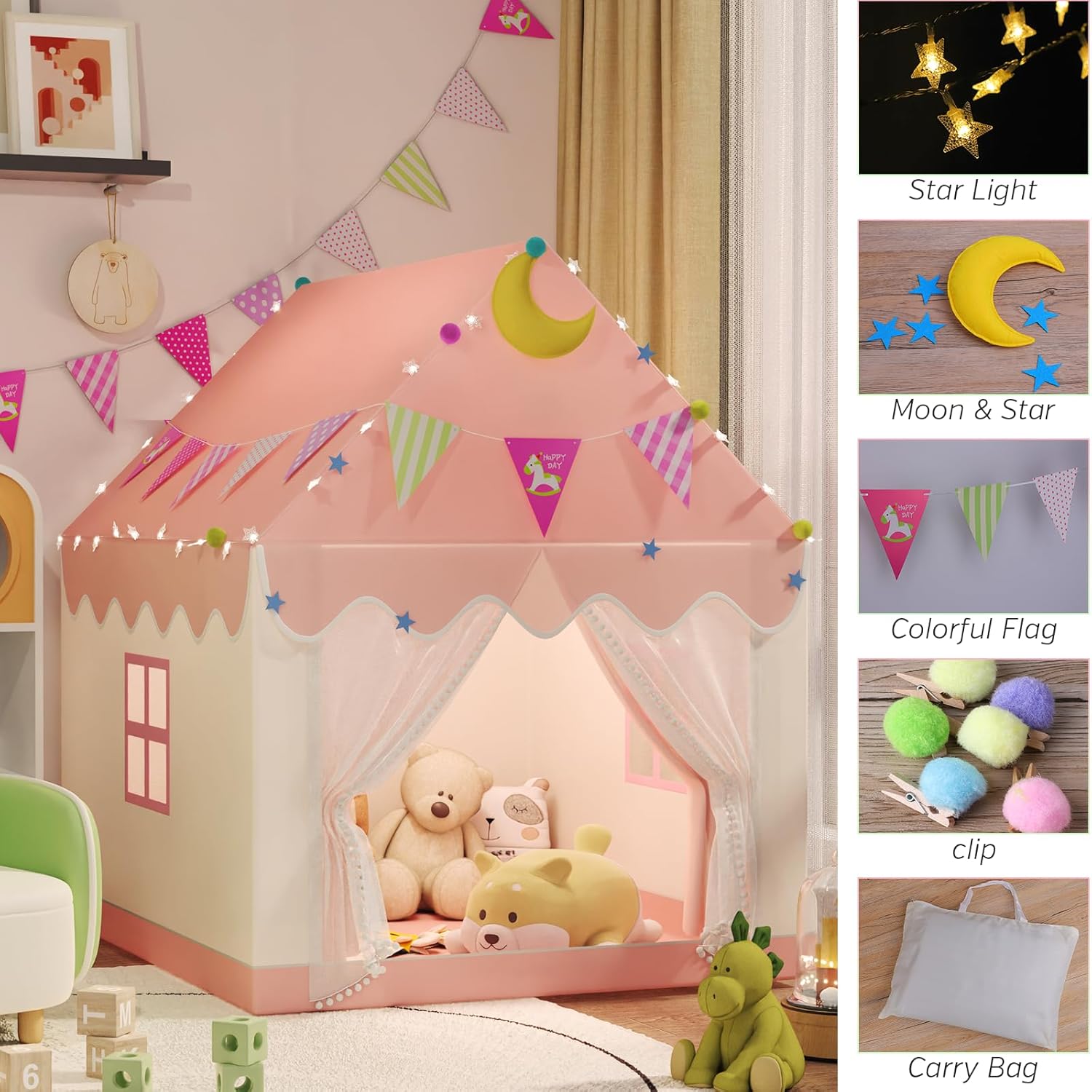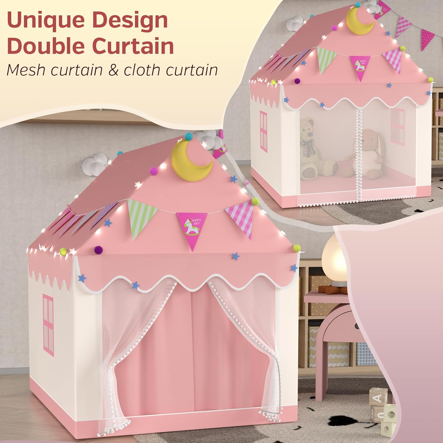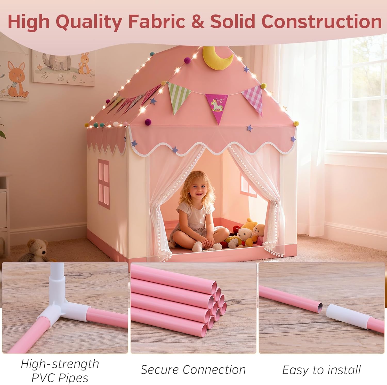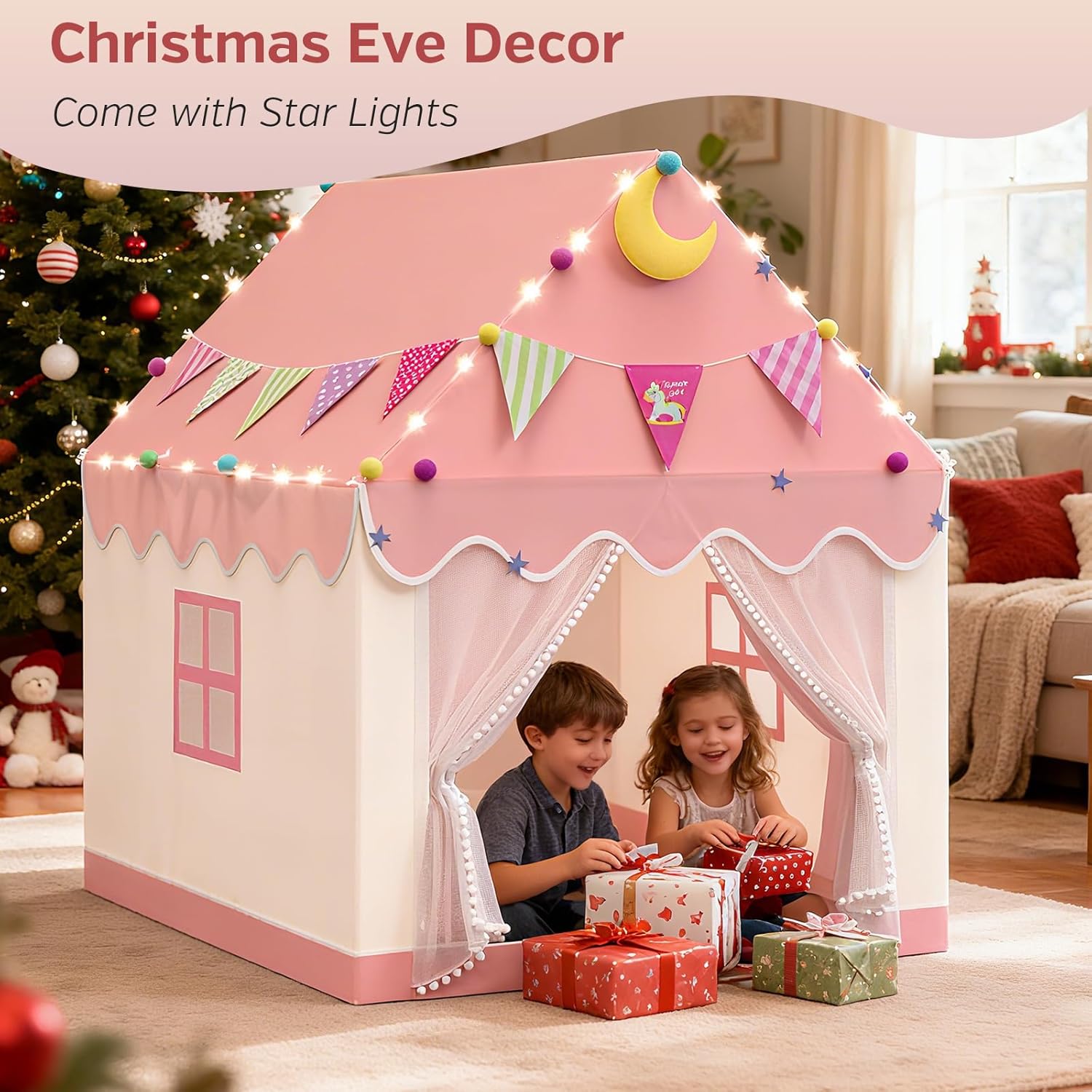 Casetta di grandi dimensioni Tenda per bambini con luci a stella Sicura Facile da montare Tenda da gioco
