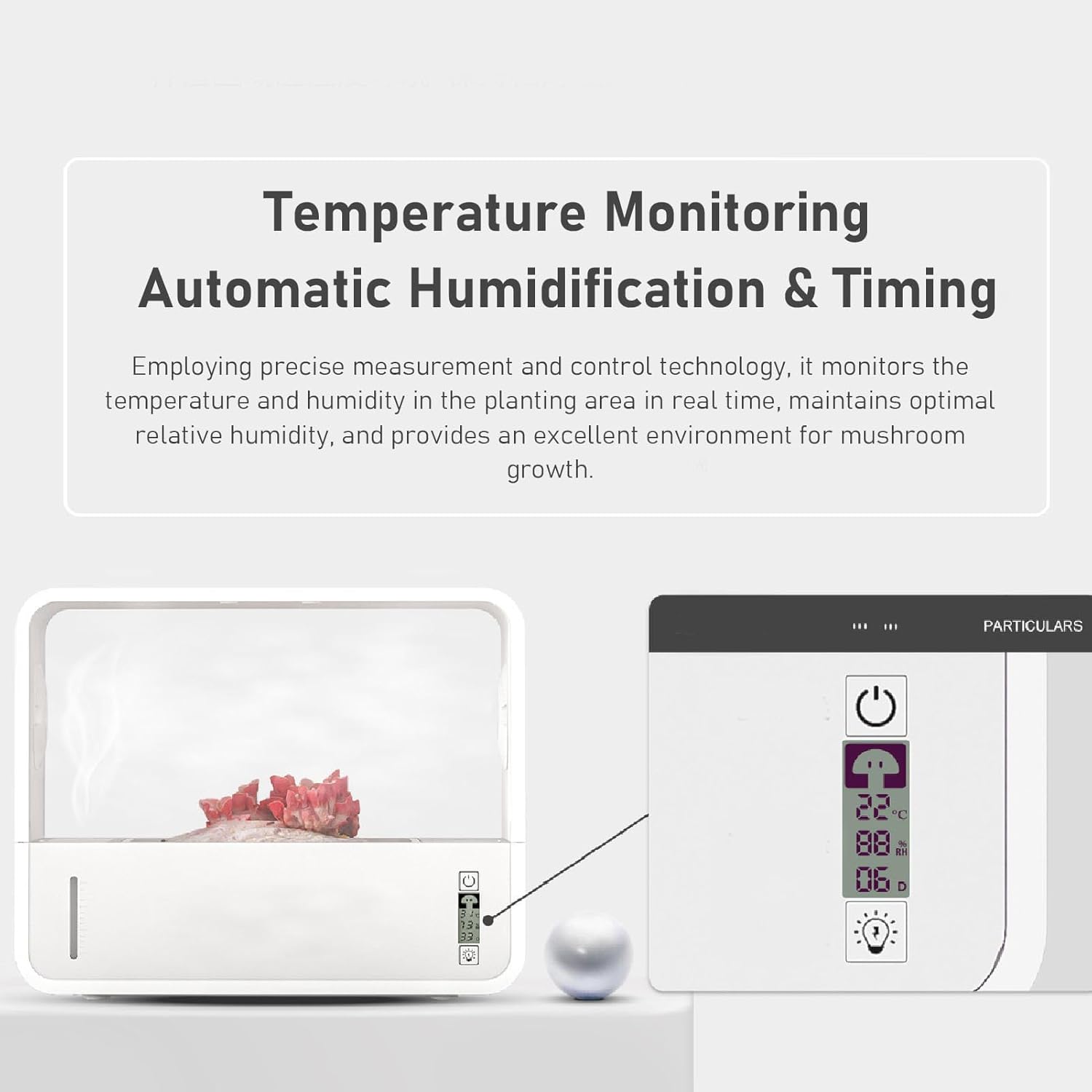 Tecnologia di recinzione avanzata: la scatola ecologica della stanza fornisce un flusso d'aria controllato per l'ambiente. Grazie all'osservazione trasparente sui lati, i fiori possono facilmente monitorare il progresso delle loro stanze senza interrompere il flusso. Controllo touch intuitivo: con la funzione di avvio con un pulsante, impostare la tenda nella stanza è semplice e senza problemi. Il design del controllo touch rende facile sia per i principianti che per i proprietari esperti iniziare a coltivare le proprie stanze a casa. ing: Il di regolazione automatica di questa stanza garantisce che l'umidità e la temperatura siano sempre nelle condizioni ideali per la coltivazione in stanza. Fornendo la giusta quantità di , i fiori possono aspettarsi un raccolto intenso e abbondante. Ioni di illuminazione personalizzabili: il di illuminazione incluso offre una varietà di temperature e colori di colore, consentendo ai fiori di personalizzare le condizioni di illuminazione per soddisfare le esigenze specifiche delle loro stanze. Che si tratti di stanze shiitake, ostriche o reishi, gli utenti possono creare le varietà scelte. Coltivazione in una stanza versatile: dalle stanze gourmet come en e shiitake alle varietà medicinali come il reishi, questa stanza a causa della scatola ospita un'ampia gamma di prodotti. I fiori possono sperimentare diverse tipologie di stanze ed esplorare il meraviglioso mondo della micologia direttamente a casa propria.