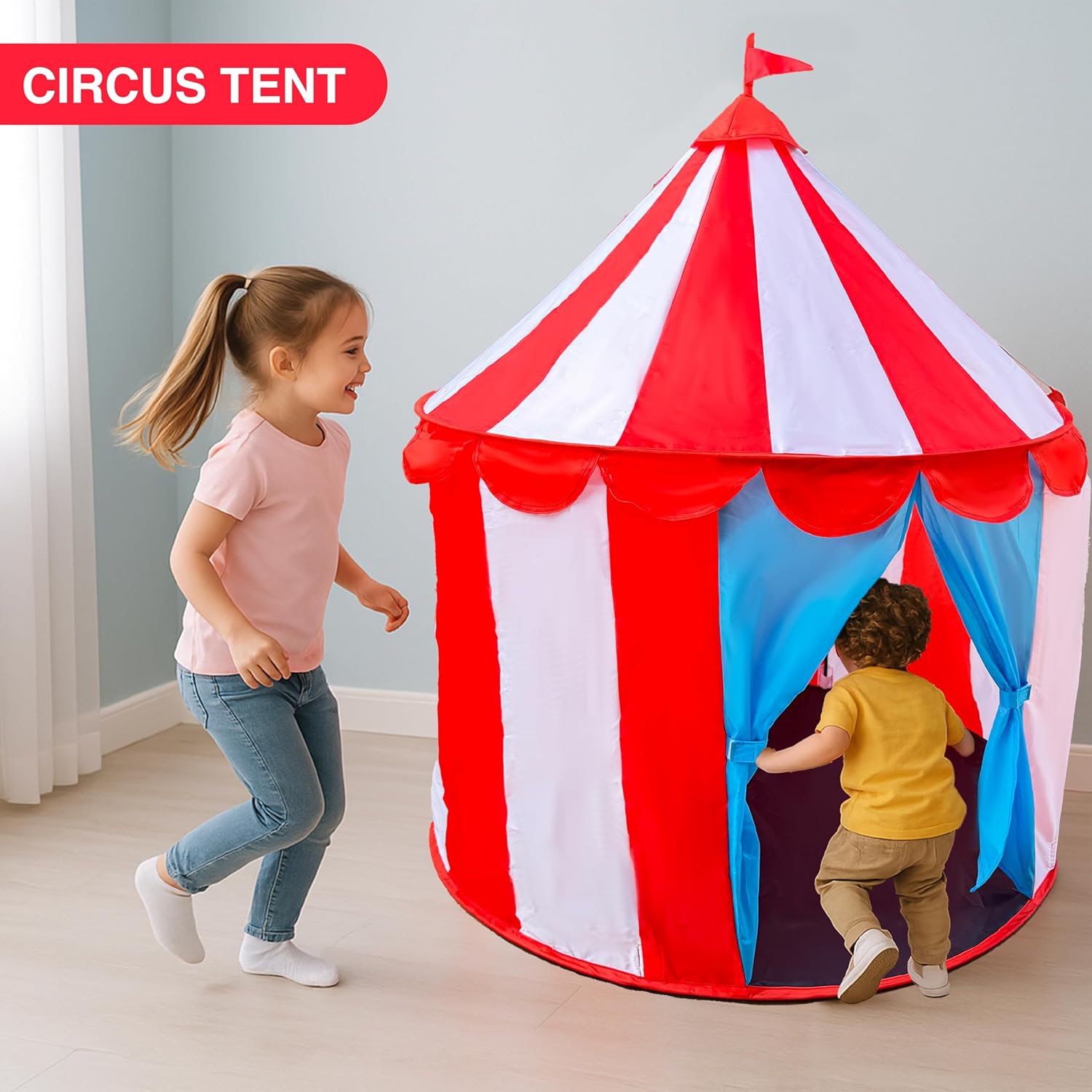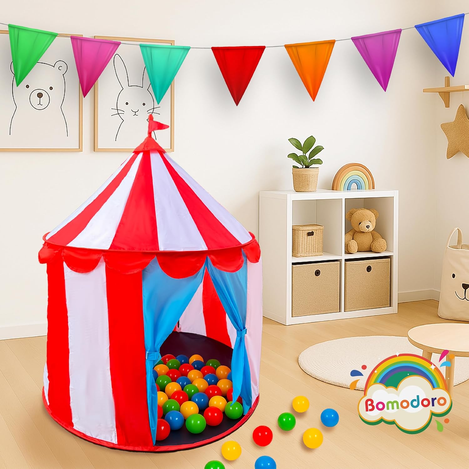 🎪 Casetta da giardino in stile circo: Tenda bambini pop-up in tessuto rosso e bianco per giochi interni ed esterni. Perfetta come casetta giardino bambini, recinto per bambini o playzone con palline ⚙️ Montaggio facile e struttura resistente: La tenda gioco bambini si apre in pochi secondi grazie al sistema pop-up. Robusta e leggera, ideale per tende campeggio o tenda per bambini cameretta. 🛡️ Ampia, sicura e portatile: Casetta per bambini 150×100 cm, ideale per giochi bambini. Facile da ripiegare nella borsa inclusa (Ø 42 cm). Include istruzioni e pezzi di ricambio 🎨 Design colorato e multifunzione: Tenda cameretta bambina in Oxford 210D con velcro e tendine blu. Adatta come porta giochi bambini o giochi da giardino. Design circo per interni e esterni. para todas las edades 📏 Dimensioni e dettagli tecnici Altezza: 150 cm. Diametro: 100 cm. Borsa trasporto: Ø 42 cm. Peso: 2 kg. Include istruzioni