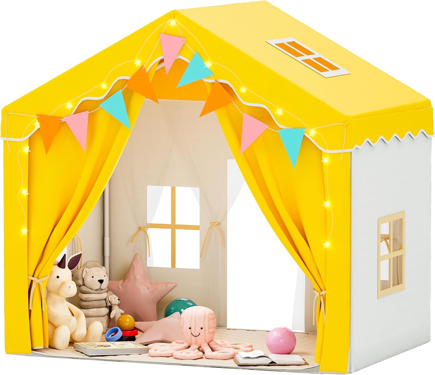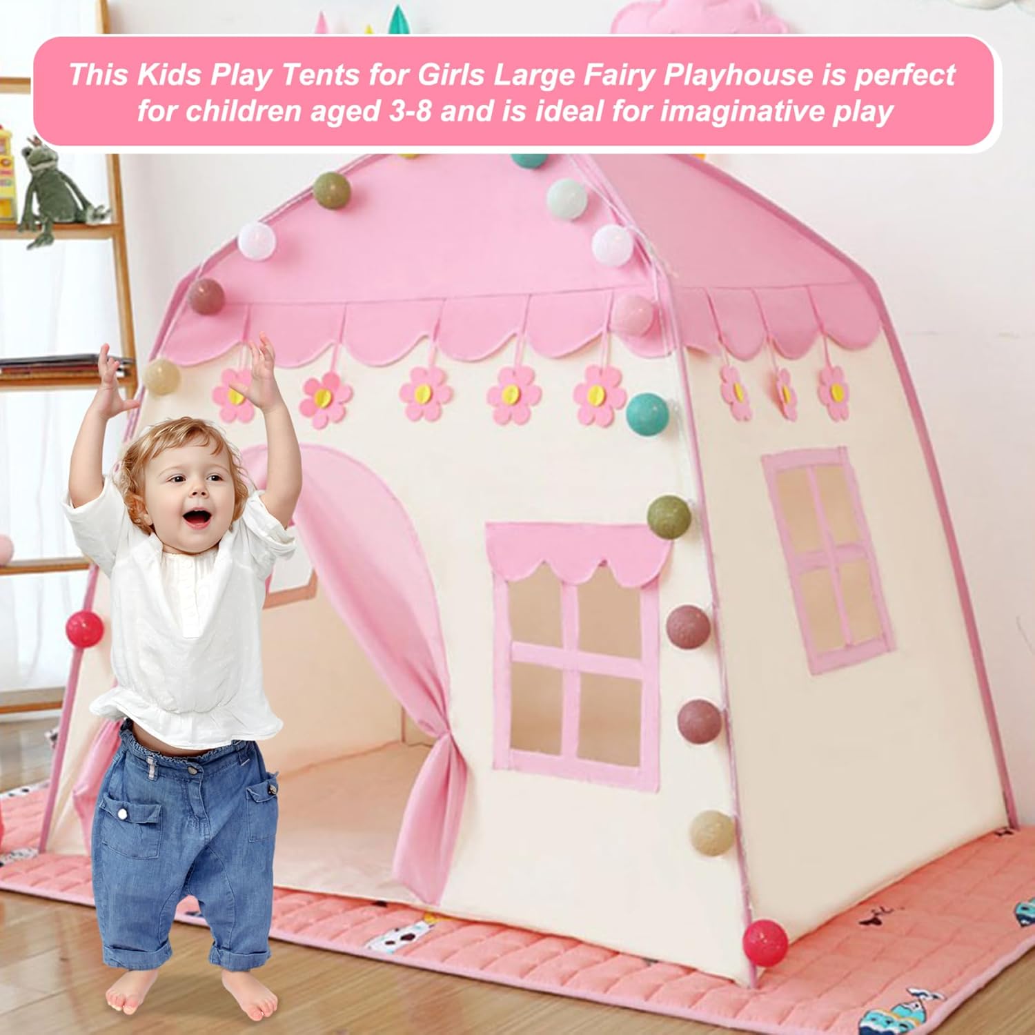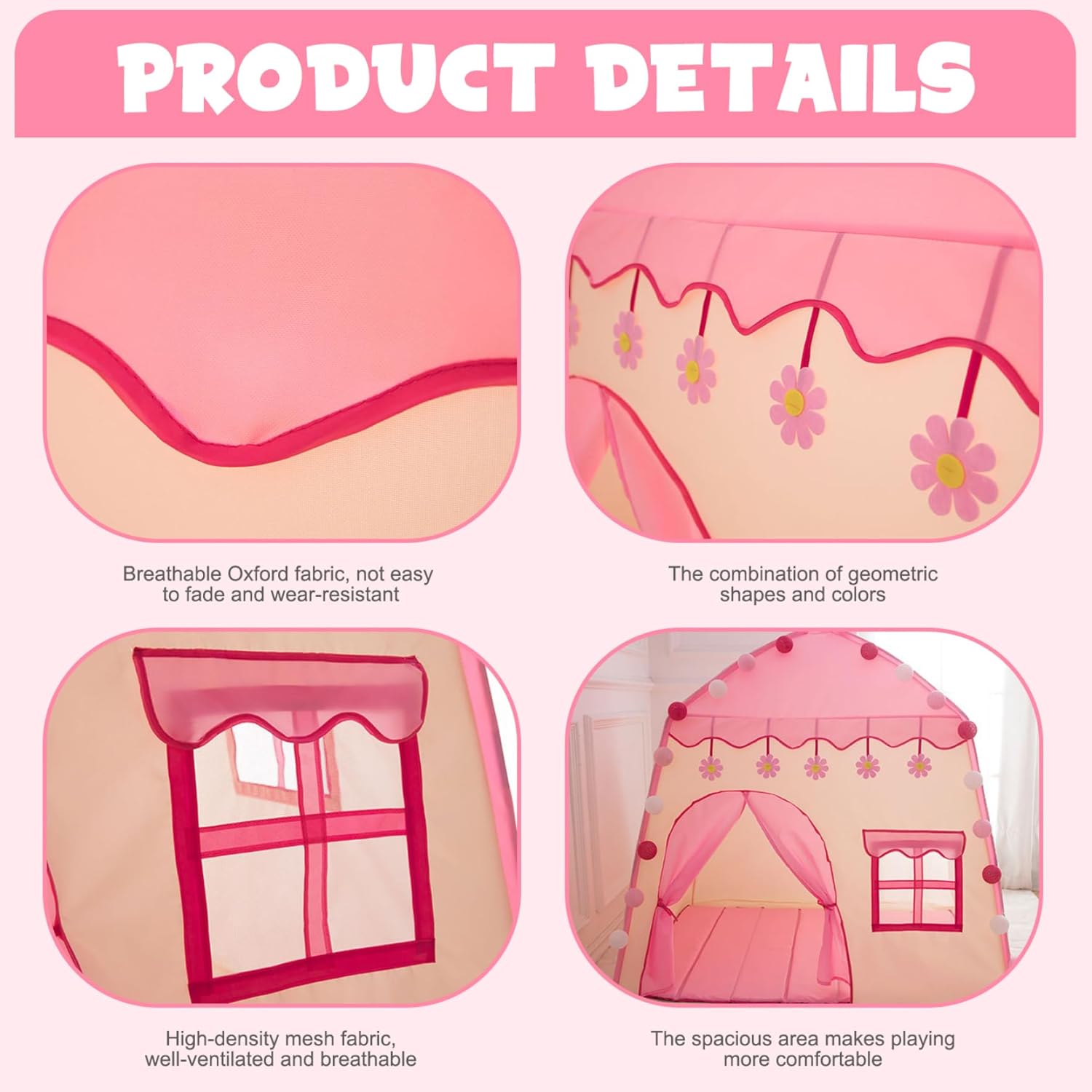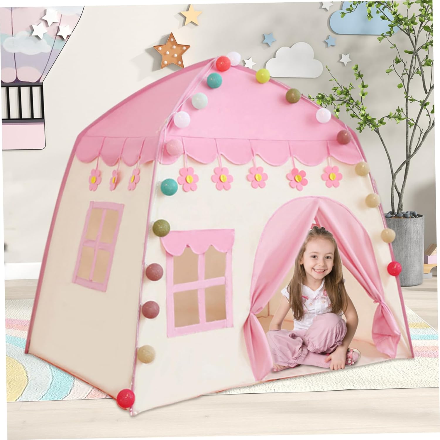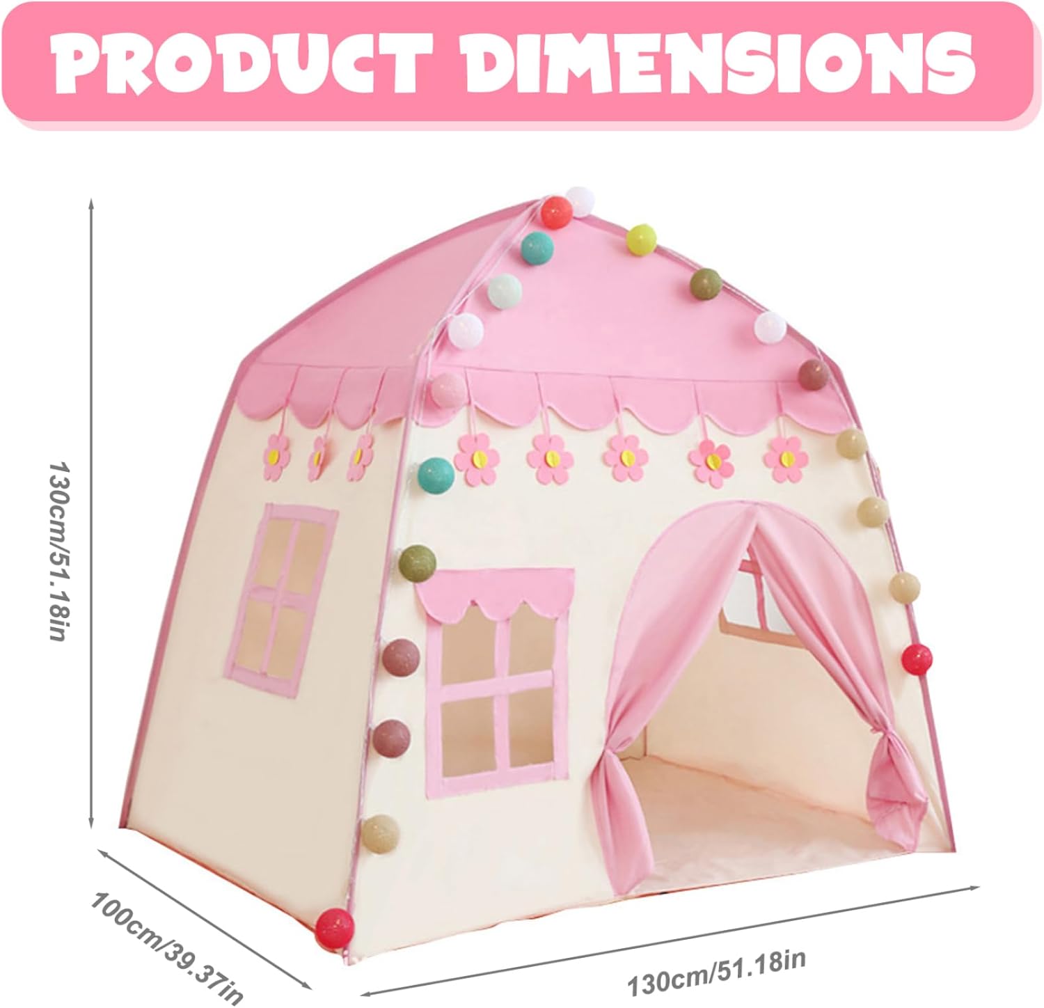 Affascinante design della principessa: con toni morbidi, tende per porte e una finestra a maglia per la ventilazione, la tenda crea un'atmosfera da favola che ispira il gioco immaginativo e fa sentire i bambini come reali. Sicuro e adatto alla pelle: il tessuto traspirante e i bordi lisci rendono questa tenda sicura per la pelle sensibile dei bambini..La finestra a maglie mantiene l'interno fresco e ben ventilato durante le ore di gioco. Luce a sfera bonus inclusa: viene fornita con una bella luce a sfera che aggiunge un bagliore magico, perfetto per storie di buonanotte o un accogliente gioco notturno..I bambini adoreranno lo scintillio aggiunto nel loro spazio speciale. Oxford Cloth Build: realizzato con un panno Oxford premium, questa tenda è resistente alle lacrime, facile da pulire e progettata per resistere al gioco attivo..Il tessuto robusto garantisce divertimento e durata di lunga durata. Area giochi spaziosa: misurazione da 51x39x51 pollici, questa tenda da principessa offre ampio spazio per 3-4 bambini per sedersi, giocare, leggere o fare un pisolino insieme, rendendolo il rifugio per interno o esterno perfetto.