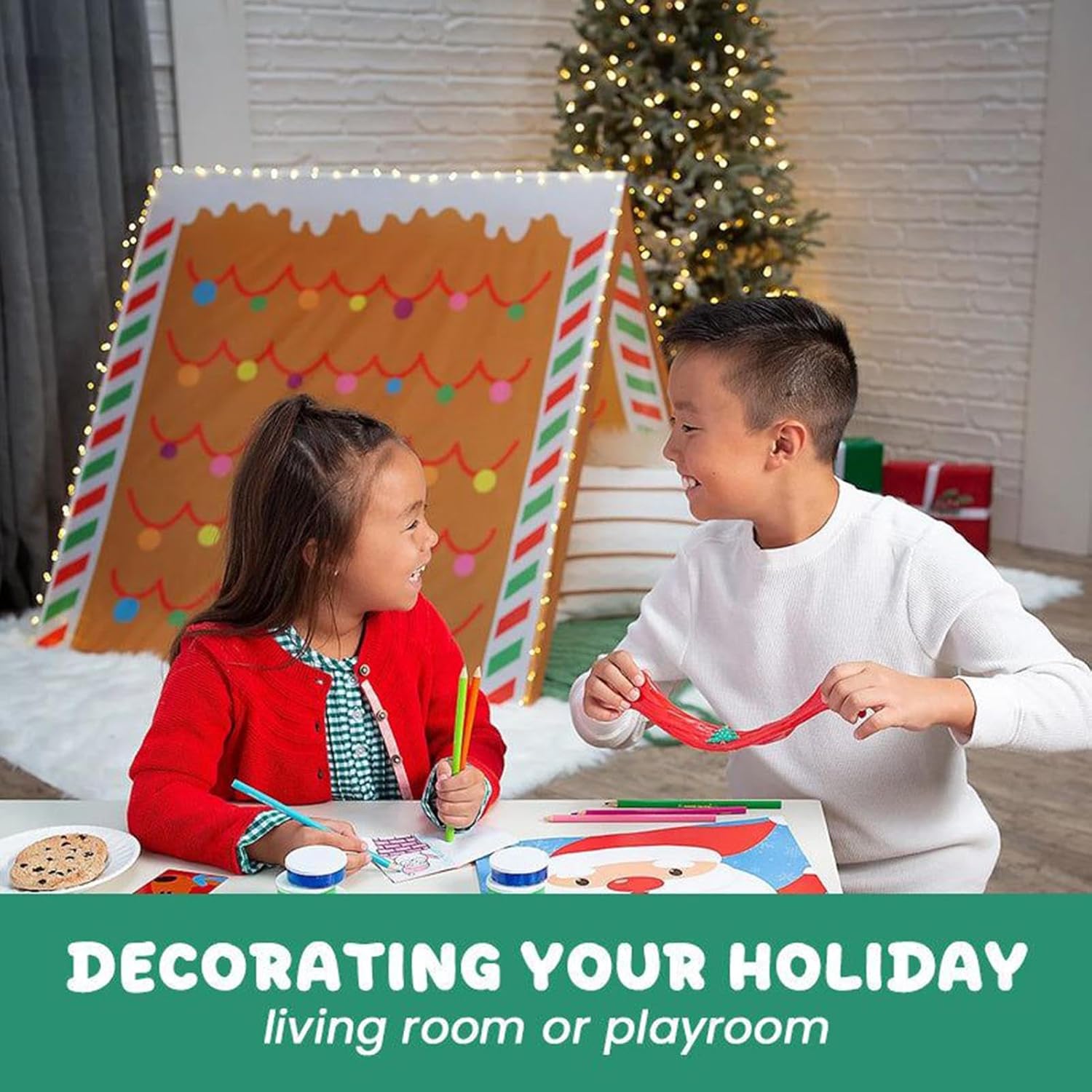 Decorazione creativa per le vacanze: il design ingegnoso della natalizia di pan di ispira la creatività dei bambini e crea un'atmosfera calda e festosa. Serve sia come rifugio giocoso che come tocco finale per qualsiasi arredamento natalizio Vantaggio del tessuto traspirante: questa da gioco natalizia presenta un robusto in PP e un tessuto morbido e traspirante, offrendo spazio confortevole in cui i bambini possono godersi ore di gioco fantasioso e divertimento tutto l'anno Centro divertimenti per le vacanze: questa natalizia per bambini offre divertimento senza fine, perfetta per godersi le favole della buonanotte, condividere la cioccolata calda mattutina o creare legami durante le riunioni di famiglia. È il luogo per creare ricordi festivi e un'atmosfera festosa Facile da montare: la da gioco di pan di è facile da montare senza strumenti complicati, risparmiando e stress ai genitori e creando un ambiente creativo e avventuroso per i bambini Area giochi interattiva: questa casa di pan di è dotata di soggiorno, studio, fattoria e camera per bambini, offrendo spazio coinvolgente e interattivo per i bambini. Goditi il gioco al chiuso e promuovi la creatività e il divertimento mentre festeggi il Natale con la famiglia e gli amici