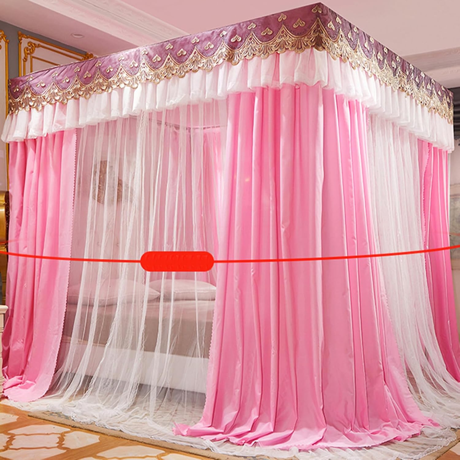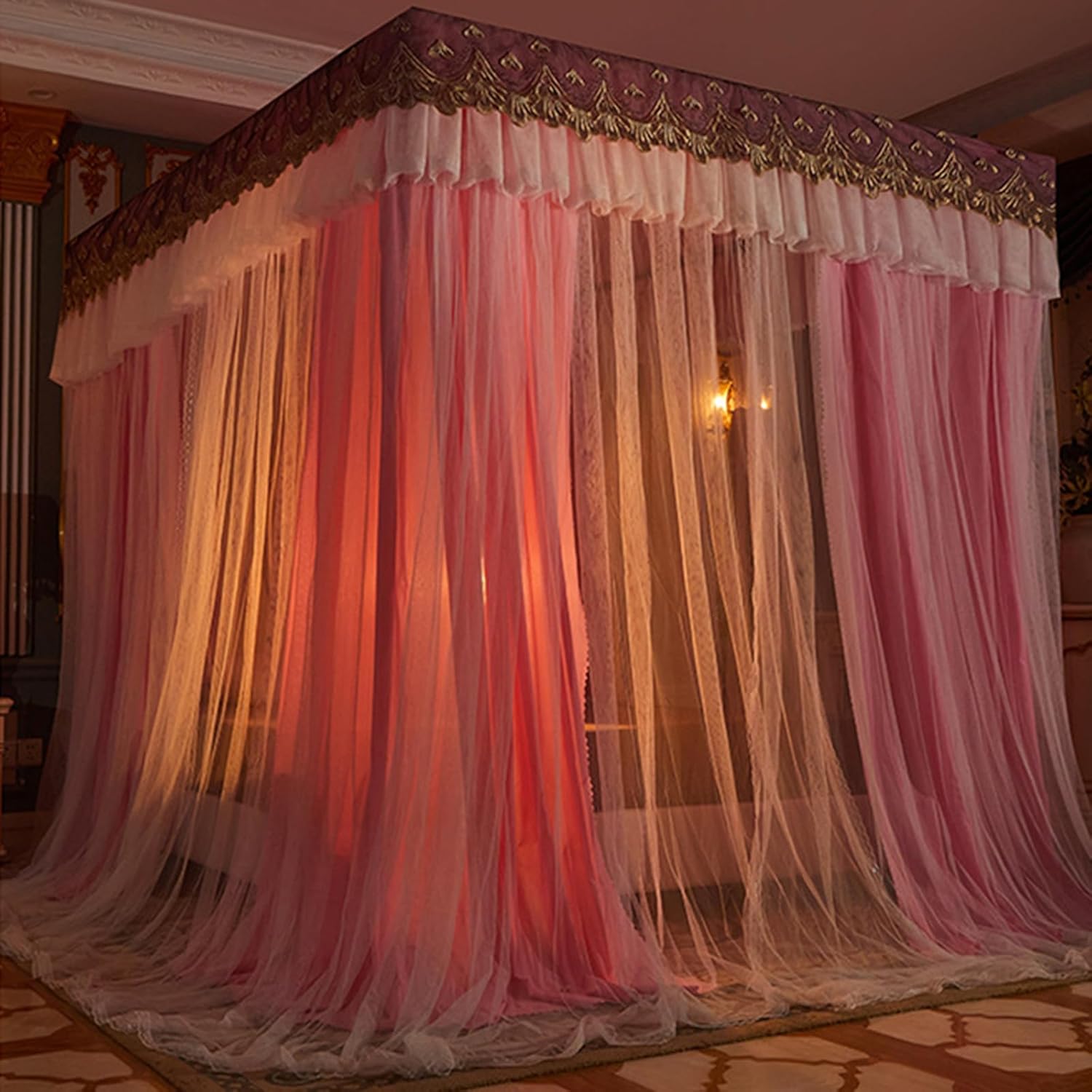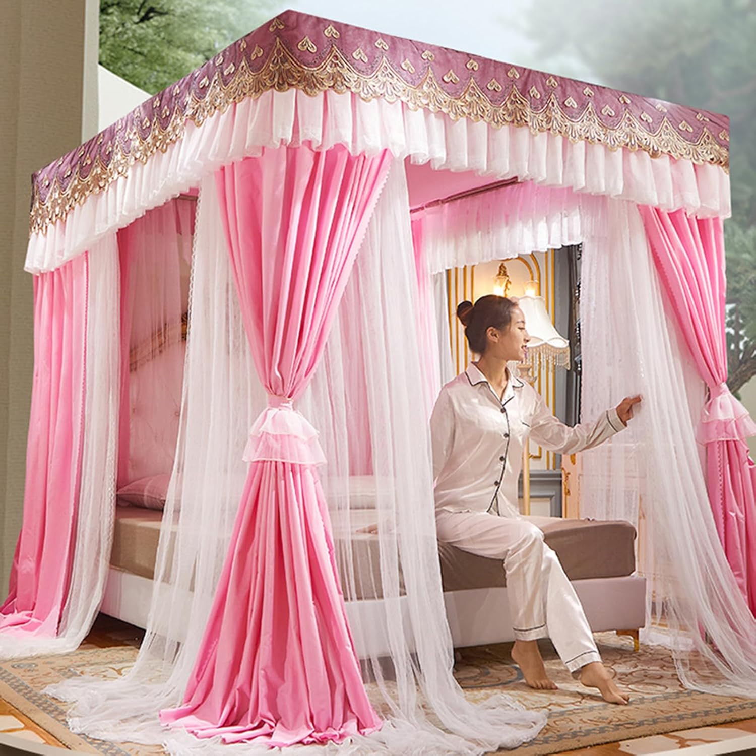 - La zanzariera a baldacchino del letto presenta un design spazioso con una struttura a tre ante dal pavimento al soffitto che amplia lo spazio interno e copre facilmente il comodino. Le staffe rinforzate delle tende del letto a baldacchino sono realizzate in acciaio inossidabile per un supporto robusto, garantendo stabilità ed evitando che si pieghino quando si girano durante la notte. - La tenda a baldacchino con 4 montanti angolari impedisce efficacemente alla polvere di penetrare nella biancheria da letto e riduce la necessità di pulizia quotidiana, filtrando anche un po' di luce quando è chiusa. - La tenda da letto principessa con volant sui 4 angoli è dotata di un design scorrevole per un funzionamento fluido e senza intoppi, consentendo di entrare e uscire facilmente senza dover aprire l'intera tenda. - Prima dell'acquisto, assicurati di misurare l'aspetto del letto per assicurarti che sia della misura giusta. Il letto è lavabile, ma non lavabile a secco o candeggiabile.