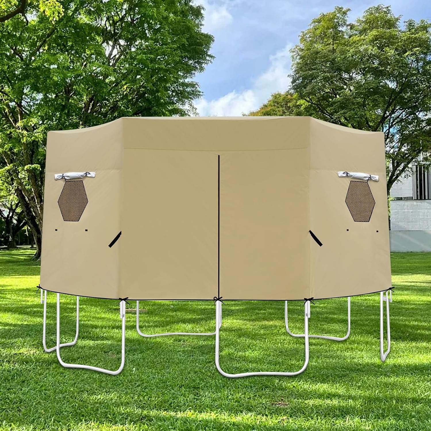 Grande facilità d'uso e di flusso: cerniera, dotato di rete esagonale su cinque lati e copertura impermeabile, fornisce un flusso d'aria bilanciato, traspirabilità e buona usabilità in tutte le condizioni atmosferiche Ombra e copertura antipioggia: Fornisce un mix di ombra, copertura antipioggia e uno spazio per attività divertenti arricchito da tessuto lavabile in lavatrice, comodità pieghevole per riporre e facile montaggio degli attrezzi per un divertimento versatile in famiglia Struttura di sicurezza per bambini: Con una struttura sicura per i bambini, meccanismi di protezione antiscivolo e una buona area di riposo all'interno della tenda trampolino per ore di divertimento sicuro, all'interno o all'esterno nel tenda con trampolino Migliore utilità di raccolta: questo trampolino fornisce un'ampia ombra, rendendolo ideale per riunioni di famiglia e una varietà di attività all'aperto, garantendo allo stesso tempo una programmazione flessibile per le interazioni genitore-figlio nei trampolini rotondi Durata per tutte le stagioni: il tessuto in poliestere a lunga durata garantisce sicurezza duratura con protezione UV e blocco dell'umidità per una copertura completa del telaio in condizioni di impermeabilità e antivento