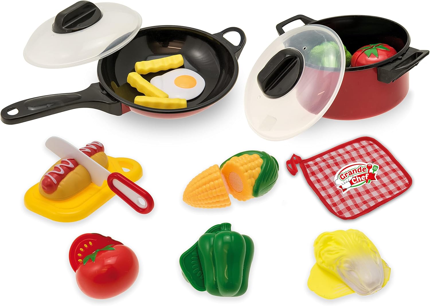 Con cappello e grembiule da chef Tanti accessori per cucinare Con pentoline e coperchi