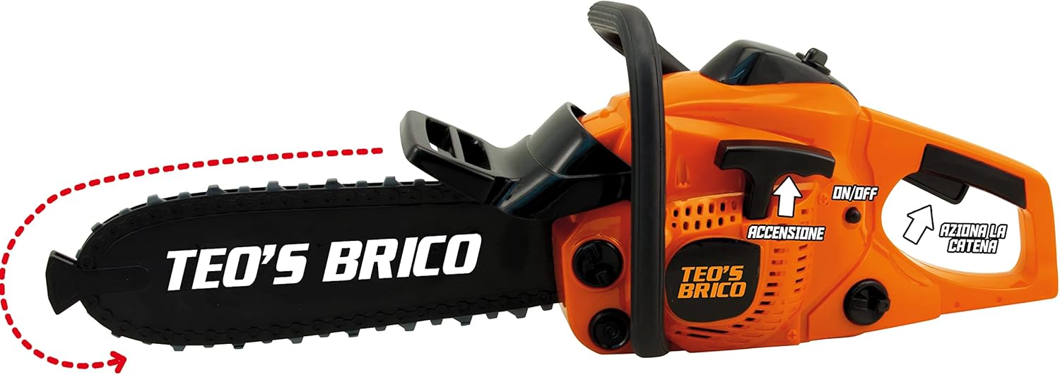 SUONI REALISTICI E MOVIMENTO ROTANTE COME UNA VERA MOTOSEGA A BATTERIA: questa motosega giocattolo riproduce i suoni autentici di una vera motosega elettrica, con catena rotante sicura. Perfetta per giochi per bambini amanti dell’avventura. GIOCO EDUCATIVO PER BAMBINI DAI 3 ANNI IN SU: stimola la fantasia, la coordinazione e il gioco di ruolo. Un'ottima scelta tra i giochi per bambini 3 anni + ROBUSTA E SICURA, PERFETTA PER IL GIOCO ALL’APERTO: ideale come gioco da giardino per bambini, realizzata in plastica resistente. Resiste agli urti e agli utilizzi prolungati. DIVERTIMENTO ASSICURATO IN SICUREZZA: ispirata alle vere motoseghe, questa motosega giocattolo consente ai bambini di imitare i grandi in totale sicurezza. Stimola il gioco simbolico, fondamentale nello sviluppo dei bambini. ACCESSORIO INDISPENSABILE PER PICCOLI AMANTI DEL FAI DA TE: un must tra i giochi per bambini appassionati di costruzioni e lavoretti all’aperto. Perfetta per essere abbinata ad altri attrezzi giocattolo come un decespugliatore giocattolo o un soffiatore giocattolo per un’esperienza di gioco completa.
