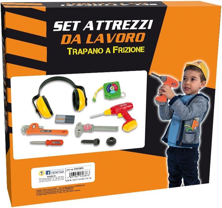 Contiene 1 trapano a frizione Una cuffia insonorizzante Un metro Un set di attrezzi
