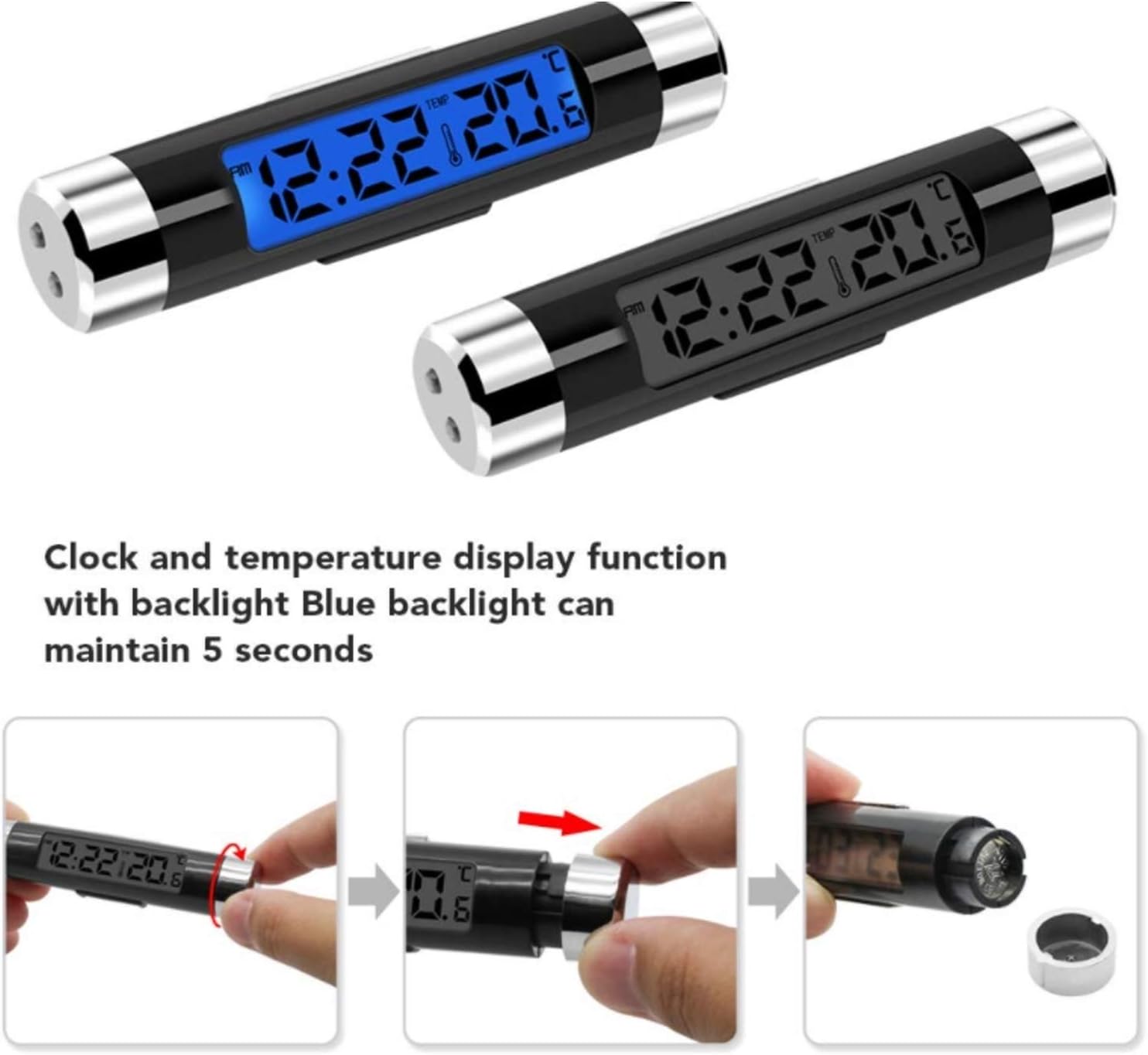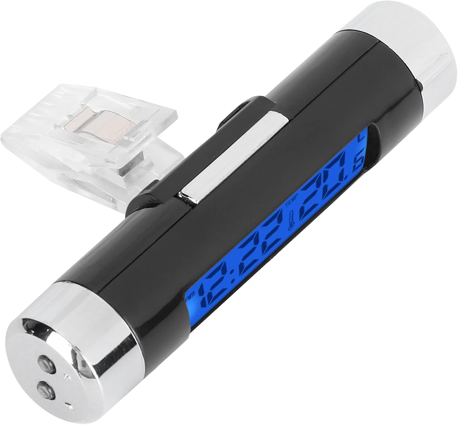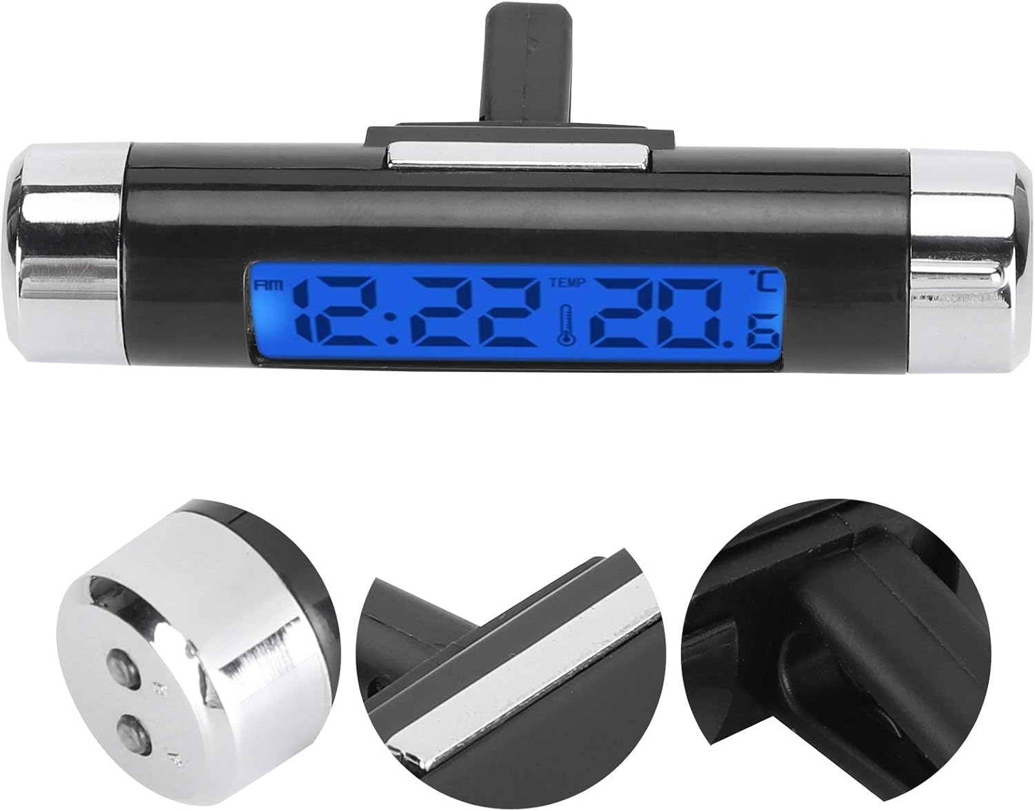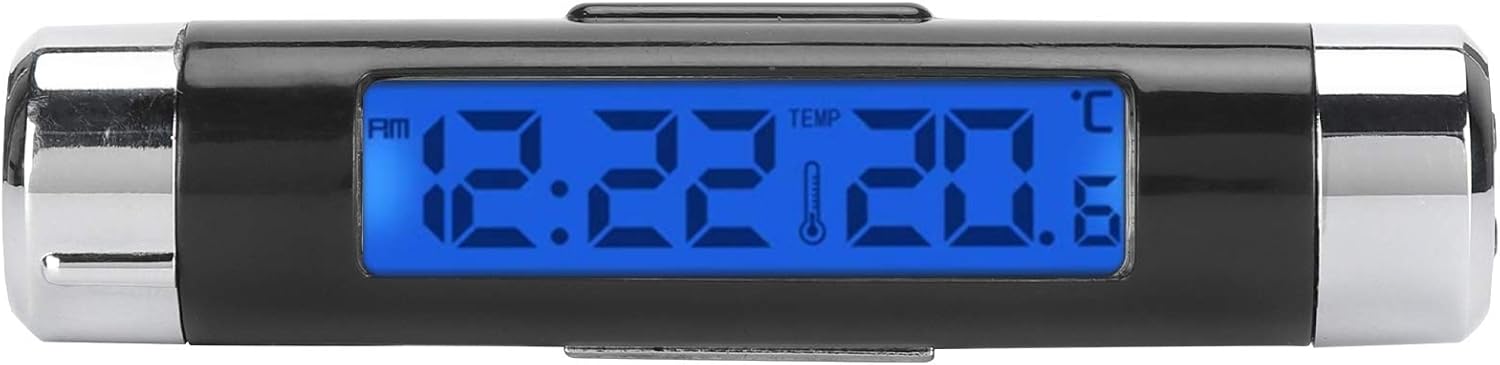 Portatile e facile da installare, di piccole dimensioni, comodo da usare e con buone prestazioni. L'uscita dell'aria è fissata da una clip, che può essere fissata sulla pala della ventola di uscita dell'aria, sulla presa del condizionatore d'aria o sull'aletta parasole. Con il pulsante di retroilluminazione, premerlo per accenderlo per circa 5 secondi, anche in luoghi bui può essere visto chiaramente. Orologio elettronico e termometro 2 in 1, in grado di soddisfare le tue molteplici esigenze. Il rigoroso controllo di qualità e la della qualità, un elevato fattore di sicurezza, possono essere utilizzati in tutta tranquillità.