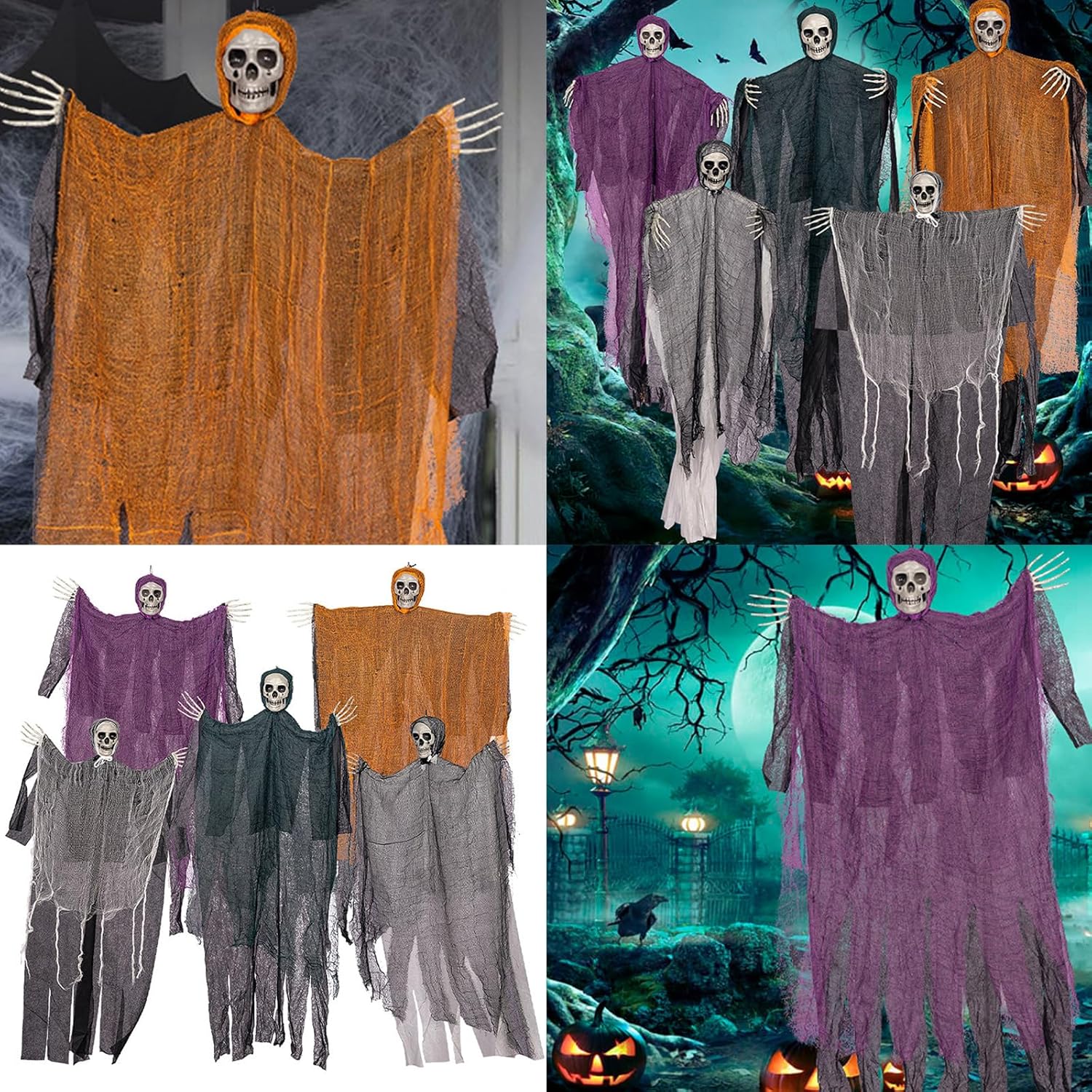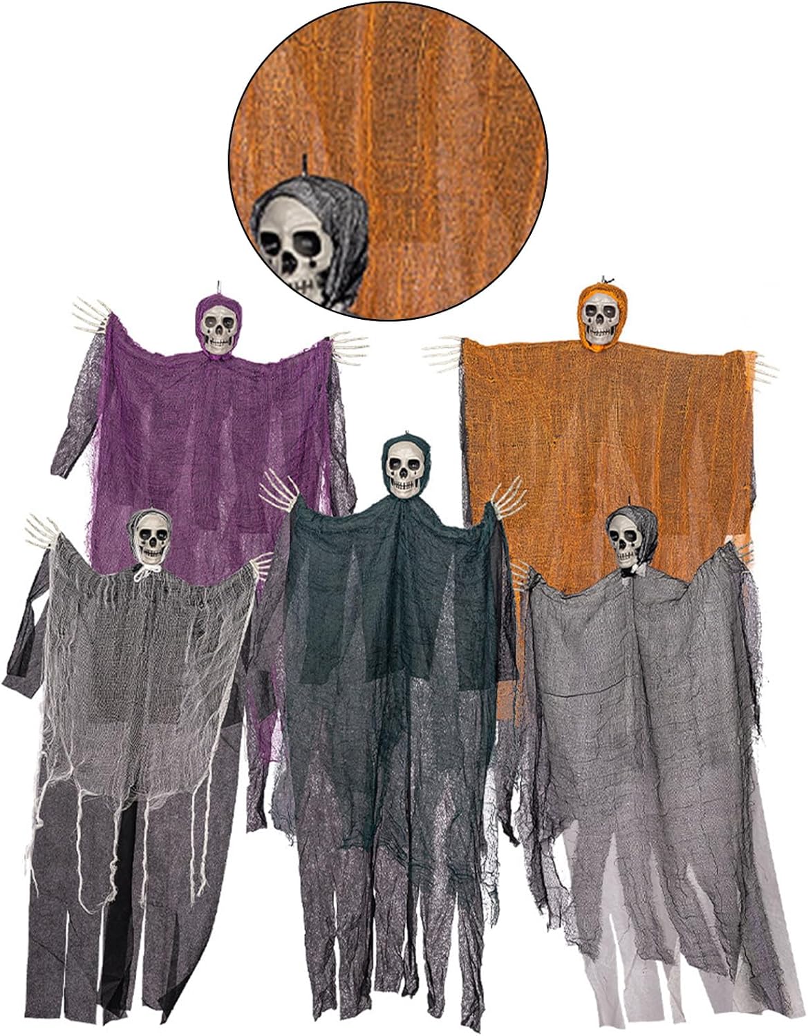 Elevare la vostra celebrazione di Halloween con questo set di 5 decorazioni teschio appeso teschio, per aggiungere un tocco di terrore. Uso e tessuto, queste decorazioni da appendere a forma di teschio sono costruite per resistere sia all'uso interno che esterno. per coloro che amano festeggiare Halloween, sia che si tratti di casa, scuola, anche luoghi commerciali. Ideale per feste di Halloween, esposizione della casa e attività di festa, le decorazioni a teschio da appendere offrono possibilità creative. Con vari design disponibili, scegli la combinazione in base alle tue preferenze e crea atmosfere.