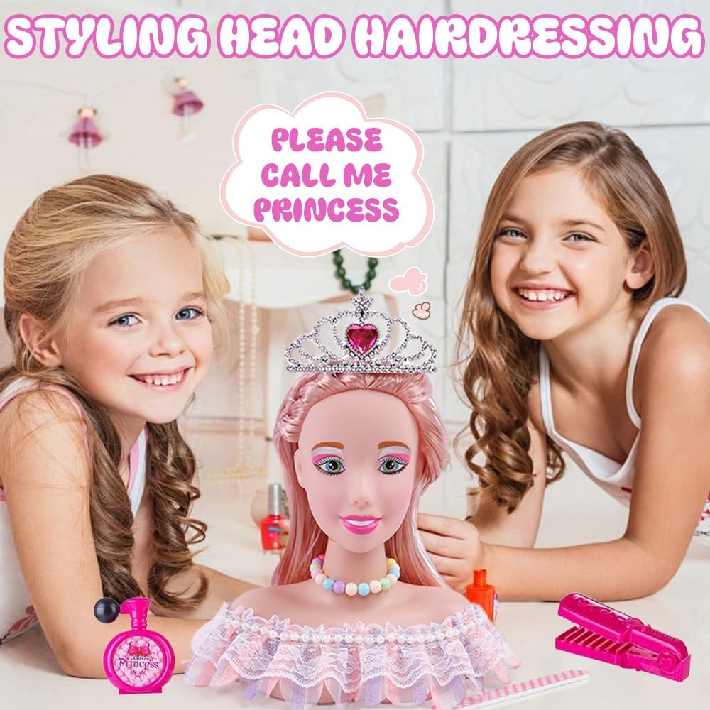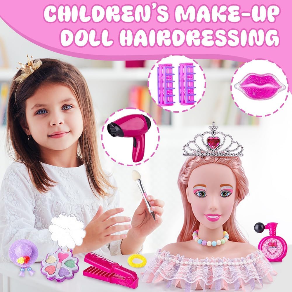 【SET COMPLETO PER ACCONCIATURE】Il testa bambola da truccare e pettinare include 36 giocattoli da trucco per bambini. Include una testa da bambola da trucco, corone per capelli, pettini, asciugacapelli, arricciacapelli, rossetti, ombretti, pennelli da trucco e altri accessori decorativi. Non solo tuo figlio potrà divertirsi, ma potrà anche sviluppare una comprensione dei prodotti di bellezza e sviluppare importanti competenze chiave. 【TESTA DA PARRUCCHIERE SQUISITA】Questa testa bambola da truccare e pettinare è stata progettata per un gioco spensierato. I folti e lunghi capelli biondi della bambola bambina permettono ai piccoli parrucchieri di creare qualsiasi acconciatura desiderata. Puoi anche usare I cosmetici per disegnare il viso della bambola, che li aiuta a progettare bellissimi acconciature e trucchi. Che il vostro bambino può avere belle avventure con fiducia. 【MATERIALI DI ALTA QUALITÀ】La set da gioco parrucchieri è realizzata in plastica morbida, leggera e sicura, non c'è bisogno di preoccuparsi di ferire le mani dei bambini. Grazie al suo design leggero, I bambini possono tenere facilmente questo set parrucchiera bambina. 【DIVERTENTE ED EDUCATIVO】Stilista o principessa, con la sua testa di bambola realistica, I capelli morbidi e I vari accessori, le bambine possono vivere un emozionante gioco di ruolo da sole o con le amiche. Migliorare le loro abilità sociali e di comunicazione attraverso il gioco, migliorare la coordinazione occhio-mano e incoraggiare l'immaginazione e la creatività del bambino. 【Regalo Ideale per Bambina】I testa bambola da truccare sono un regalo ideale per ragazze, adatti per compleanni, festa dei bambini, natale e altre feste e possono anche essere usati come premi per premiare I bambini, portando gioia e portando gioia a una sorpresa per la ragazza. I testa bambola da truccare e pettinare sono giocattoli ideali per capelli e trucco per giochi di finzione, lascia che le ragazze imitino il trucco e imparino a pettinarsi capelli per creare un look unico nei loro cuori.