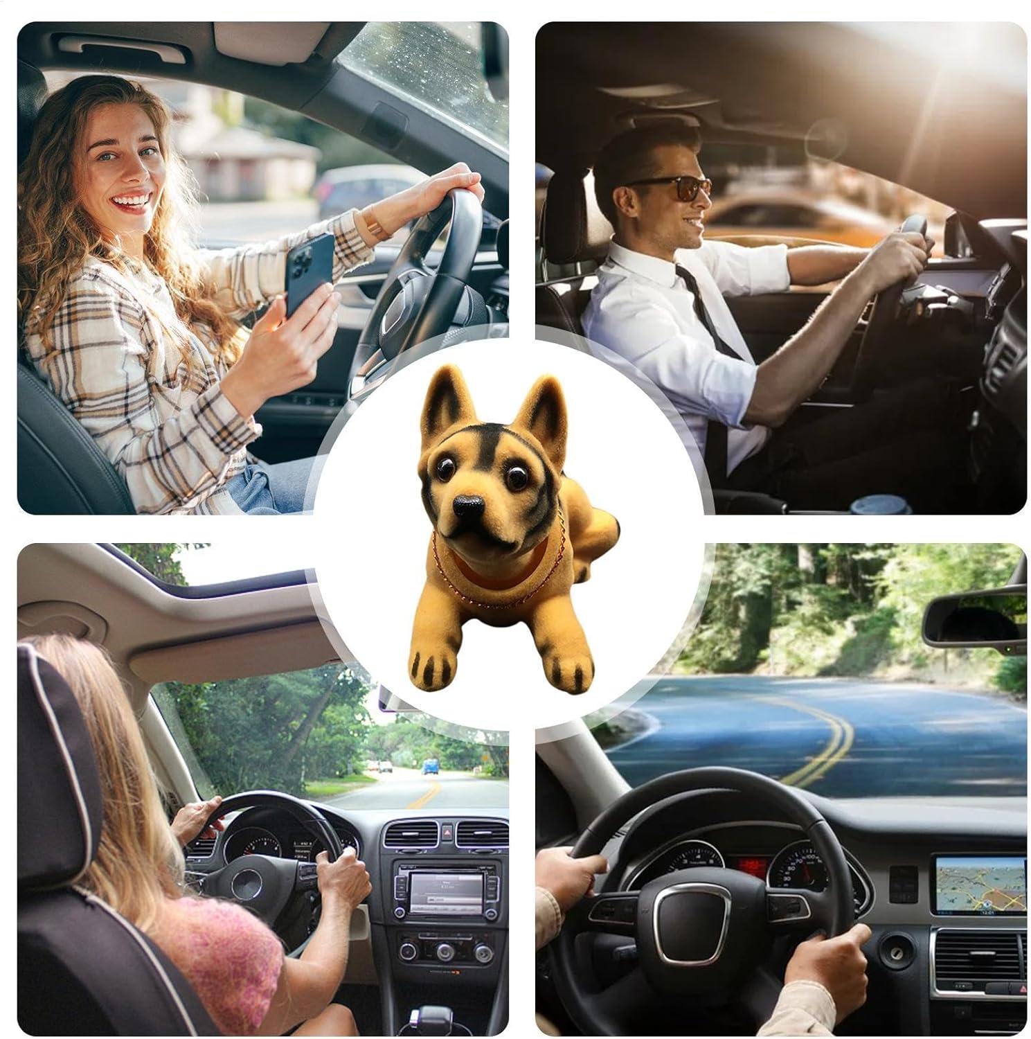 Interessante amico di guida: guida con stile con il nostro caratteristico cane bobblehead. Le molle che collegano la testa e il corpo creano un cenno unico e vivido che aggiunge un fascino divertente e giocoso ad ogni corsa. Realizzato con materiali di qualità: realizzato con materiali sicuri, questo bobblehead per cani per auto è realizzato in resina di alta qualità che lo rende robusto, duraturo e non facilmente danneggiato o deformato, garantendo un'esperienza di guida sicura per te e il tuo animale domestico. Adatto per interni: arricchisci l'ambiente quotidiano con questa accattivante testa con pompon per cani; un'adorabile decorazione perfetta per qualsiasi luogo, dalle case ai negozi. Aggiungi una scintilla di gioia e dolcezza alla tua vita con questo affascinante compagno di annuire. Lavorazione eccezionale: questa testa per cani per auto sfoggia un design elegante e una lavorazione ideale. Le sue superfici resistenti allo sbiadimento, stampate e trasparenti garantiscono un aspetto liscio e confortevole al tatto. Inoltre, è facile da pulire. Ottimo regalo per gli amici: migliora l'umore durante le celebrazioni con questa testa per cani. La sua presenza affascinante porta un allegro compagno durante compleanni, vacanze e feste. Un'aggiunta perfetta all'arredamento della tua auto che assicura una diffusione di calore e gioia durante il viaggio.