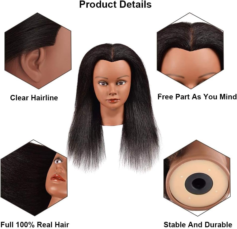 La confezione include: 1 testa di manichino con cuoio capelluto naturale realistico al 100%, 1 supporto per morsetto da tavolo. Materiale dei capelli: colore: nero naturale, 100% capelli veri imitano i capelli crespi asciugati, la consistenza crespa/liscia yaki dà la tua pratica realistica. Morbidi come i tuoi capelli umani. Nessun odore. Nessun pidocchi. Nessun groviglio. Minimo spargimento. Facile da separare e gestire. Multiuso: adatto per lavare/condizionare, arricciare/raddrizzare, tagliare, intrecciare e acconciare. Perfetto per scuole di cosmetologia, barbiere e salone di bellezza. Può essere utilizzato da cosmetologi, parrucchieri, stilisti, studenti. Un buon regalo per bambini, ragazze e donne. 😊Factory Outlet: 10 anni di esperienza di produzione nella vendita al dettaglio e all'ingrosso con il miglior prezzo. Testa di manichino afro con capelli veri al 100%, testa di bambola da allenamento con texture ricci afro crespi crespi al 100%, capelli in fibra sintetica con testa di manichino carino. 😊buon servizio professionale ed entusiastico: non esitate a contattarci se avete domande. Vi aiuteremo in 12 ore. Abbiamo un regalo a sorpresa per i primi 100 clienti. Vi preghiamo di contattarci quando ricevete il vostro pacchetto.