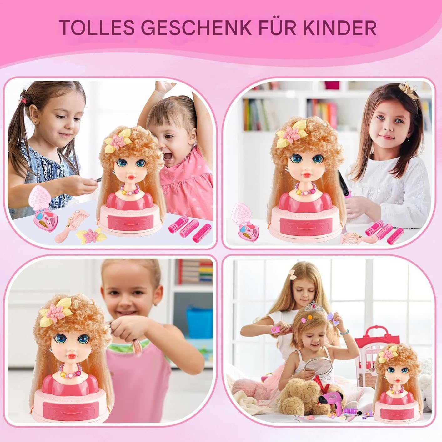 Gioco creativo: promuovi lo stile immaginativo attraverso attività di intrecciatura, pettinatura e decorazione che danno vita al divertimento del parrucchiere e favoriscono l'apprendimento pratico e la creatività senza limiti. Esperienza di gioco piacevole: la testa da parrucchiere per bambini realizzata in materiale di alta qualità inodore e liscia, aumenta la sicurezza e il divertimento di scoprire idee creative per acconciature. Promuovere la creatività: questa casa di bambola stimola la creatività dei bambini e promuove le abilità pratiche attraverso l'acconciatura interattiva, supporta lo sviluppo dell'immaginazione e delle abilità motorie in modo naturale Giocattolo per esercizi di motoria: regalo perfetto che offre ore di divertimento e sviluppa abilità motorie attraverso un divertente allenamento di parrucchiere nei bambini Set completo per lo styling: 26 pezzi unici offrono molteplici possibilità per esplorare le tecniche di parrucchiere, supportare le esigenze di utilizzo individuali e promuovere l'espressione artistica durante il gioco