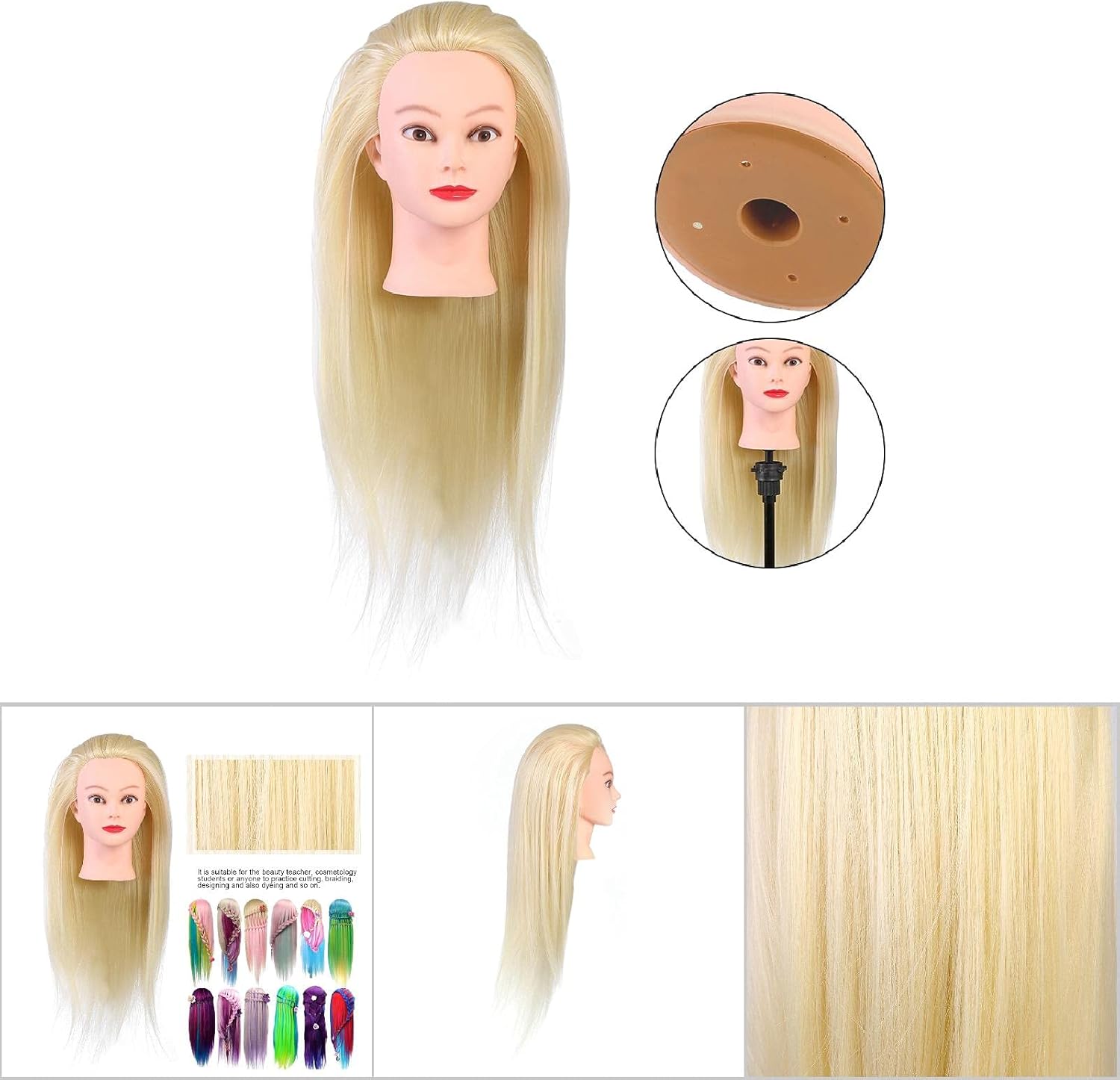 【Uso versatile】 - Questo strumento per la pratica del parrucchiere si adatta alle esigenze di insegnanti di bellezza, studenti di cosmetologia e persino dilettanti a casa che desiderano praticare diversi modelli di capelli, tagli, trecce, colorazioni e altro ancora. 【Caratteristiche realistiche】 - Sperimenta il realismo di alto livello con la pratica testa del manichino per capelli. Con la sua consistenza morbida e l'aspetto realistico, questo strumento di formazione migliora la tua esperienza di allenamento complessiva e rende la tua pratica di styling più efficiente e pratica. 【Resistente alle alte temperature】 - Supera sempre le tue aspettative con il nostro manichino per testa allenamento per salone. Dotata di fibre sintetiche di prima qualità e resistenti al calore, questa testa allenamento può resistere alle alte temperature, garantendo longevità e servendoti per il tempo più lungo possibile. 【Manutenzione senza sforzo】 - Mantenere i tuoi strumenti per la pratica del parrucchiere è ora un compito semplice. Basta un po' di detersivo delicato in acqua fredda per mantenere questo prezioso strumento pulito e in forma, evitando complicate procedure di pulizia. 【Capelli spessi e facili pettinare】 - I capelli di questa testa allenamento sono spessi e facili pettinare, fornendoti una piattaforma pratica per apprendere e perfezionare diverse abilità di trattamento dei capelli, dalla colorazione ai tagli di capelli, trecce e altro ancora.
