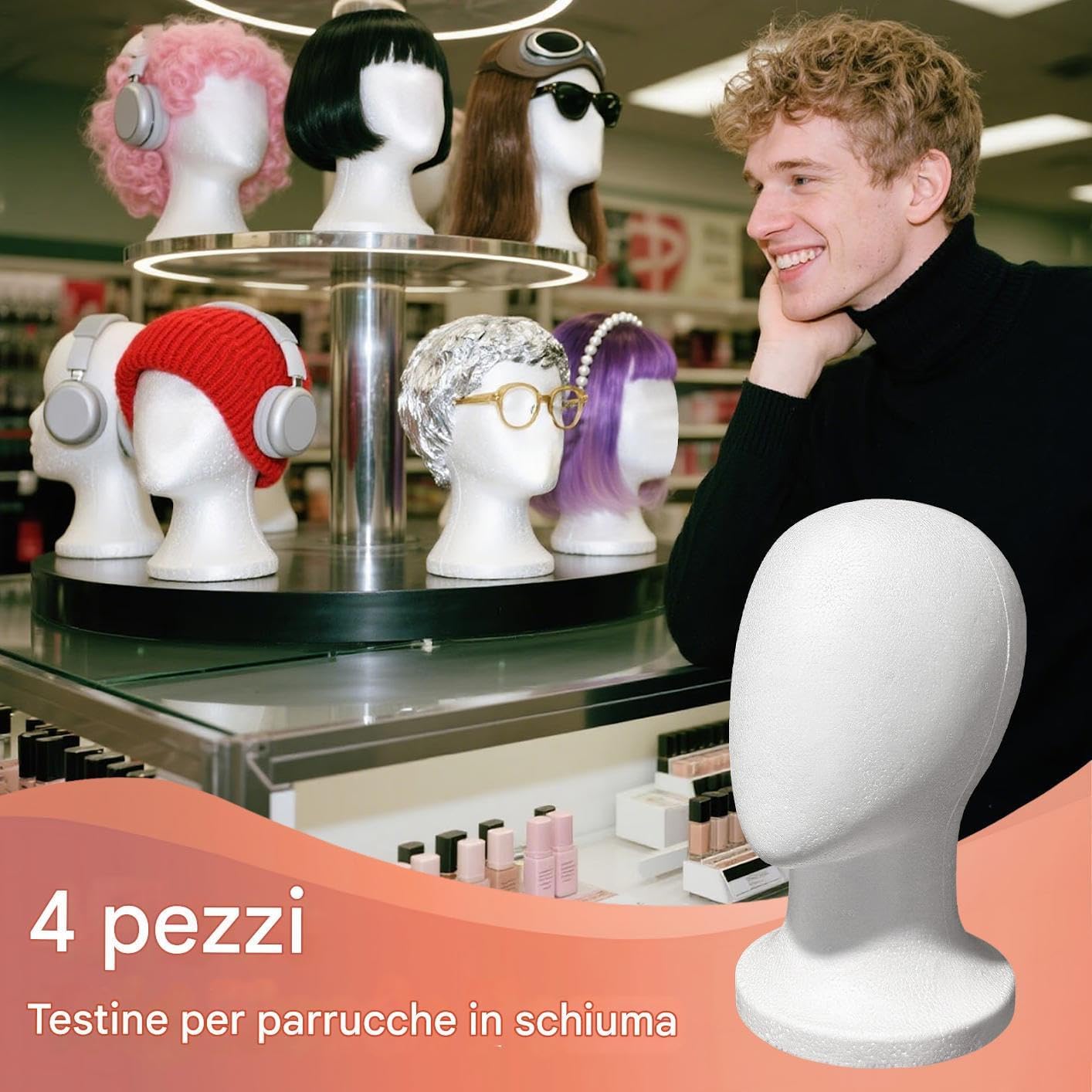 Proporzioni Realistiche: Combina una dimensione della testa standard, curve naturali del collo e un viso simmetrico, raggiungendo proporzioni realistiche perfette per uso professionale in styling o allestimenti artistici di grande impatto visivo Ridotta Frequenza di Regolazione: Garantisce un mantenimento della forma avanzato e una struttura di lunga durata evitando regolazioni frequenti per una pratica di styling senza complicazioni Nucleo in Schiuma Resistente: La schiuma ad alta densità e la struttura anti-ribaltamento assicurano supporto efficace per carichi pesanti mantenendo bilanciamento costante e stabilità duratura Utilizzi Versatili:Questa testina da manichino è progettata per valorizzare l'allestimento di vetrine, esporre cappelli e parrucche, adattarsi a molteplici scenari e fungere da prop per fotografia studio, offrendo una soluzione indispensabile per presentazioni dinamiche e creative con massima flessibilità d'impiego Base per Scatti Professionali: La superficie appositamente trattata previene distorsioni cromatiche e riflessi, assicurando dettagli precisi e una base neutrale per immagini accattivanti