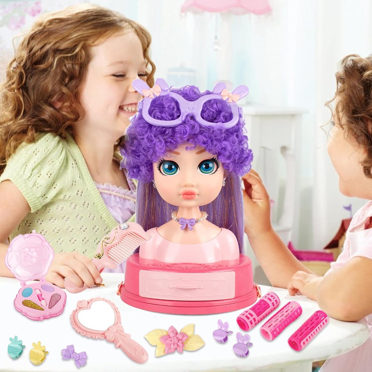 Set Completo: Con 31 pezzi inclusi asciugacapelli, piastra per capelli e , stimola la fantasia e soddisfa diverse esigenze di styling per possibilità creative illimitate Design Sicuro e Inodore: Progettata con ABS sicuro per bambini, la bambola rimuove odori sgradevoli e bordi acuti, migliorando il gioco realistico con un phon funzionale che ispira scenari di gioco di ruolo immaginativo Creatività per Bambini: Progettata per i più piccoli, questa testina per styling con capelli ricci biondi offre ore di divertimento creativo, permettendo di spazzolare, trecce e attorcigliare innumerevoli pettinature stilose e fantastiche Avventura Parrucchiere: Porta in vita l'emozione di gestire un salone, ispirando creatività ed esplorazione nella pratica di acconciature fantasiose adatte a tutte le età Regalo Versatile: Ideale per compleanni Natale o feste questa testa per acconciature è un modo creativo per praticare hairstyling e trucco favorisce giochi di ruolo divertenti con gli amici rendendola un regalo memorabile per ogni occasione